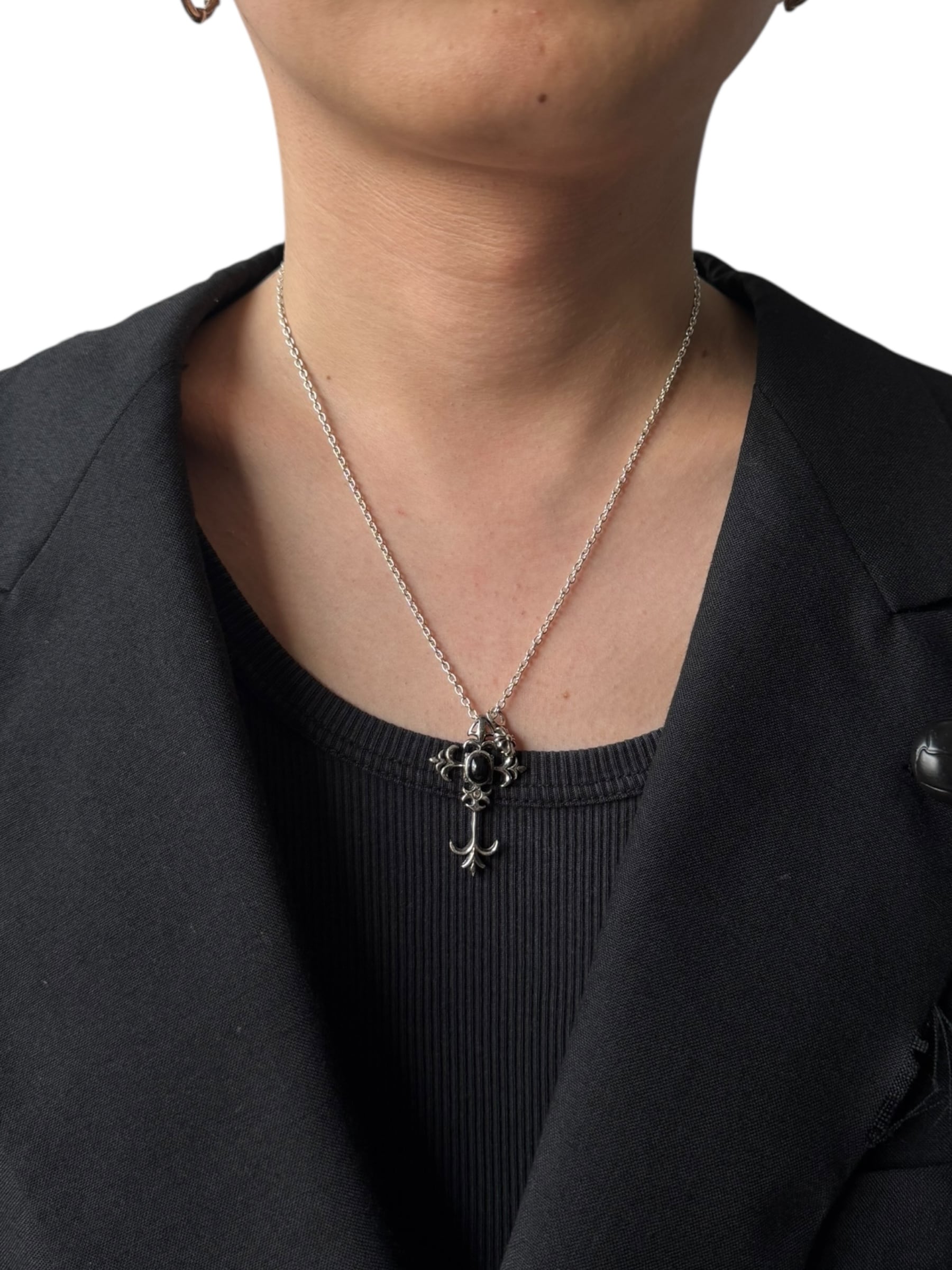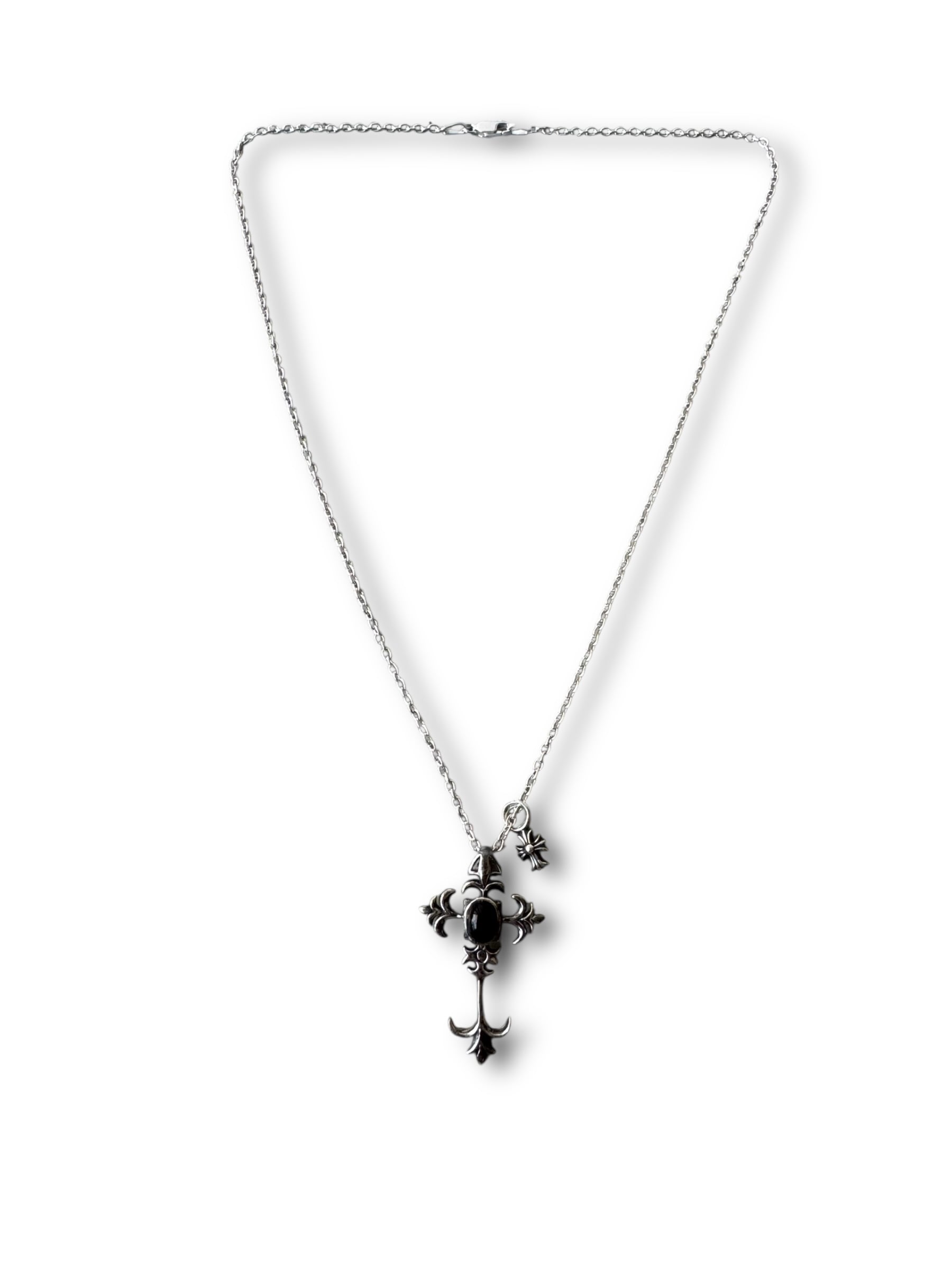 センターに黒のストーンがセットされているフローラル調のクロスとミニマムな可愛らしいクロスのセット‼️✨️