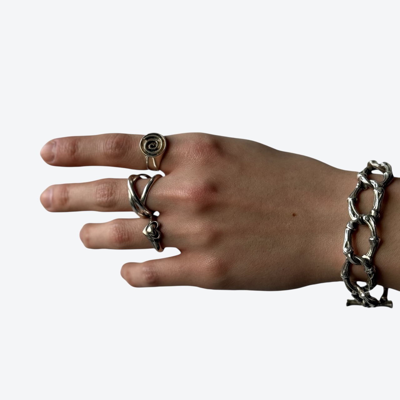 vintage sv925 heart motif design ring