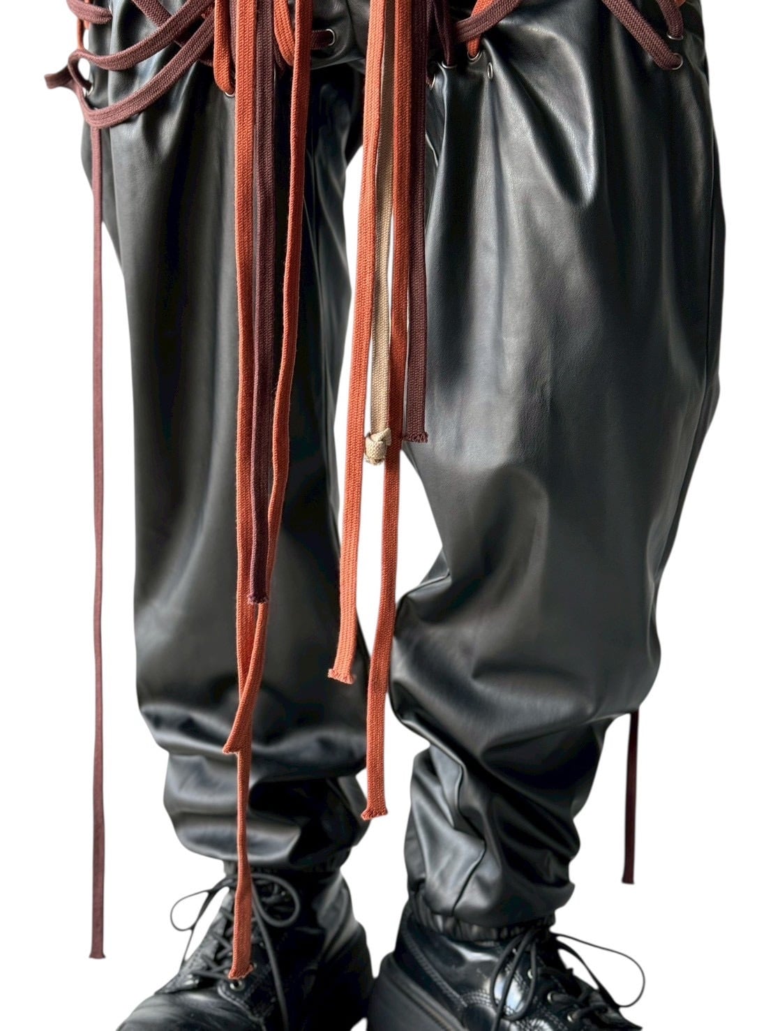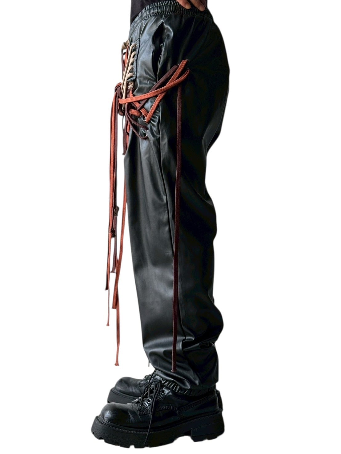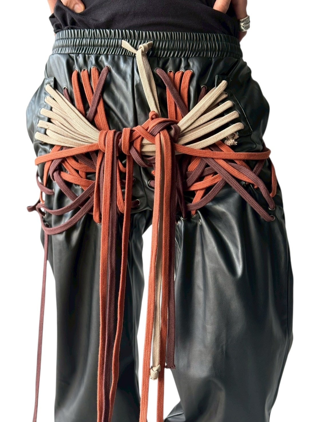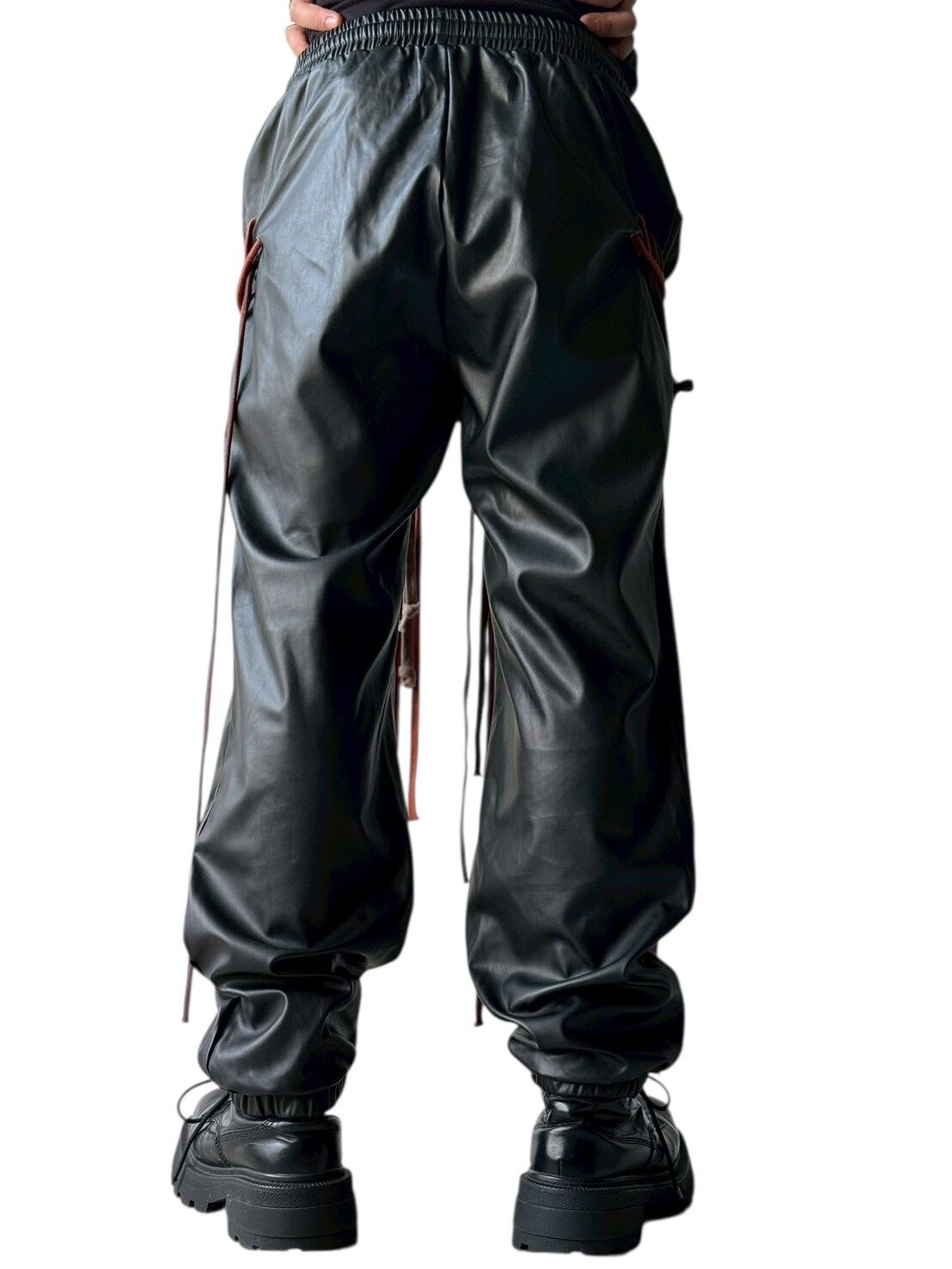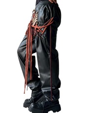 many string PU leather pants