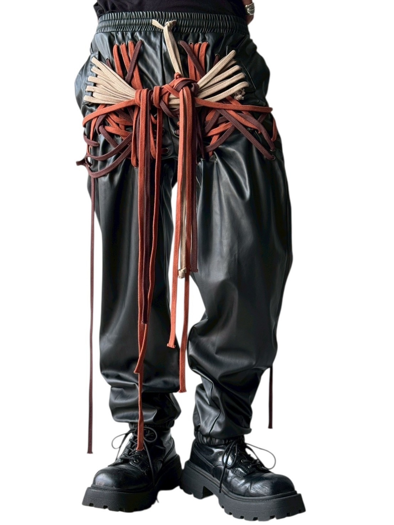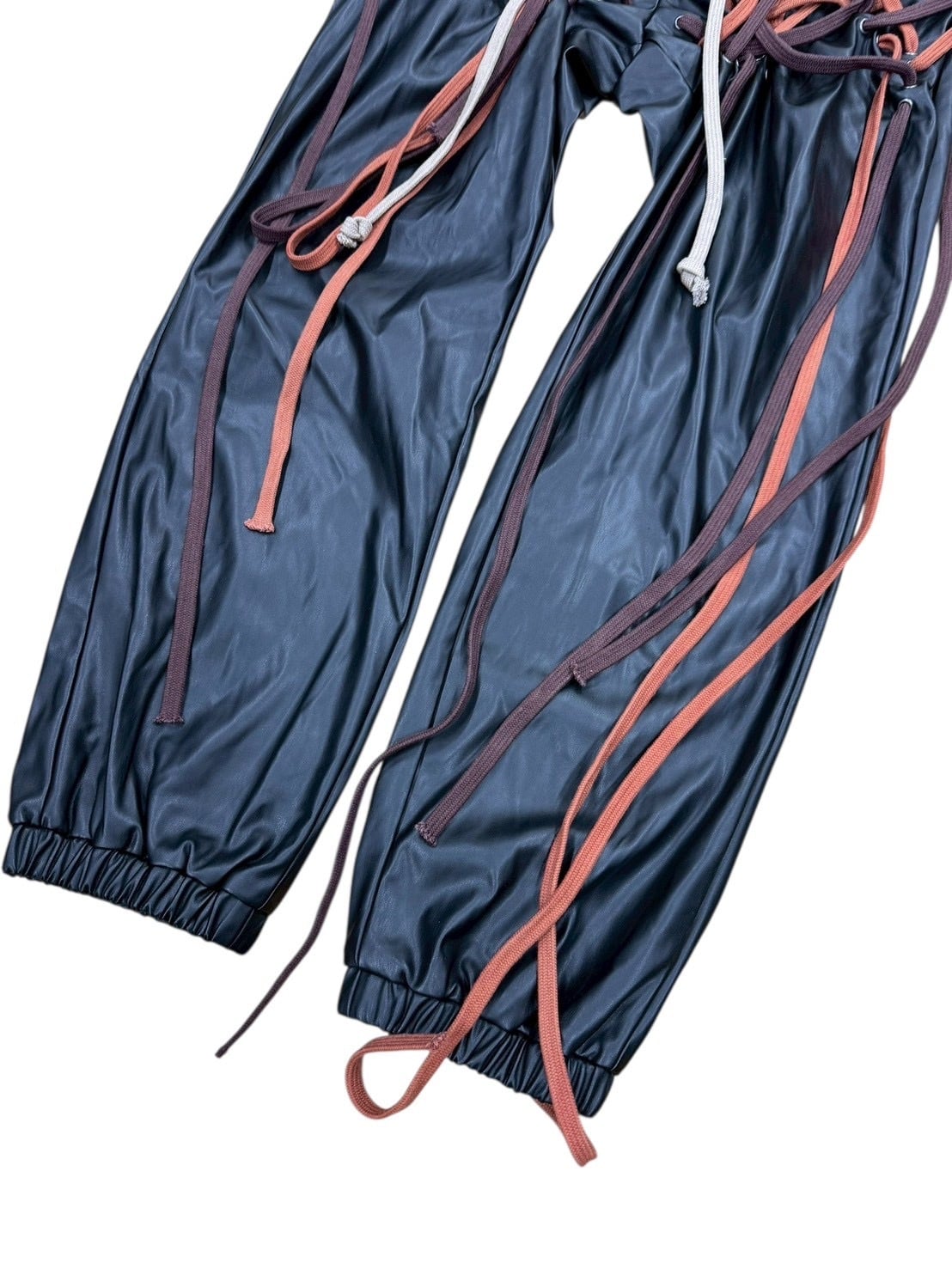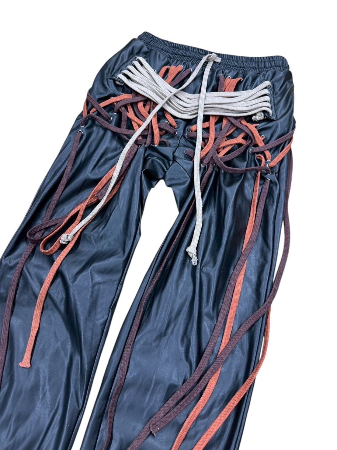 many string PU leather pants