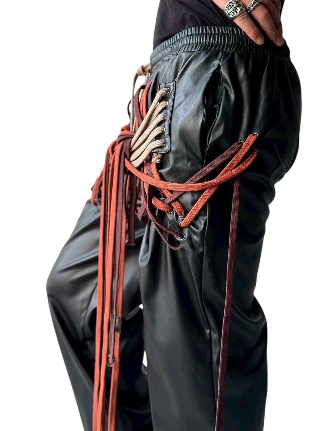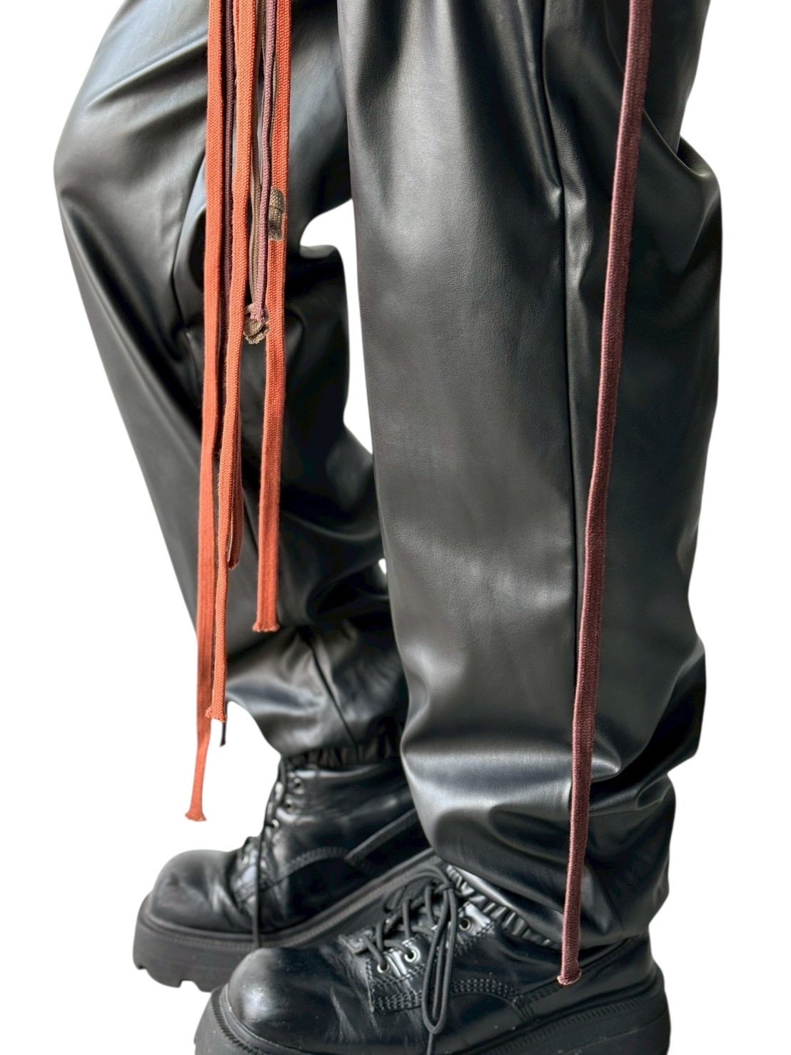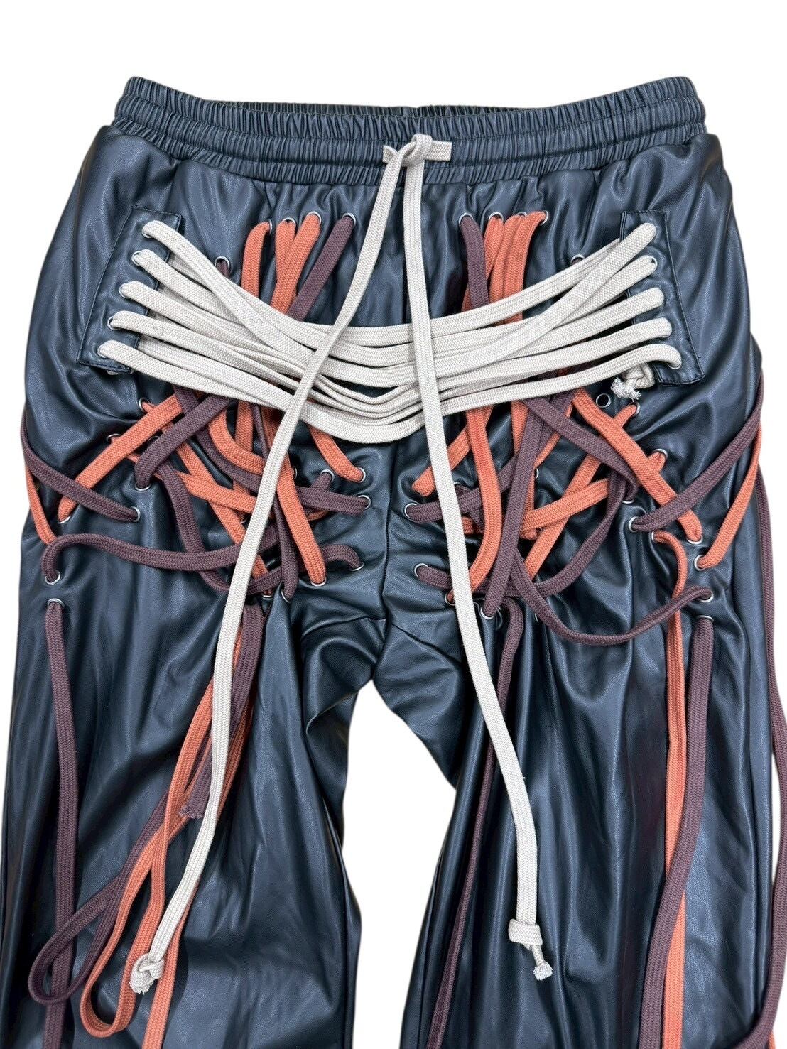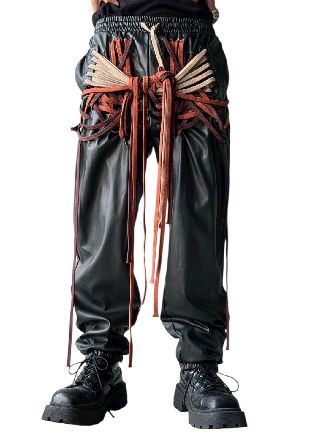 many string PU leather pants