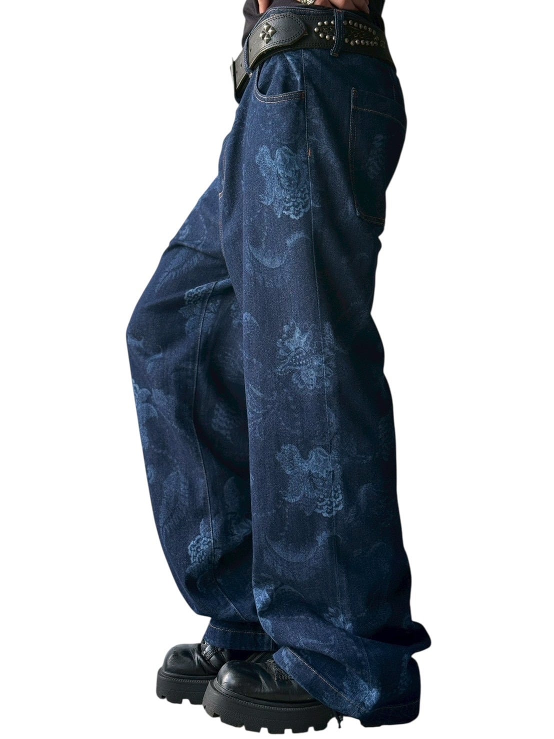 ♾️Chico's♾️ baggy silhouette flower pattern design wide denim pants