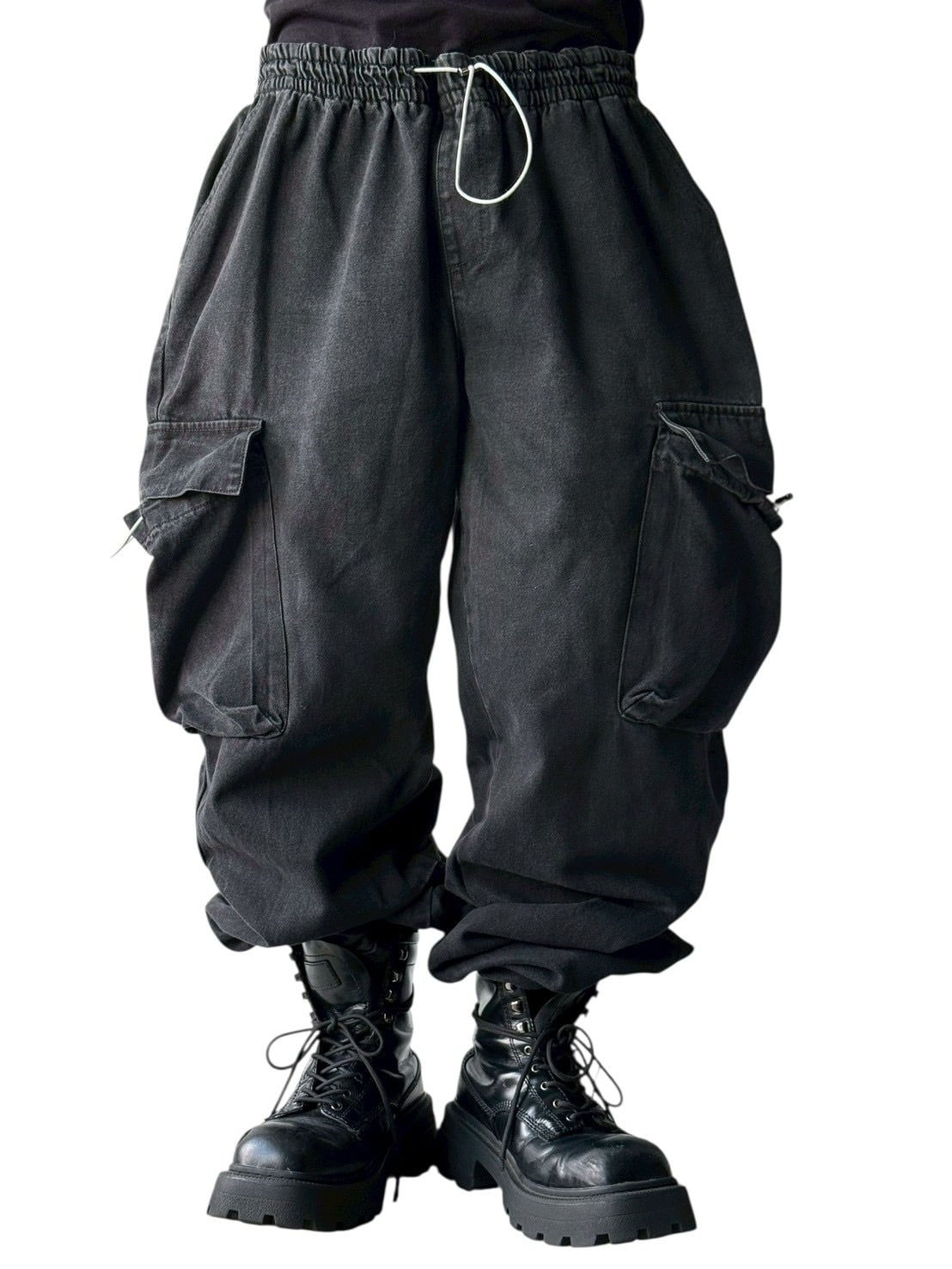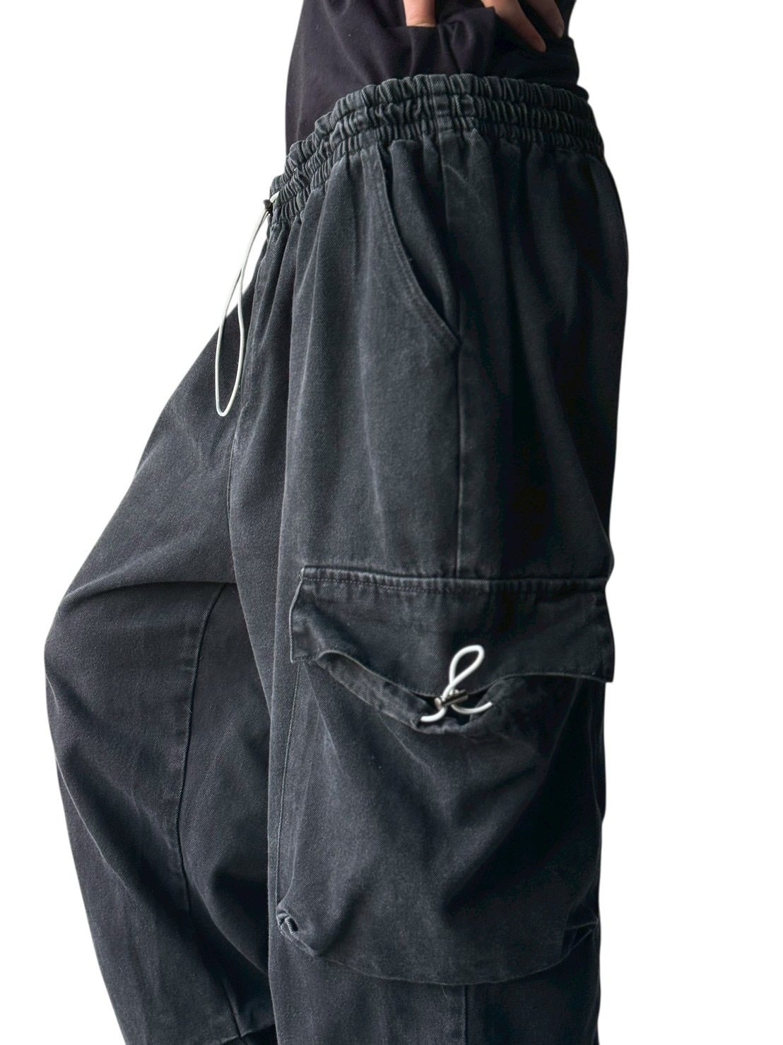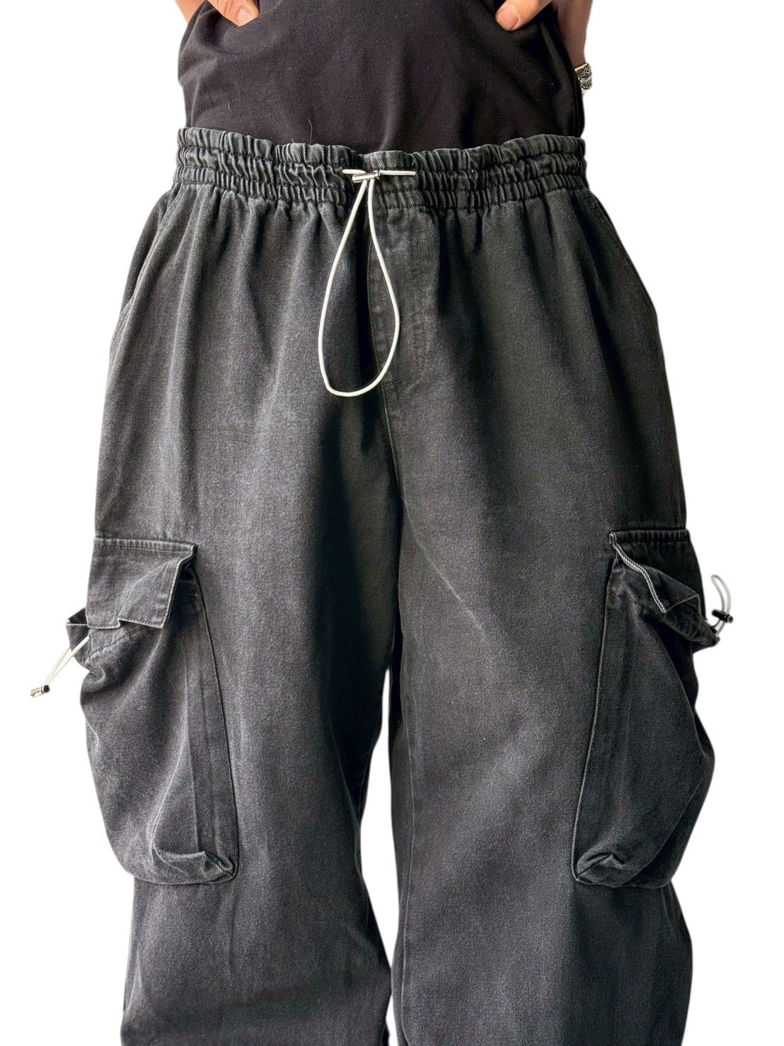 ブラックデニムに白のドローコードがバエるカーゴデニムパンツ❣️