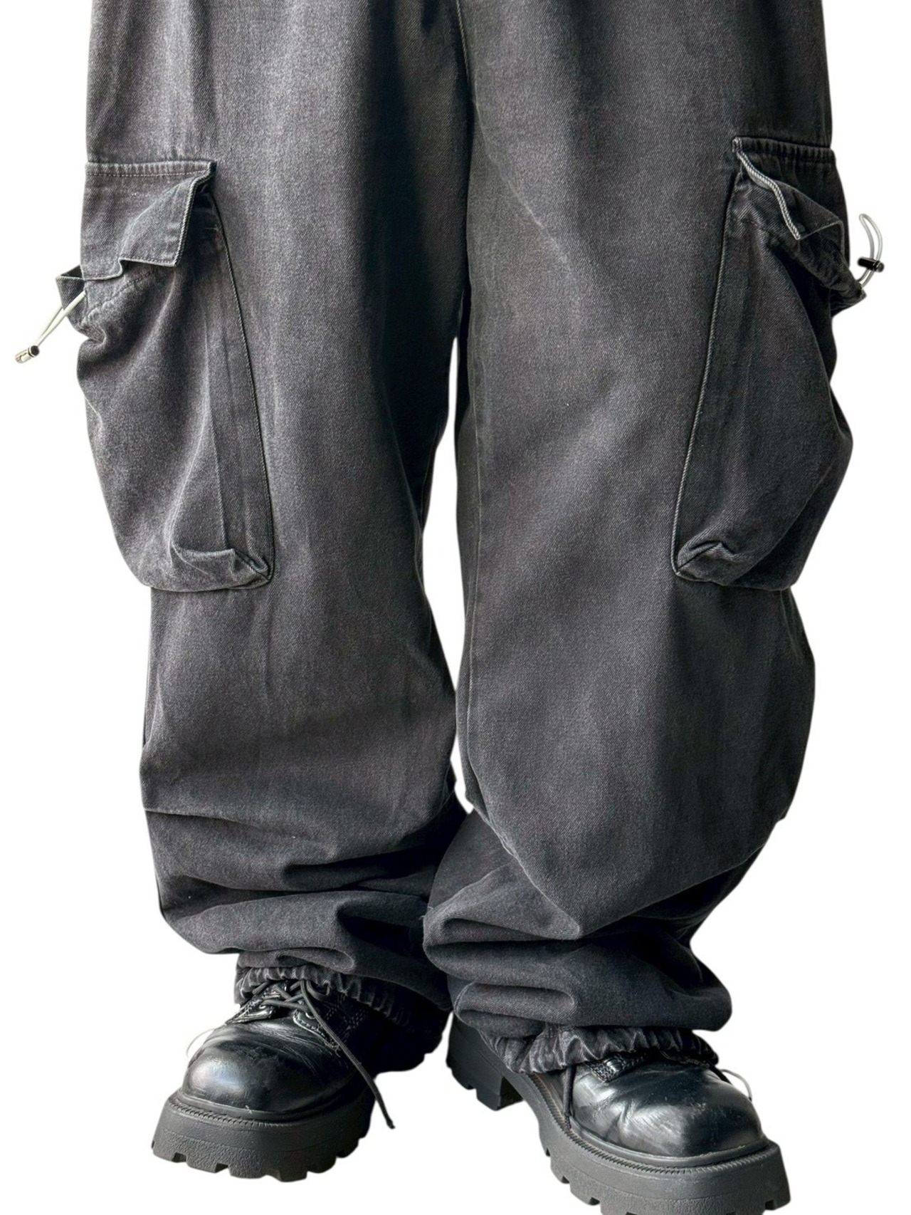 ♾design used♾ Drawcord design wide silhouette cargo denim pants size 16