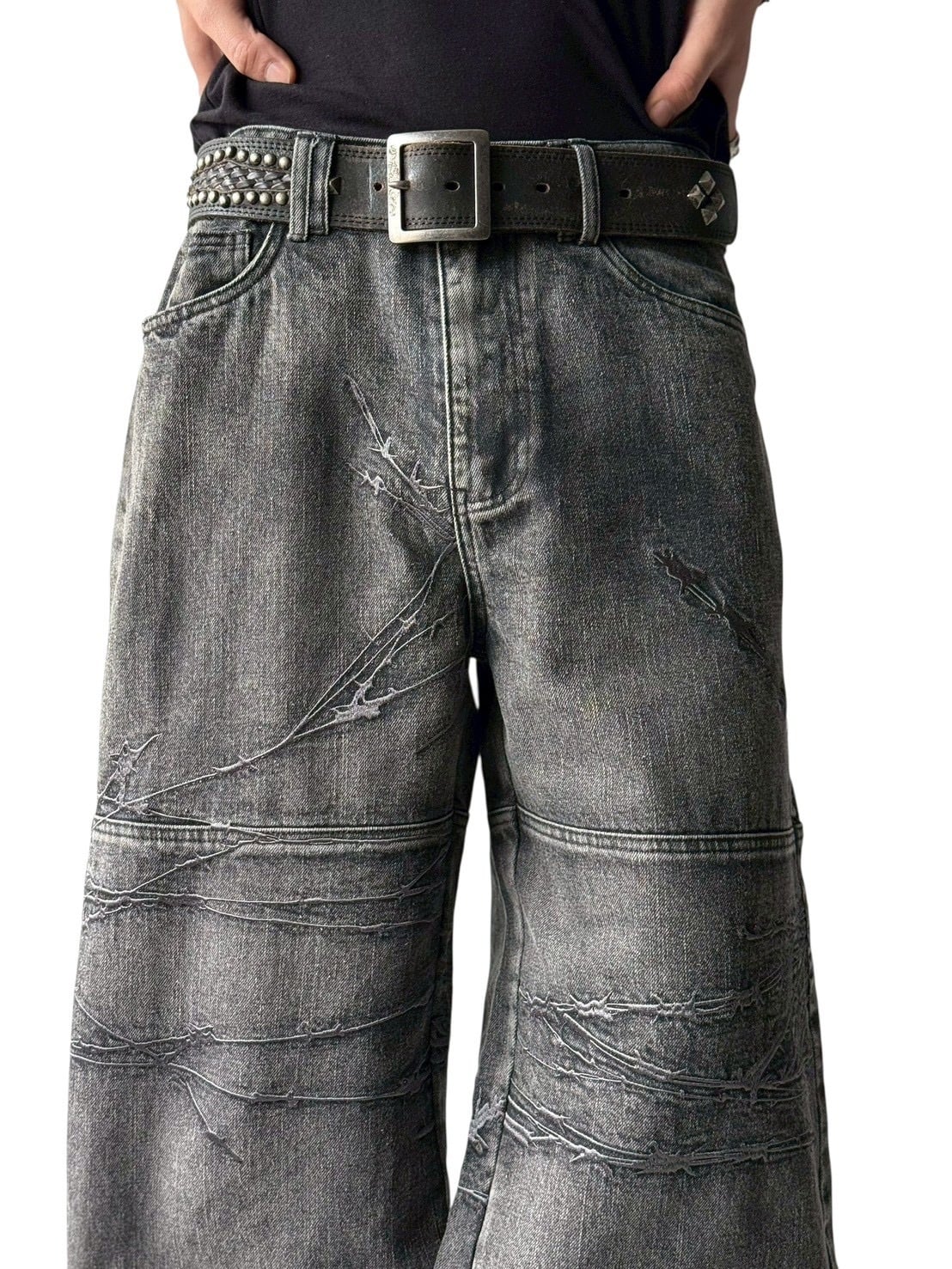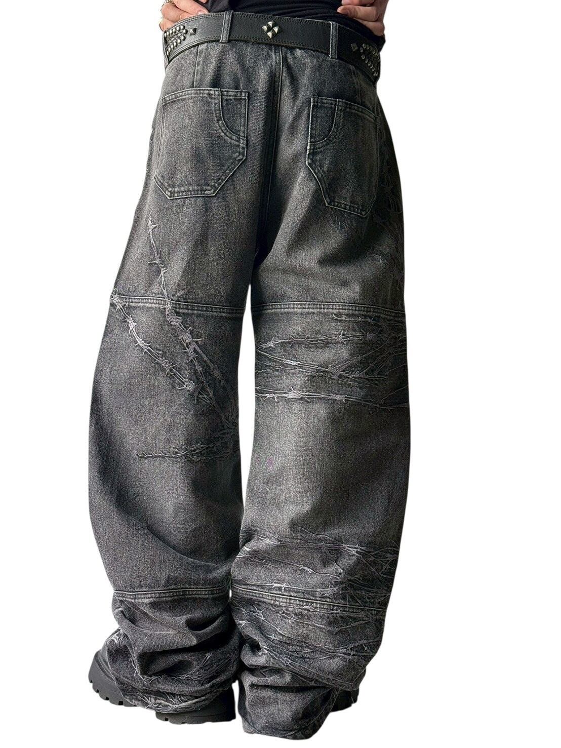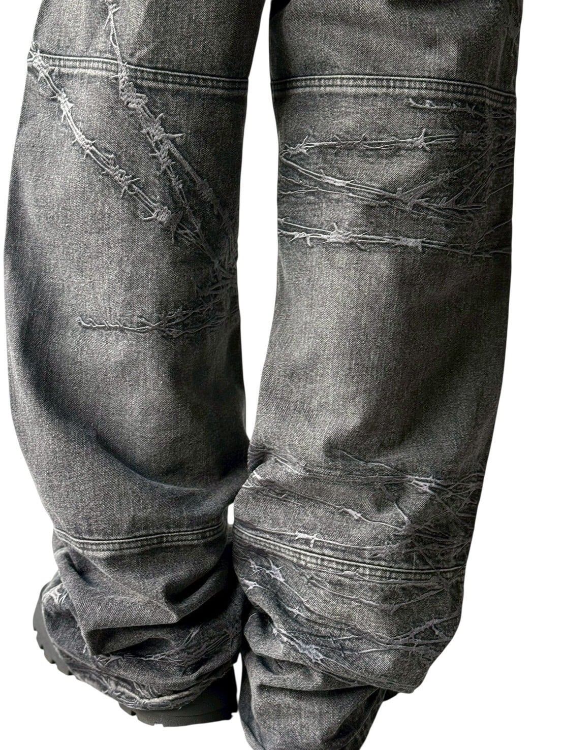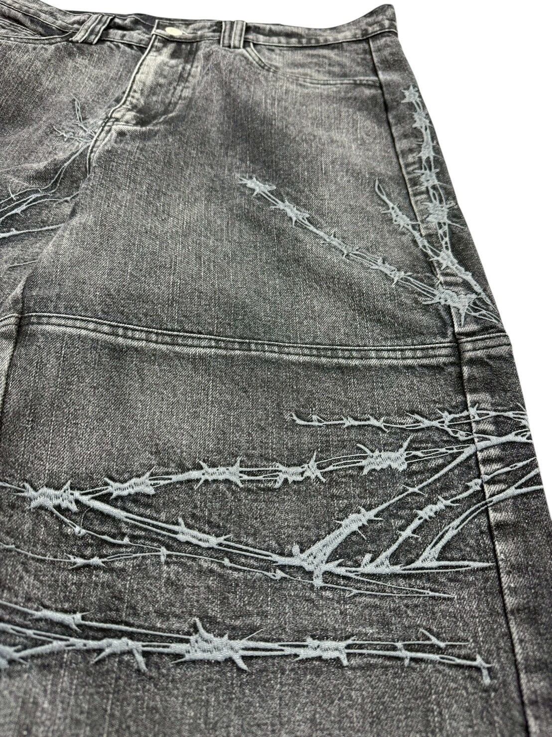 ♾ditch♾ barbed wire motif embroidered Wide silhouette denim pants size 32