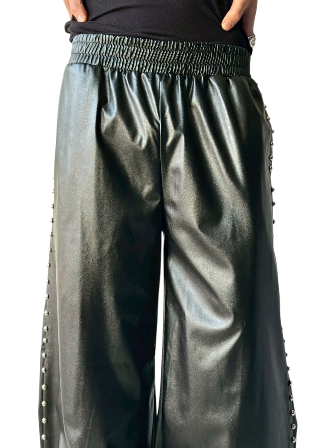サイドから裾にかけてスタッズをあしらいスリット入りの太めのシルエットが超優秀な1本!