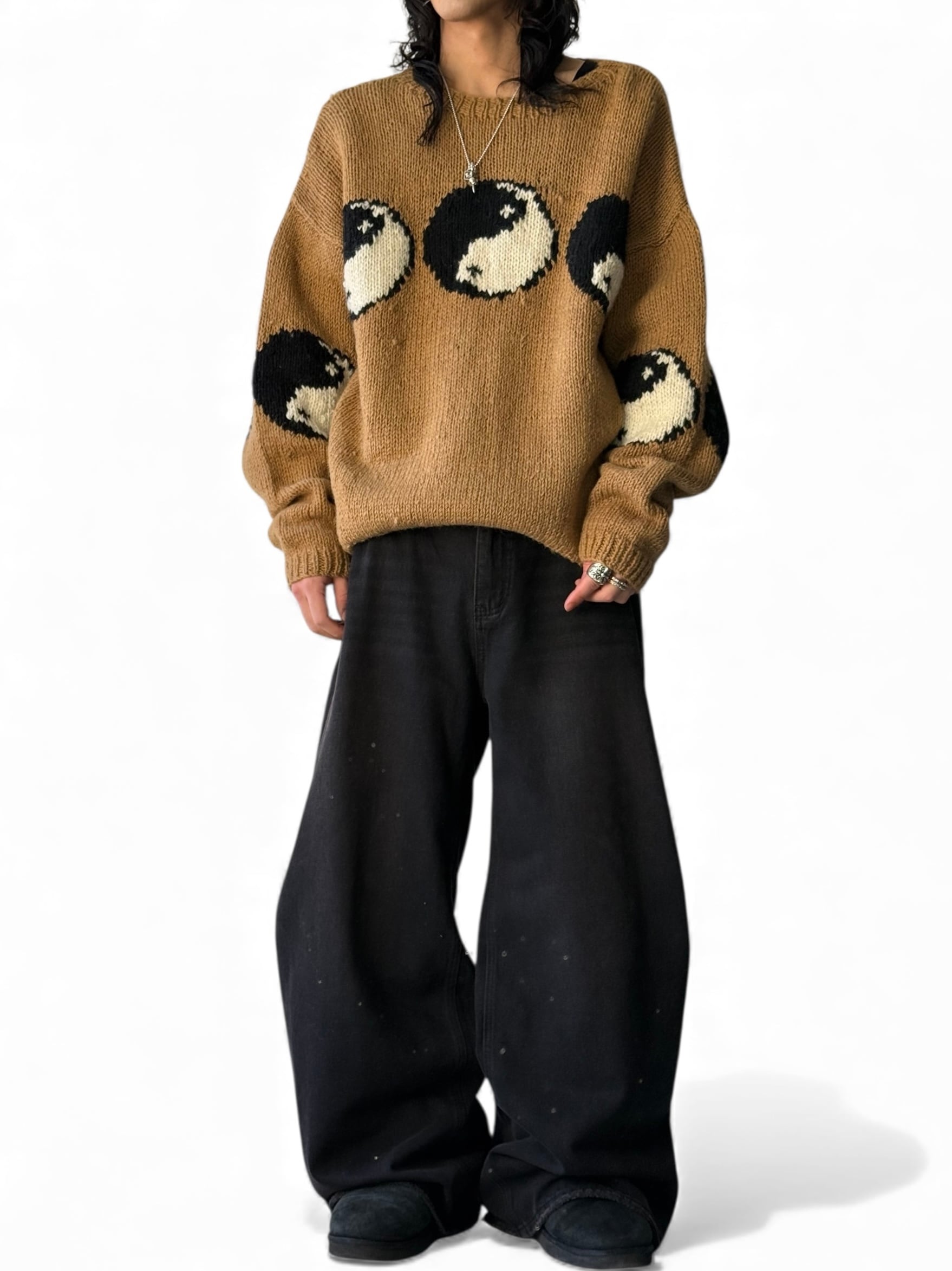 【Ecuador unknown】Yin Yang pattern Hand Knit sweater