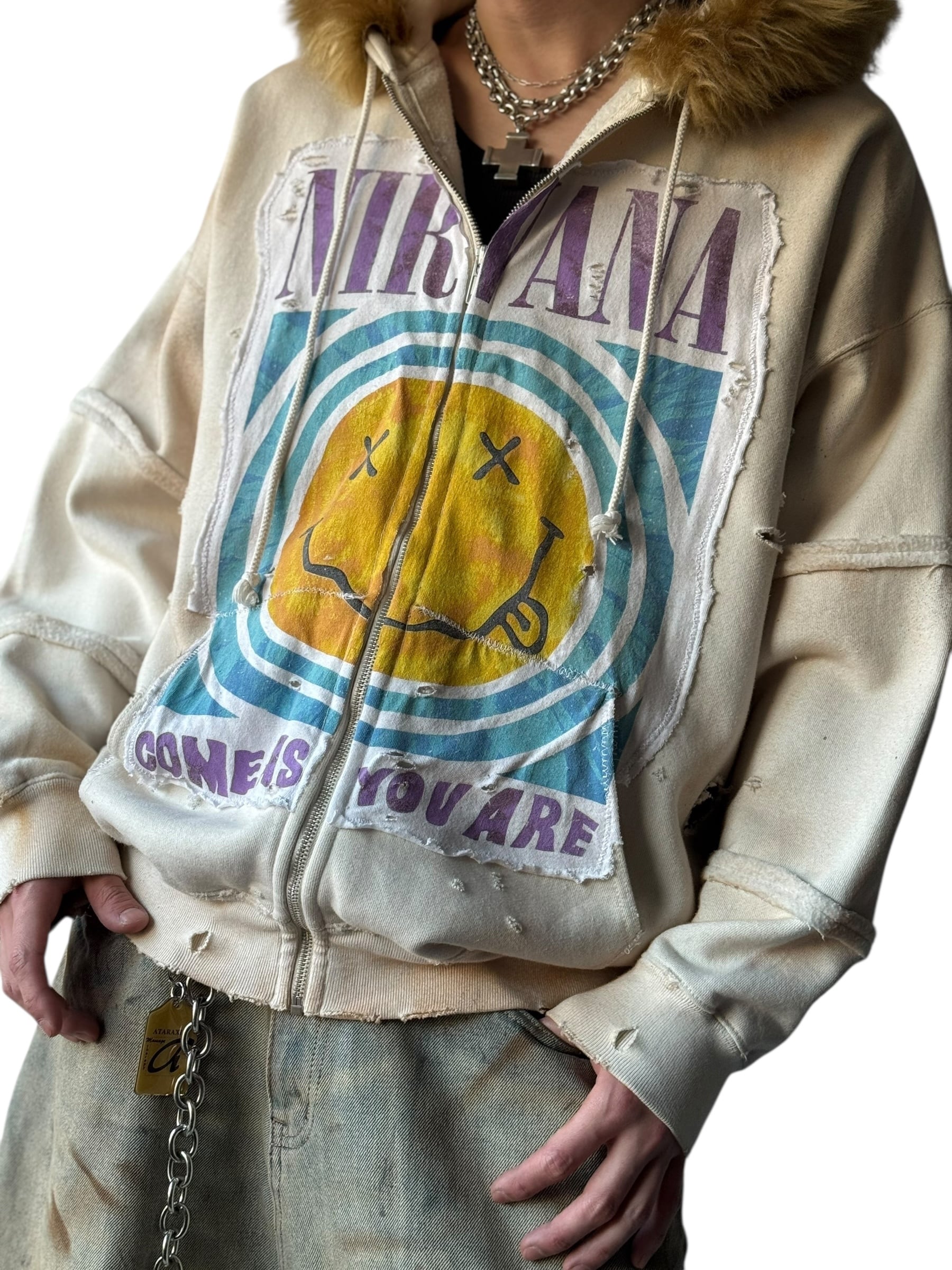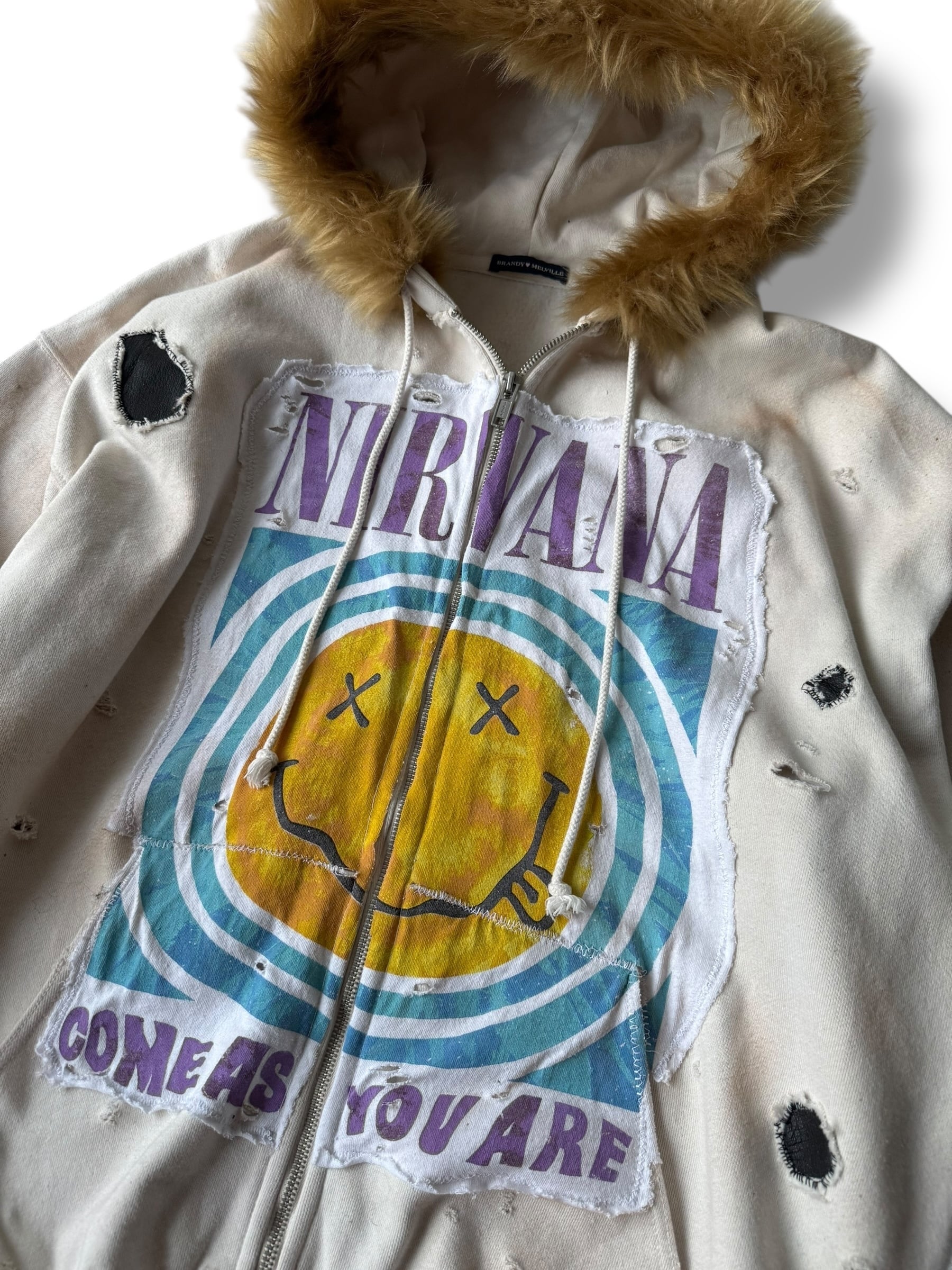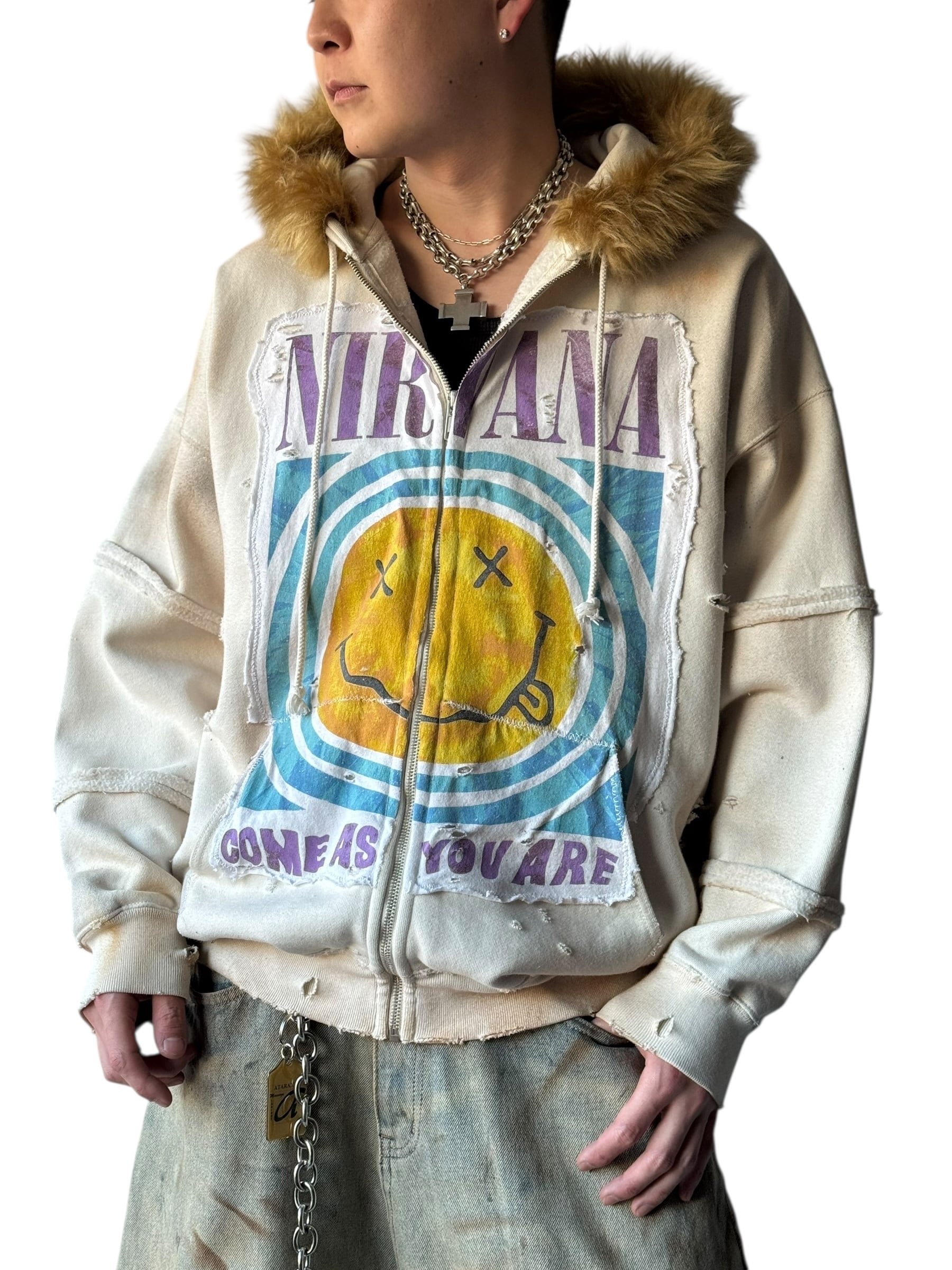 ♾REMADE COLLECTION♾ custom wide sleeve dusty grunge design zip up hoodie