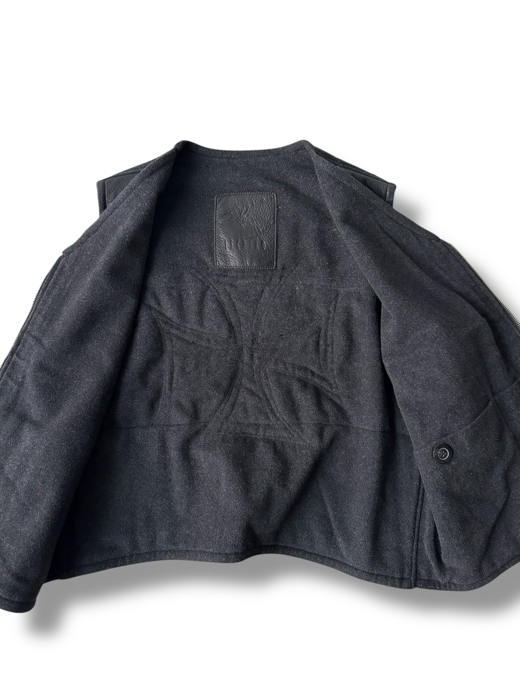 非常に柔らかく肉厚なリアルレザーが雰囲気爆上げで背面なウールの切替しのおしゃなデザインソース◎