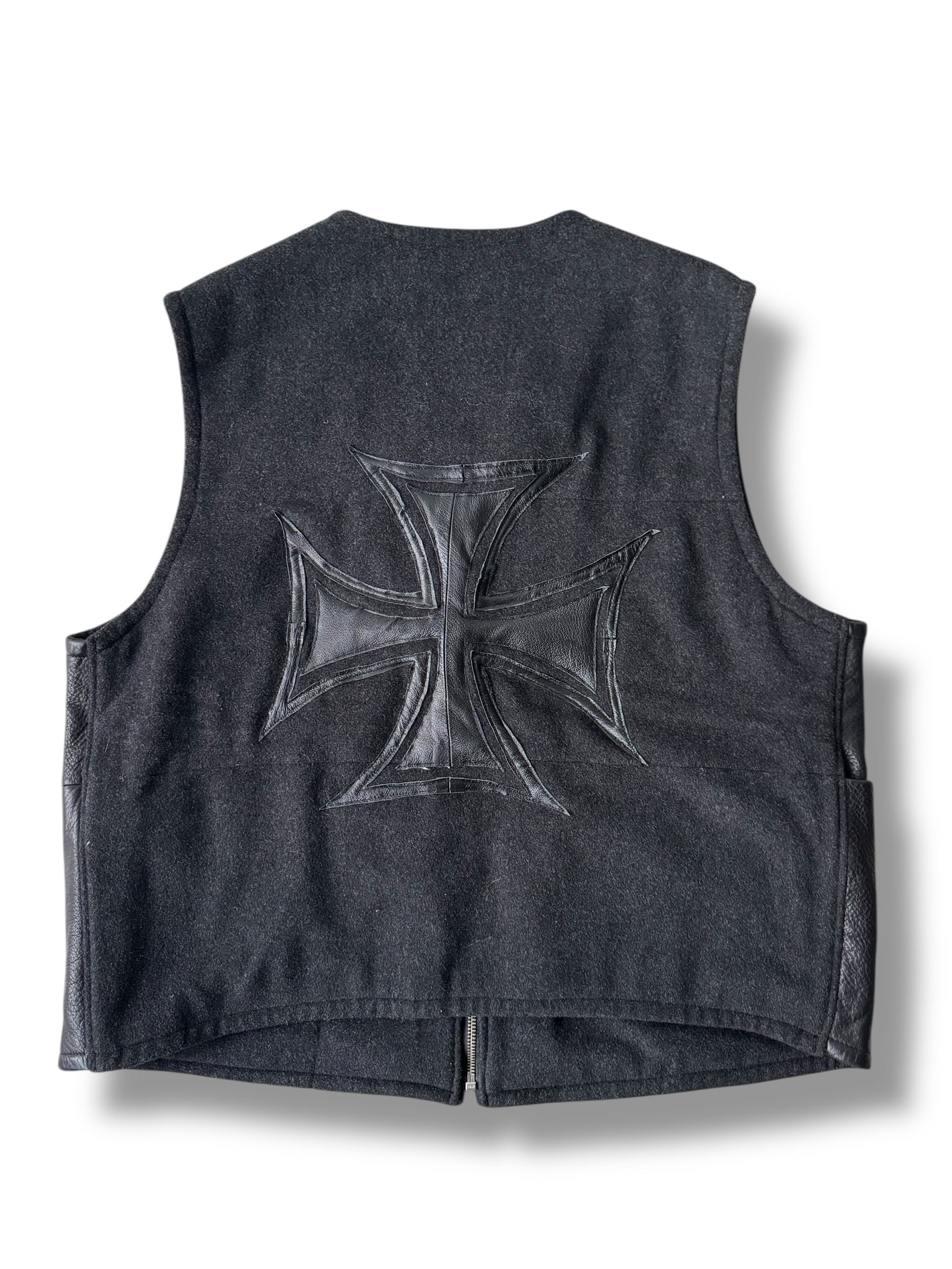 "iron cross" custom design leather switching vest