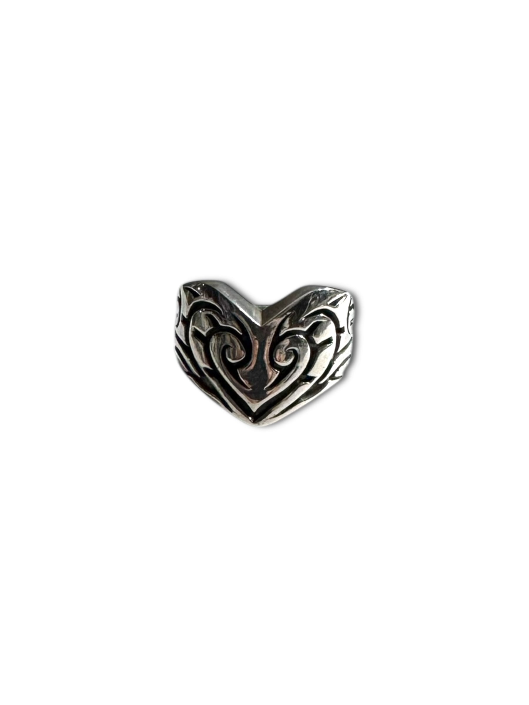 ハートモチーフの形にトライバルデザインが彫られイブシ加工もされめちゃくちゃクールなデザイン✨️✨️