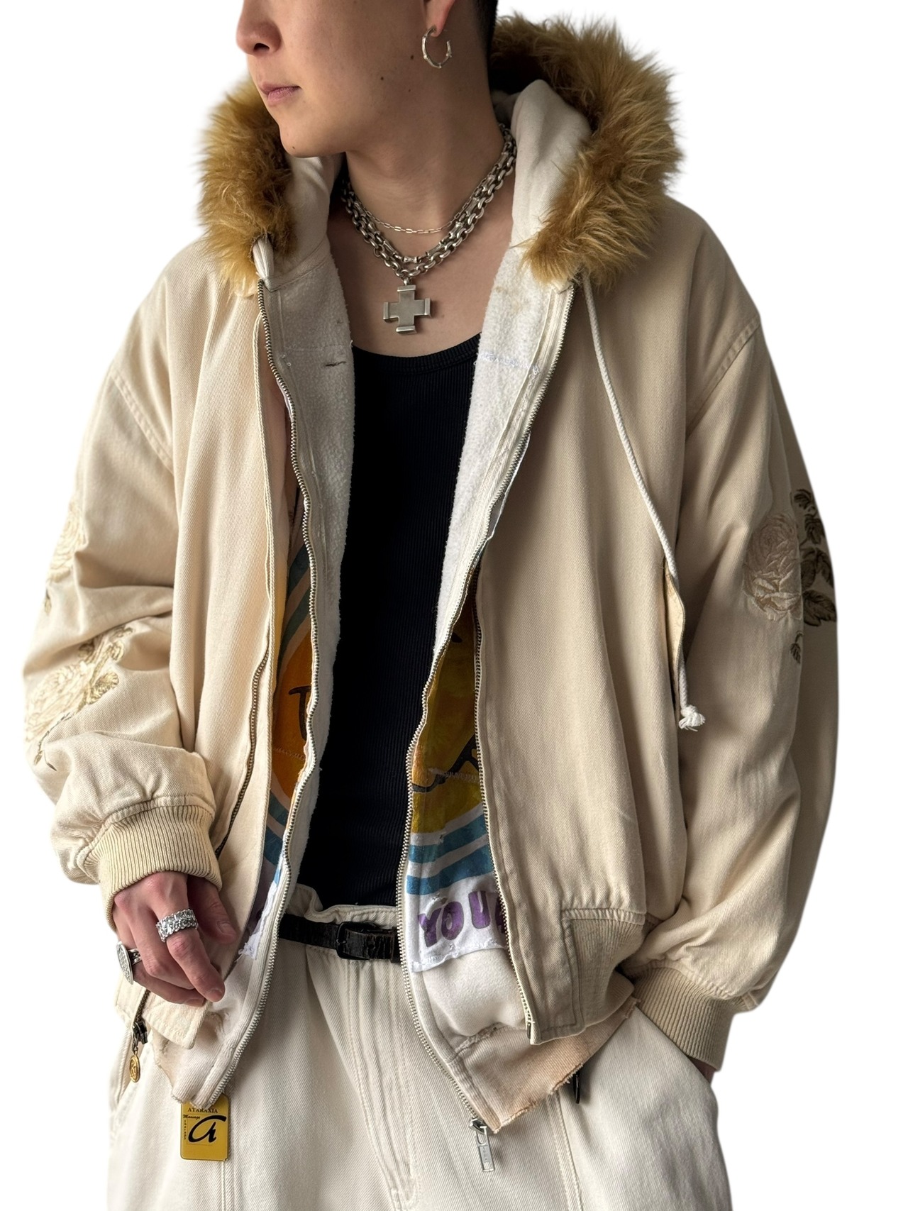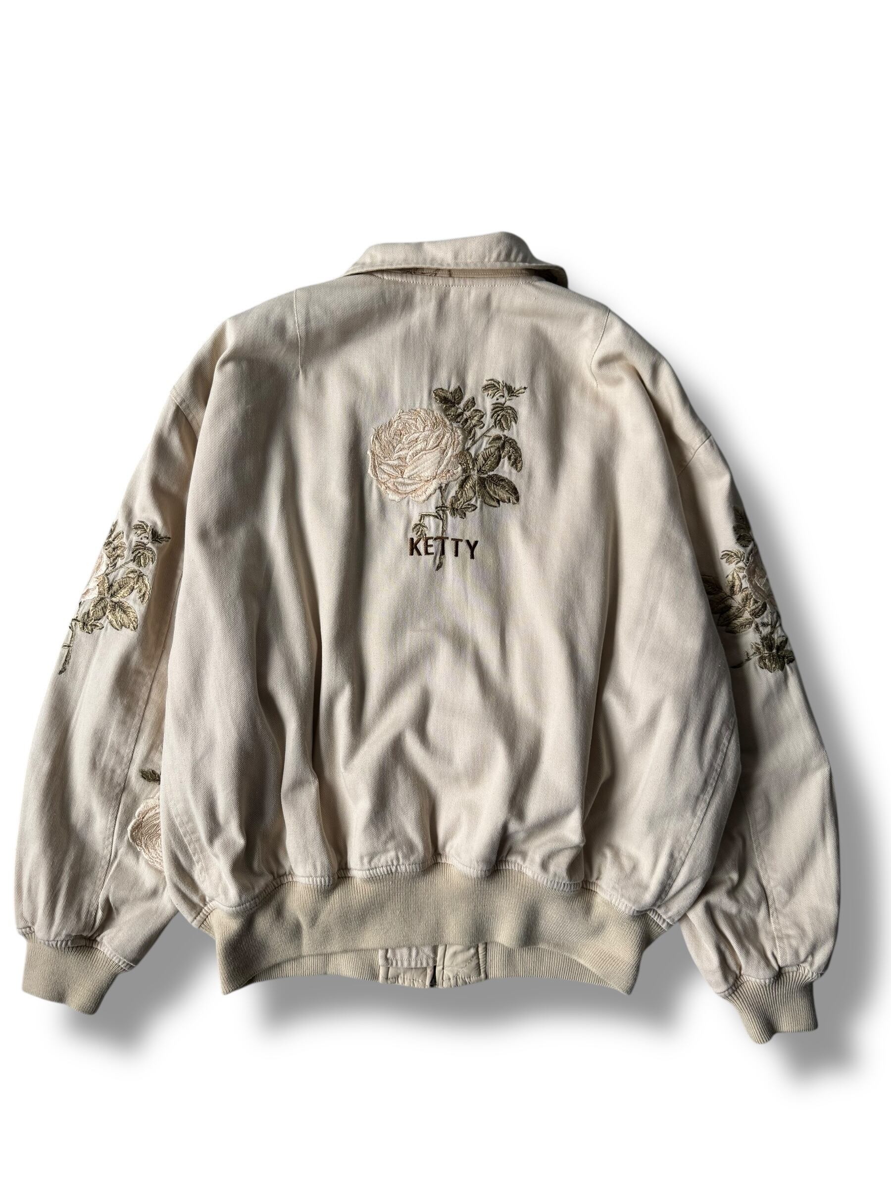 ♾KETTY♾ Rose embroidered zip-up collared blouson