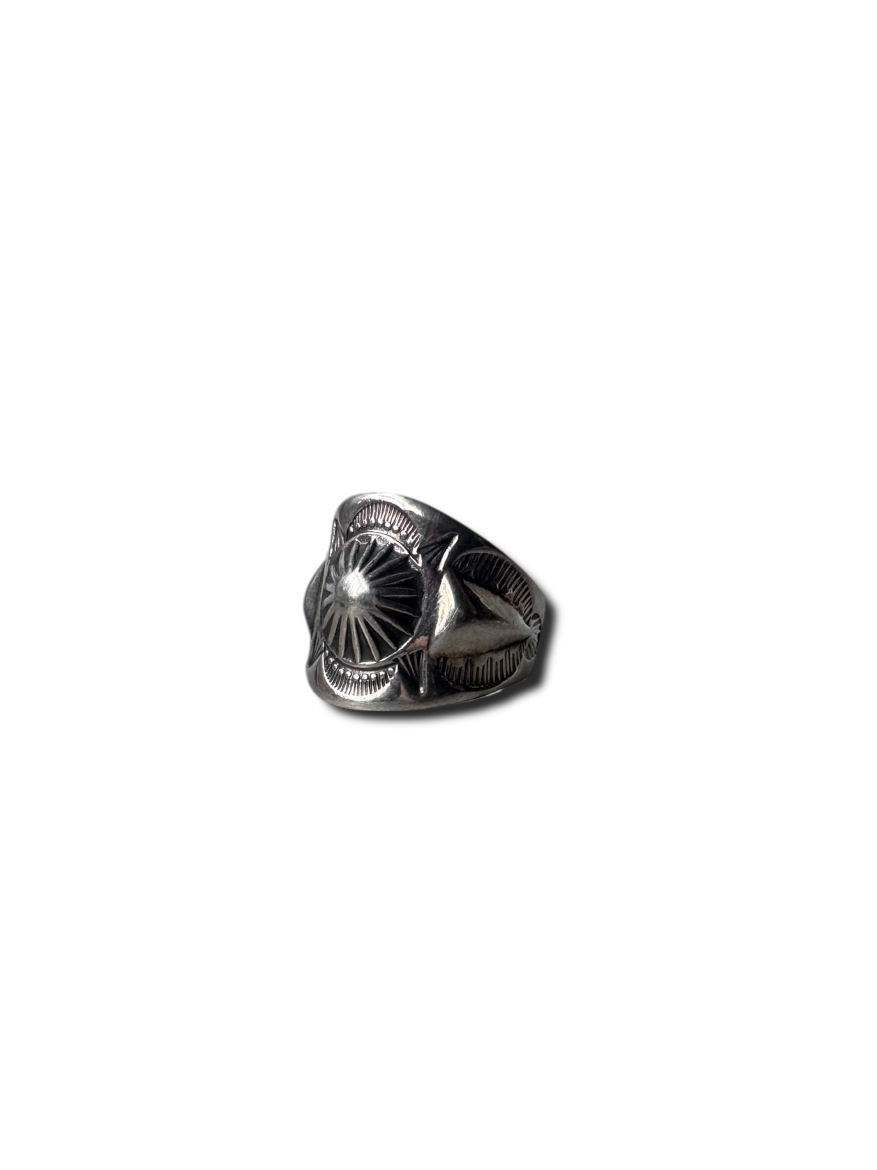 ナバホジュエリーに多い技法でスタンプ装飾が特徴的なデザイン‼️