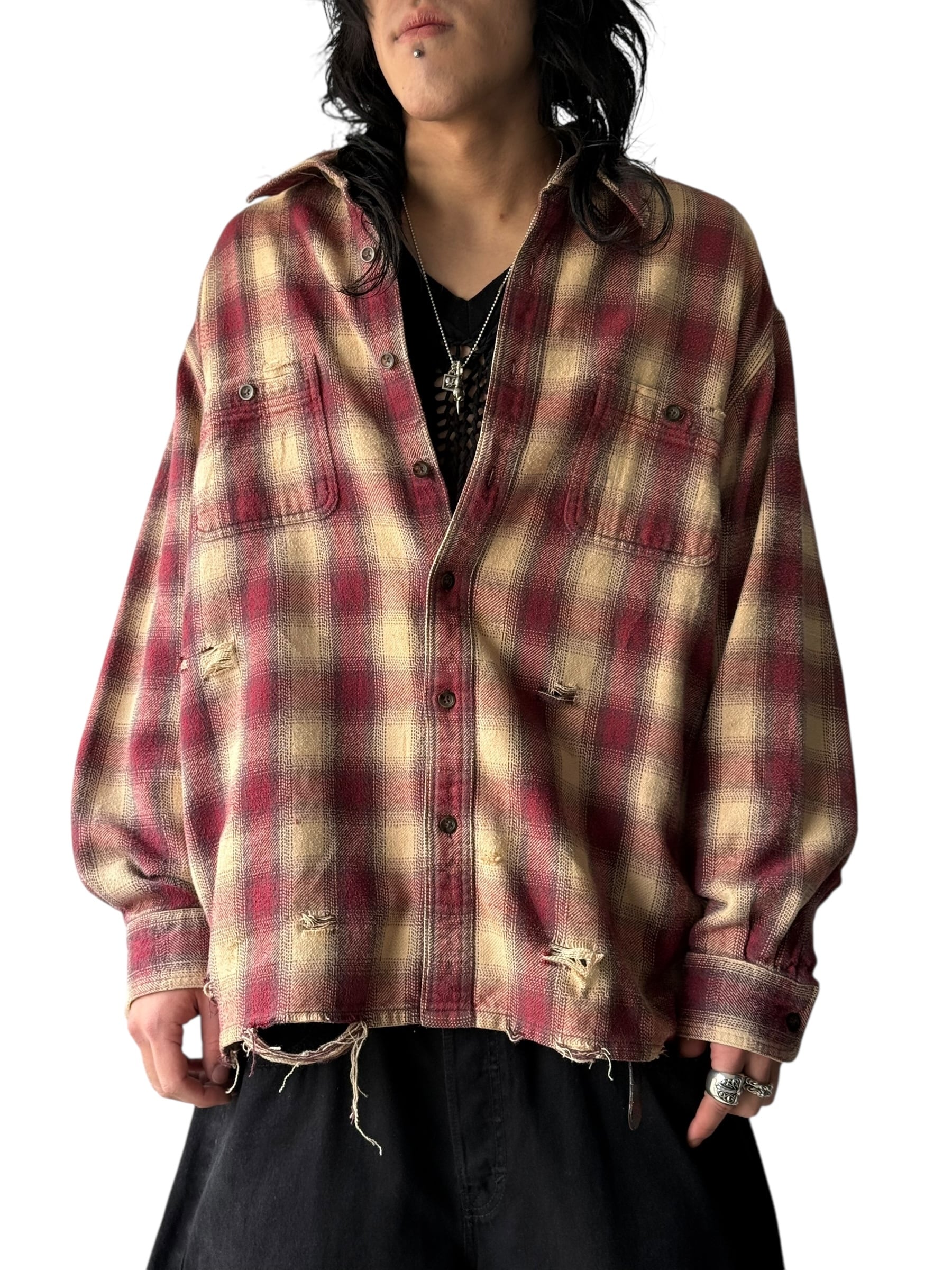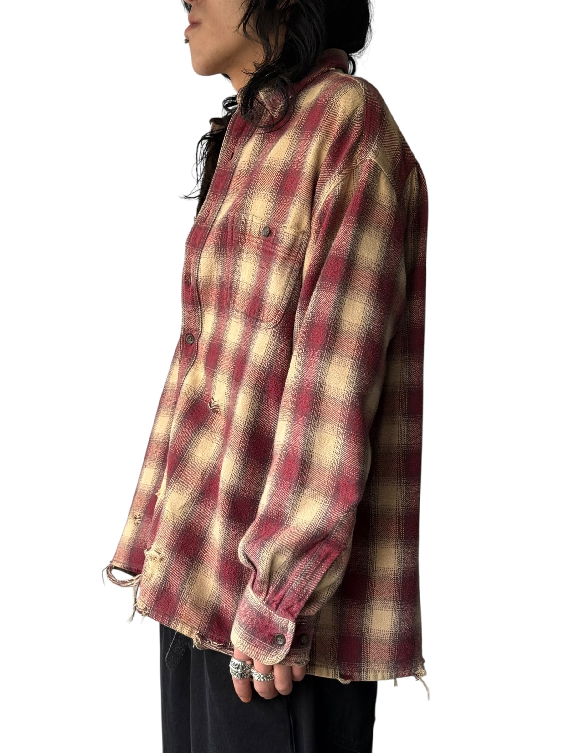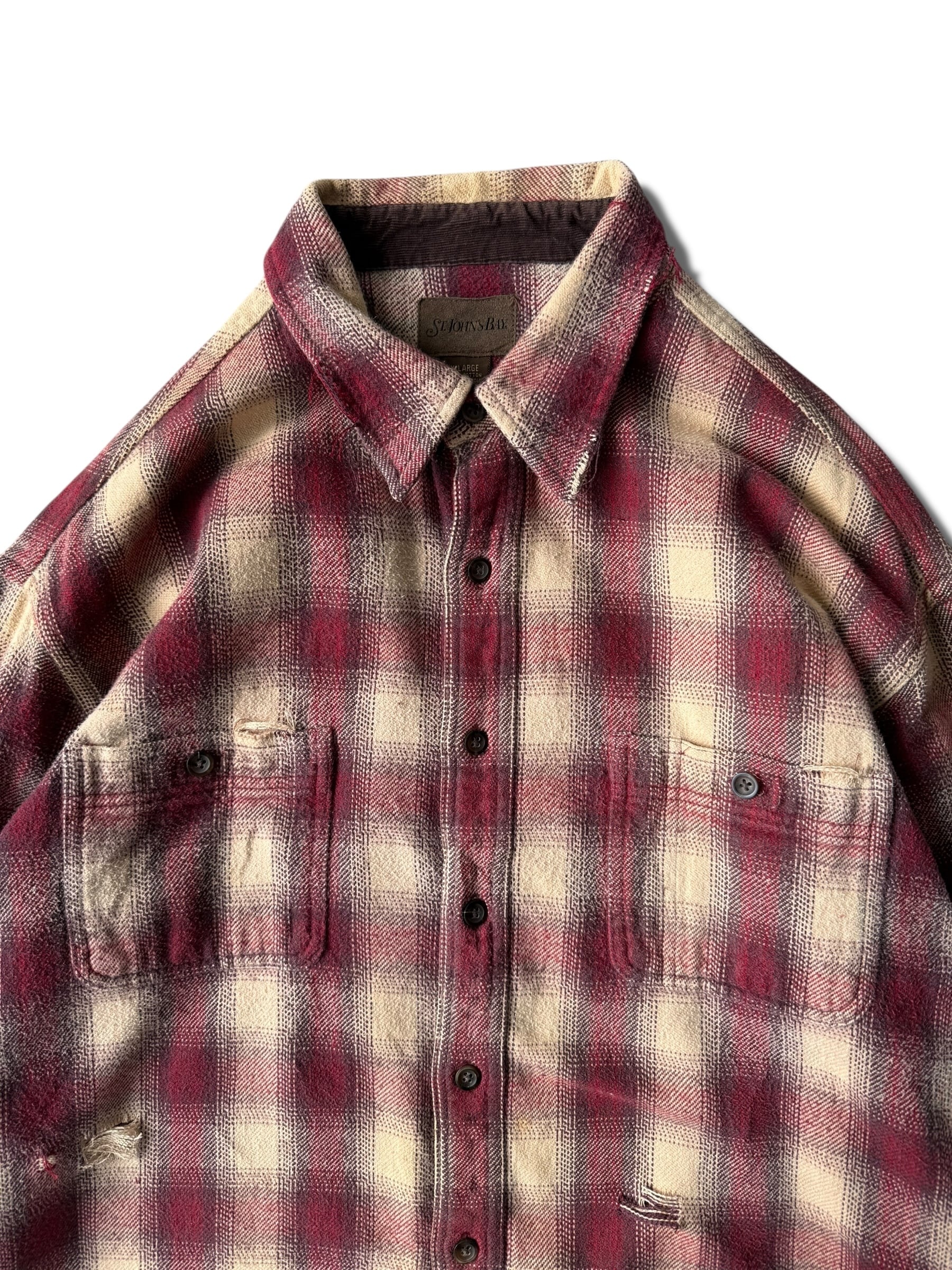 【ST.JOHNS BAY】 Design crushed ombré check shirt 〜heavy nel〜