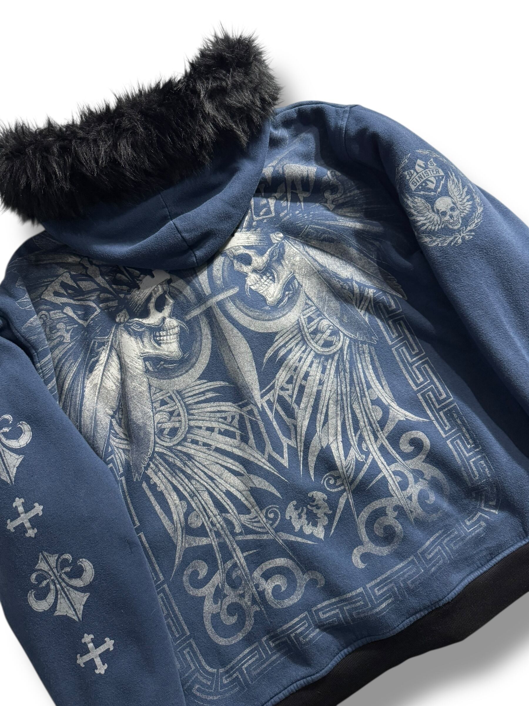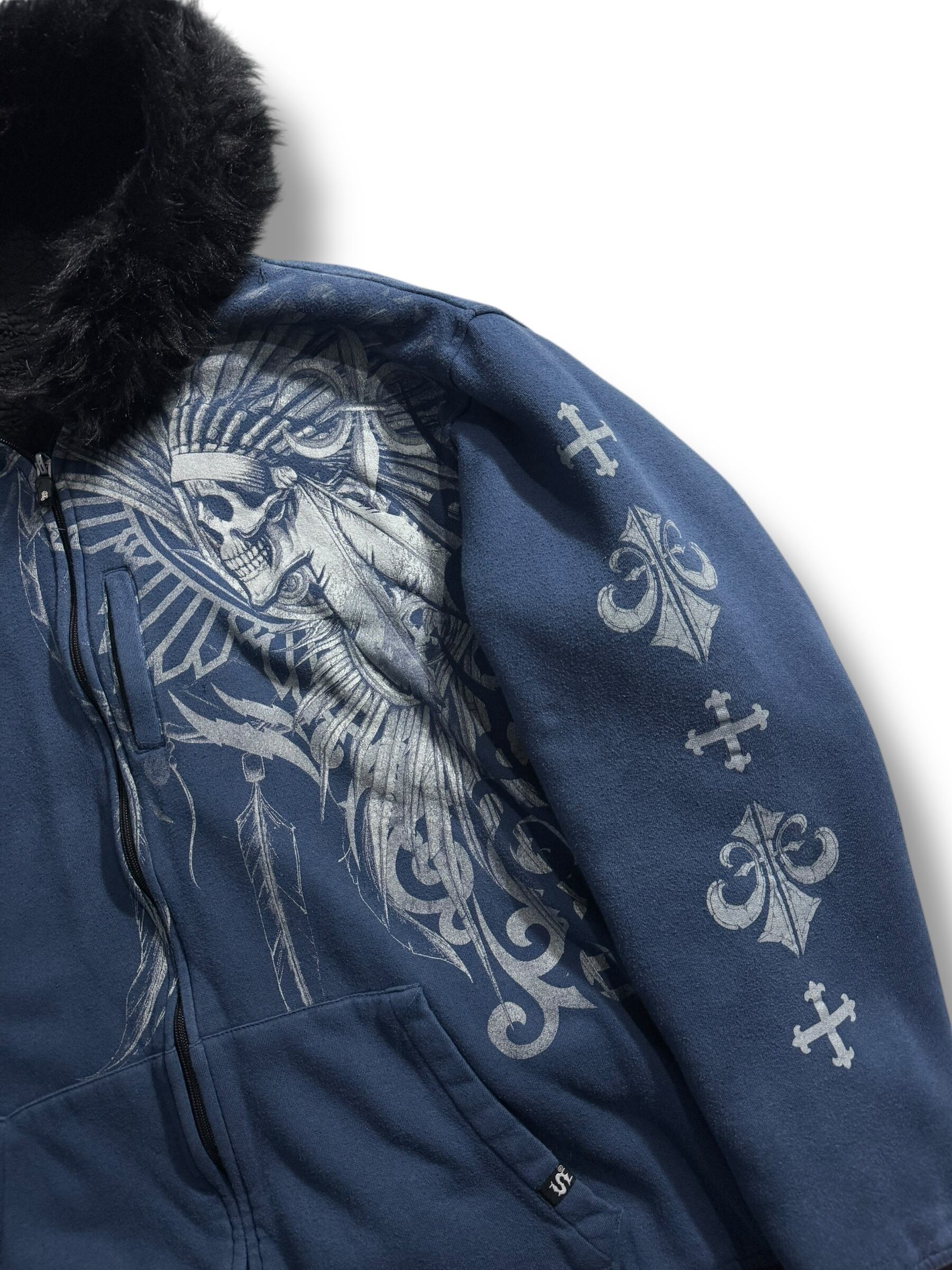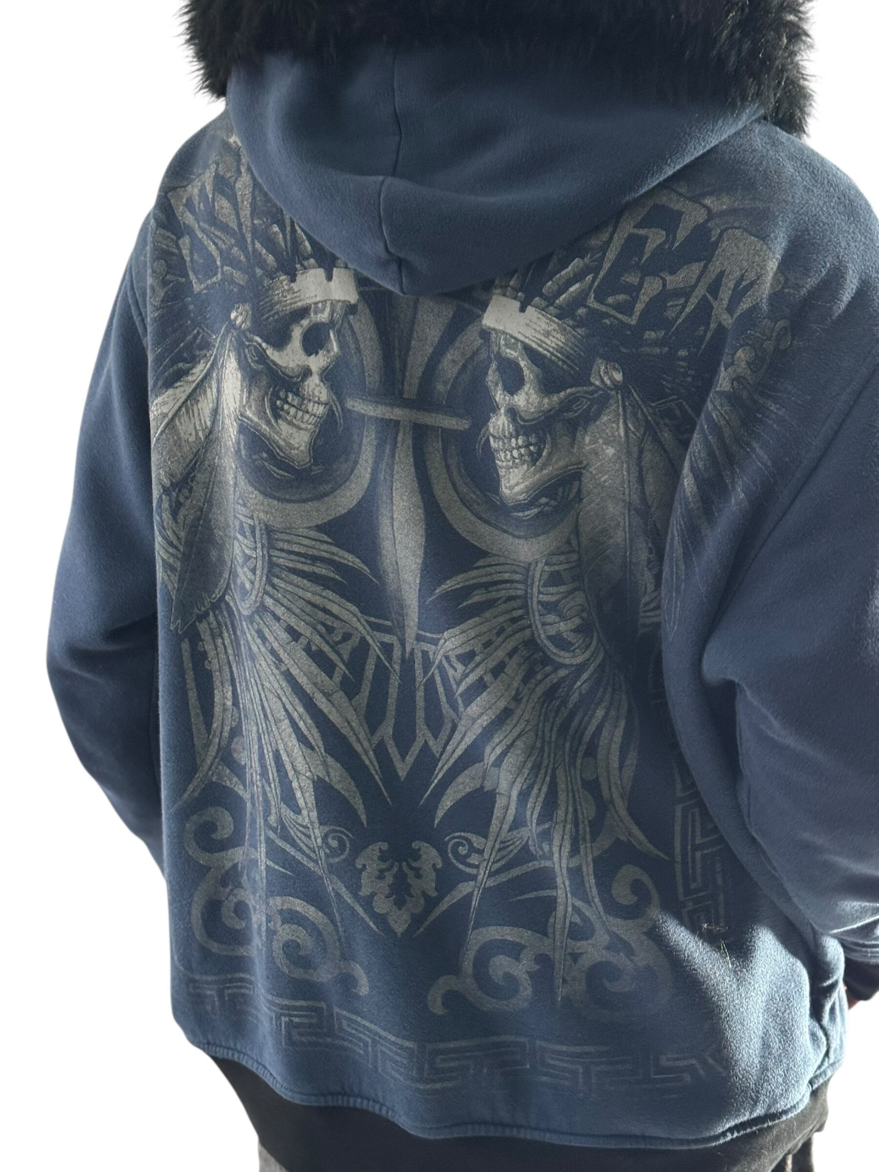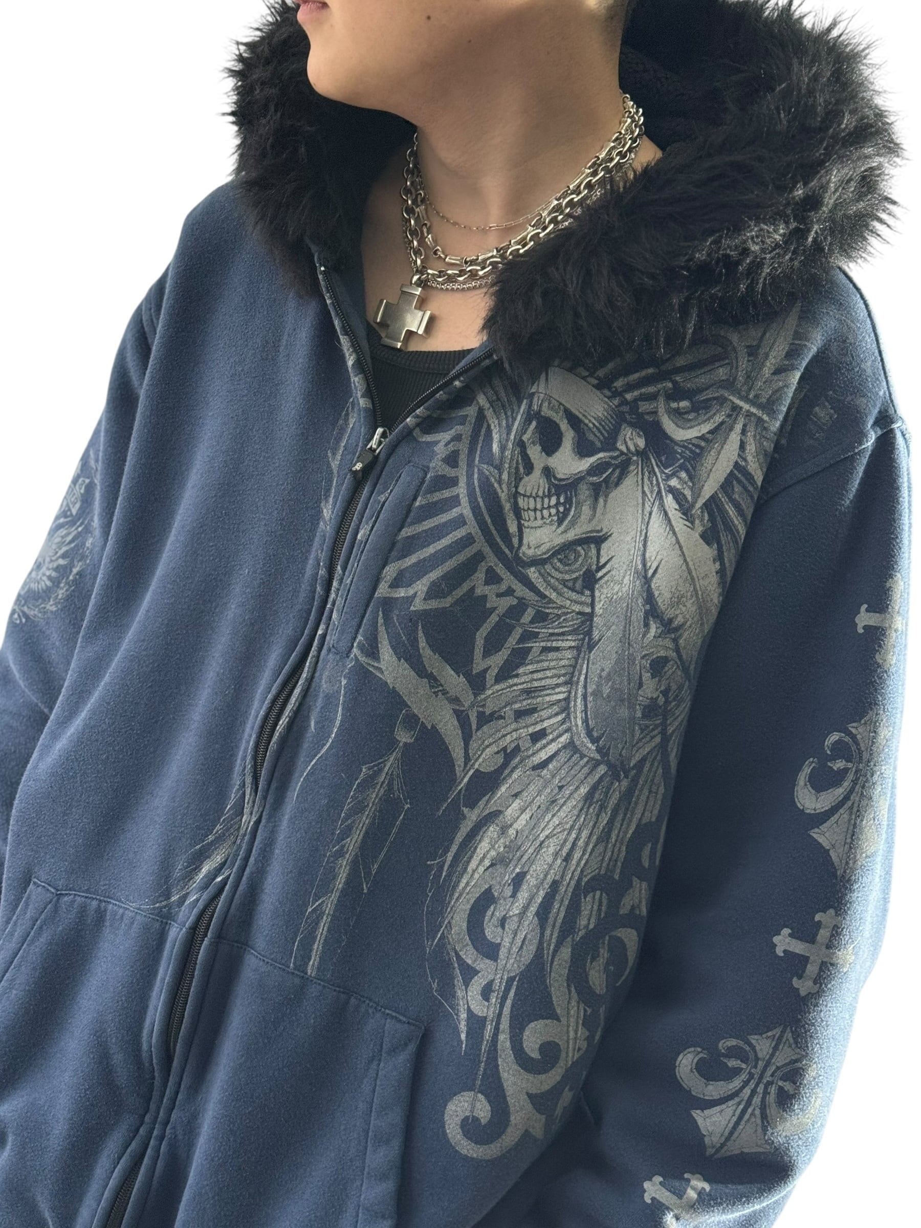 ♾sinister♾ indian skull motif 00's design zip up hoodie sizeXXL