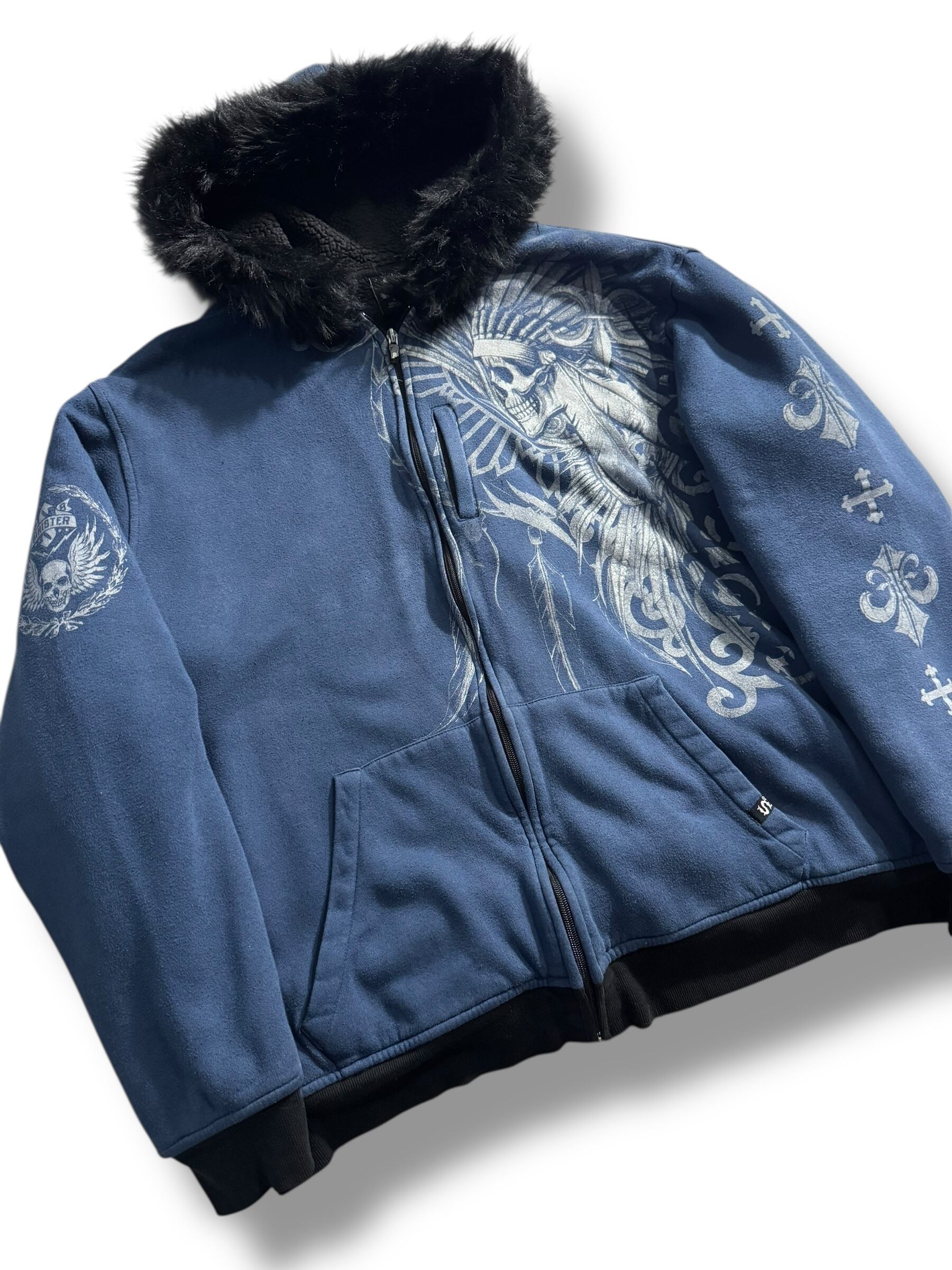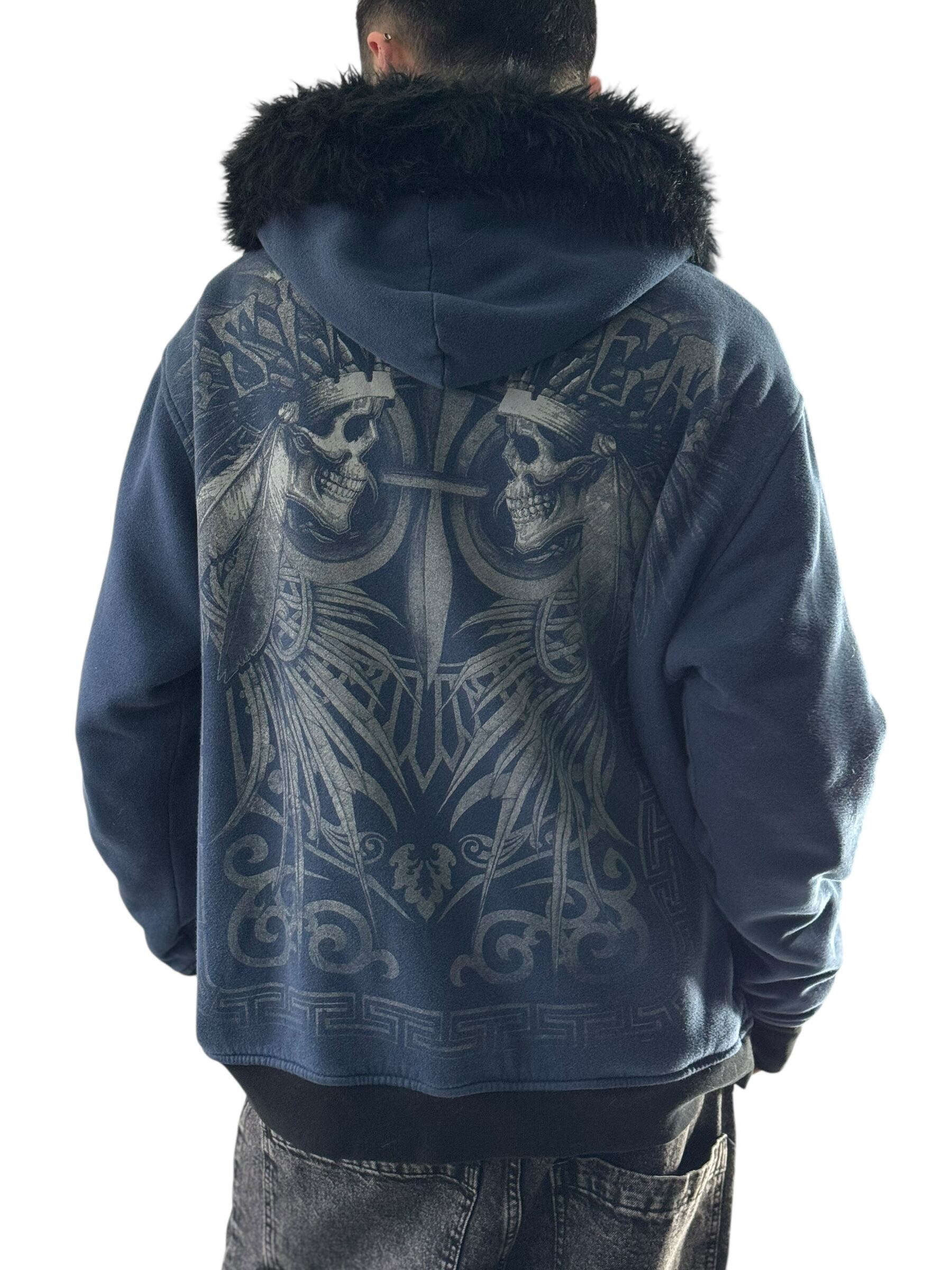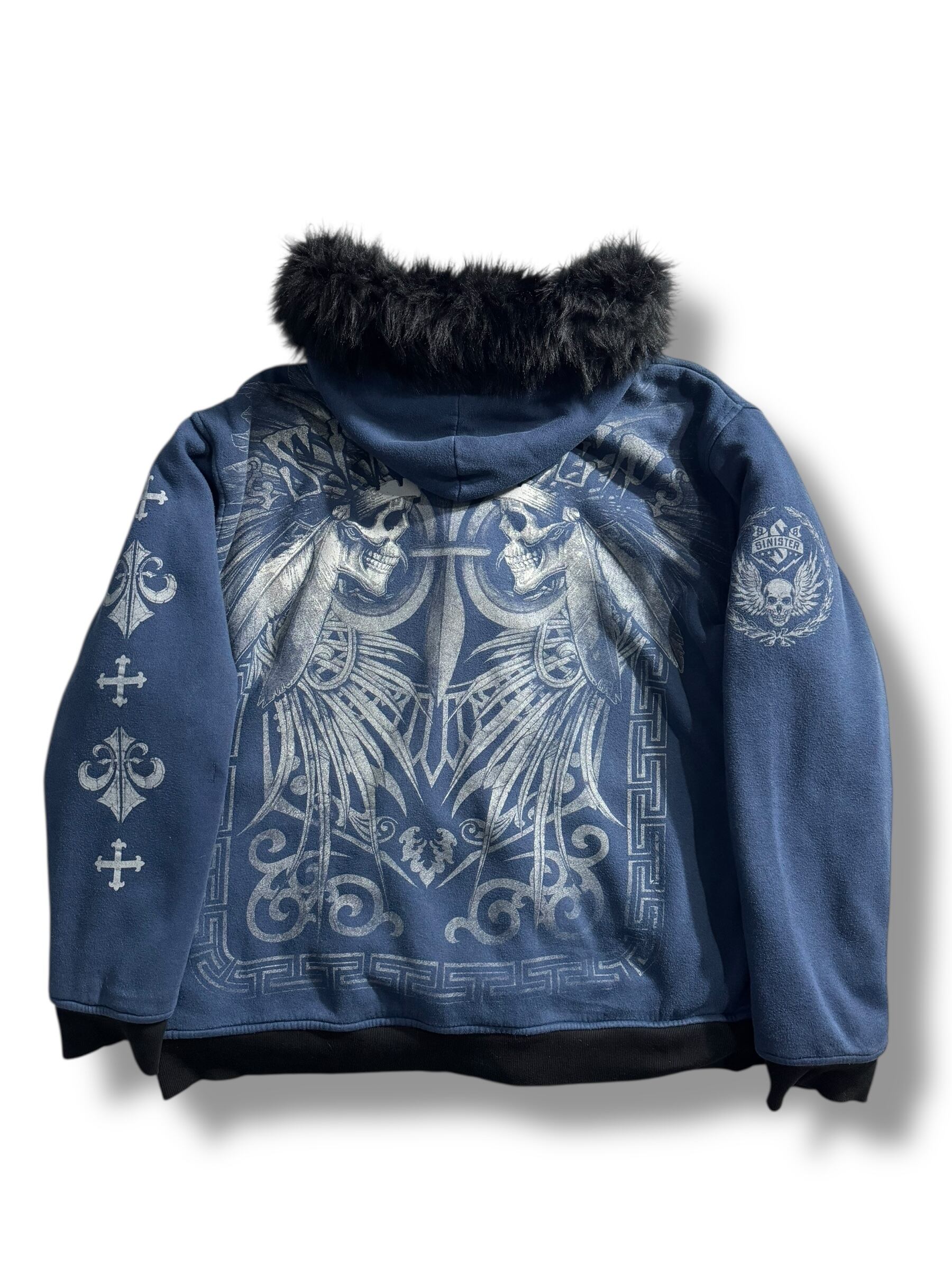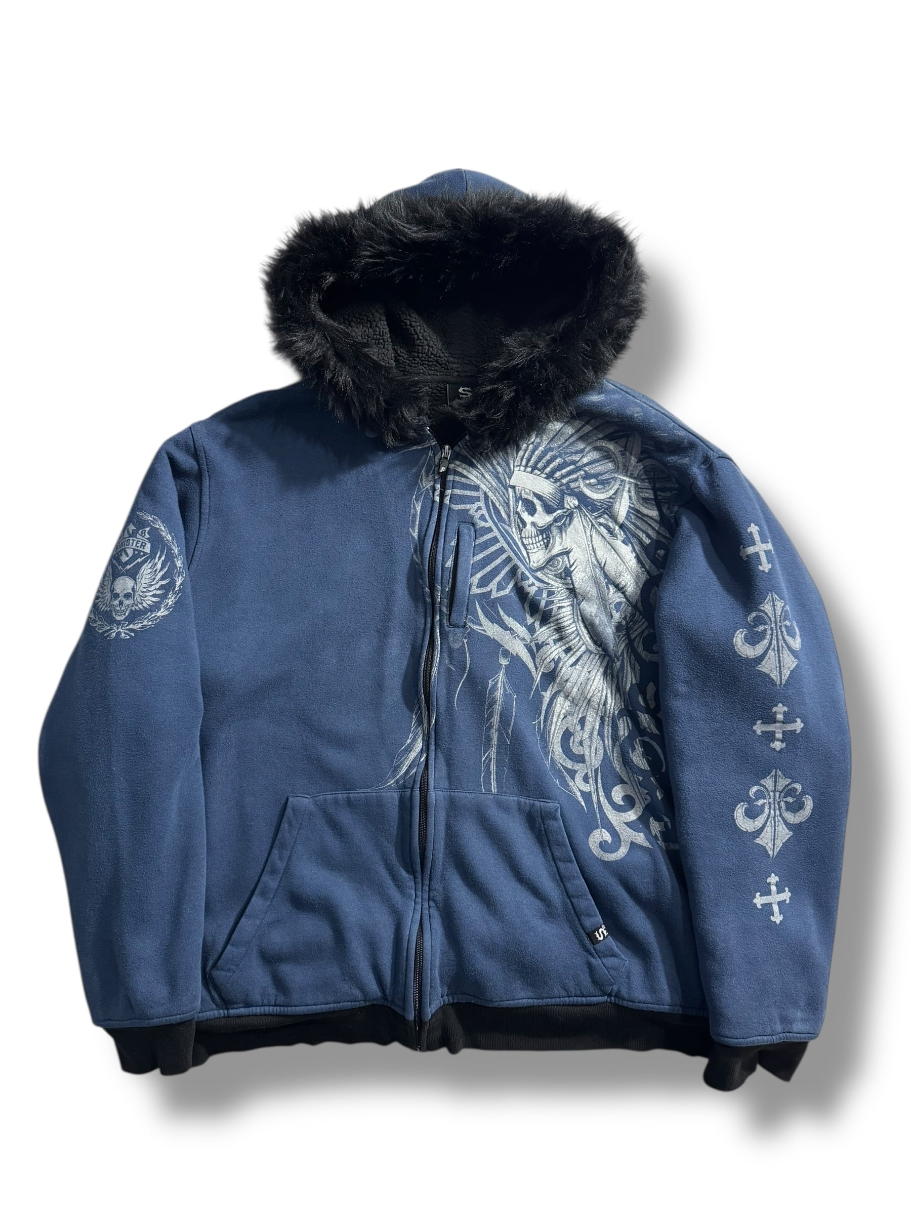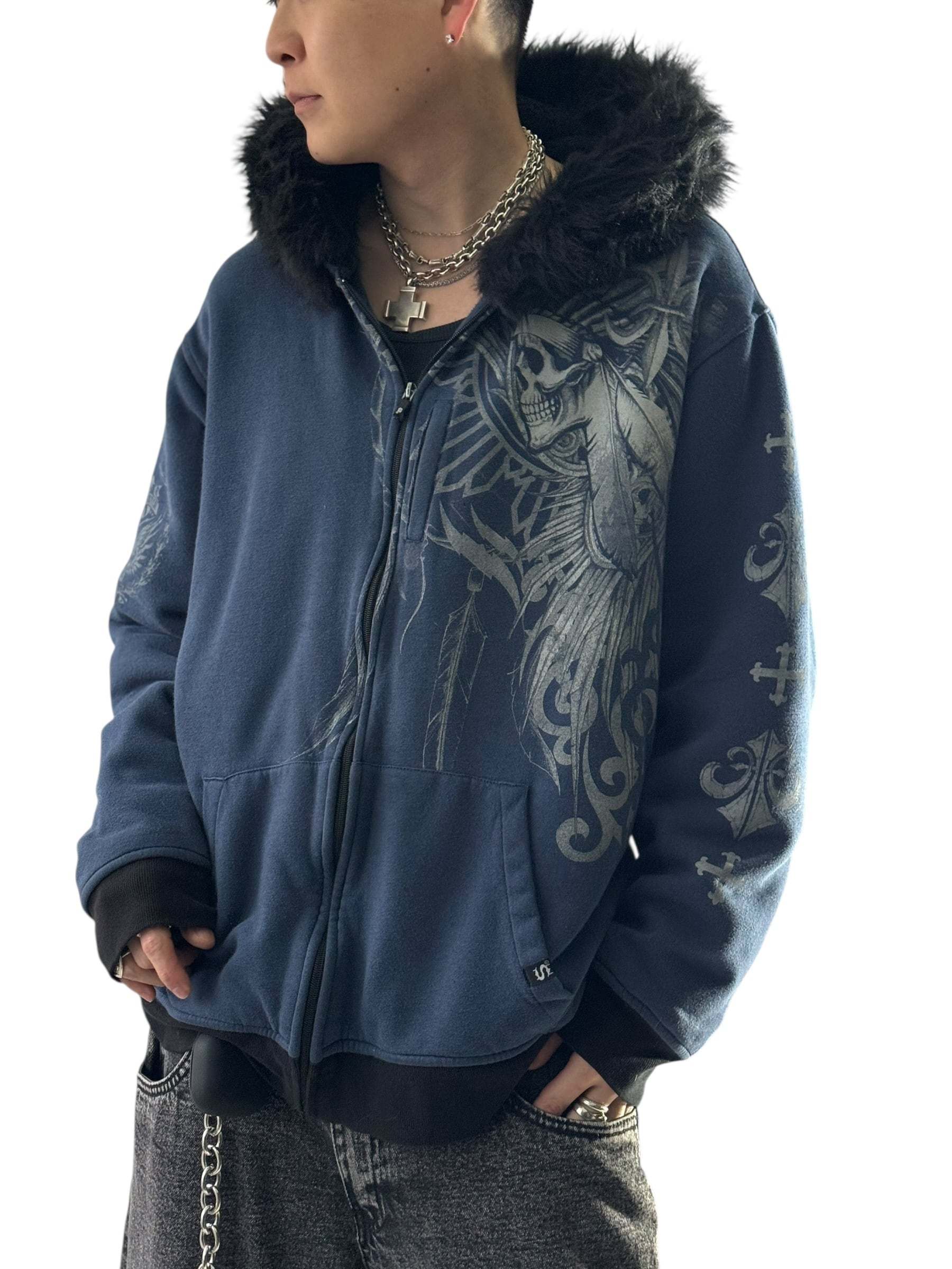 ♾sinister♾ indian skull motif 00's design zip up hoodie sizeXXL
