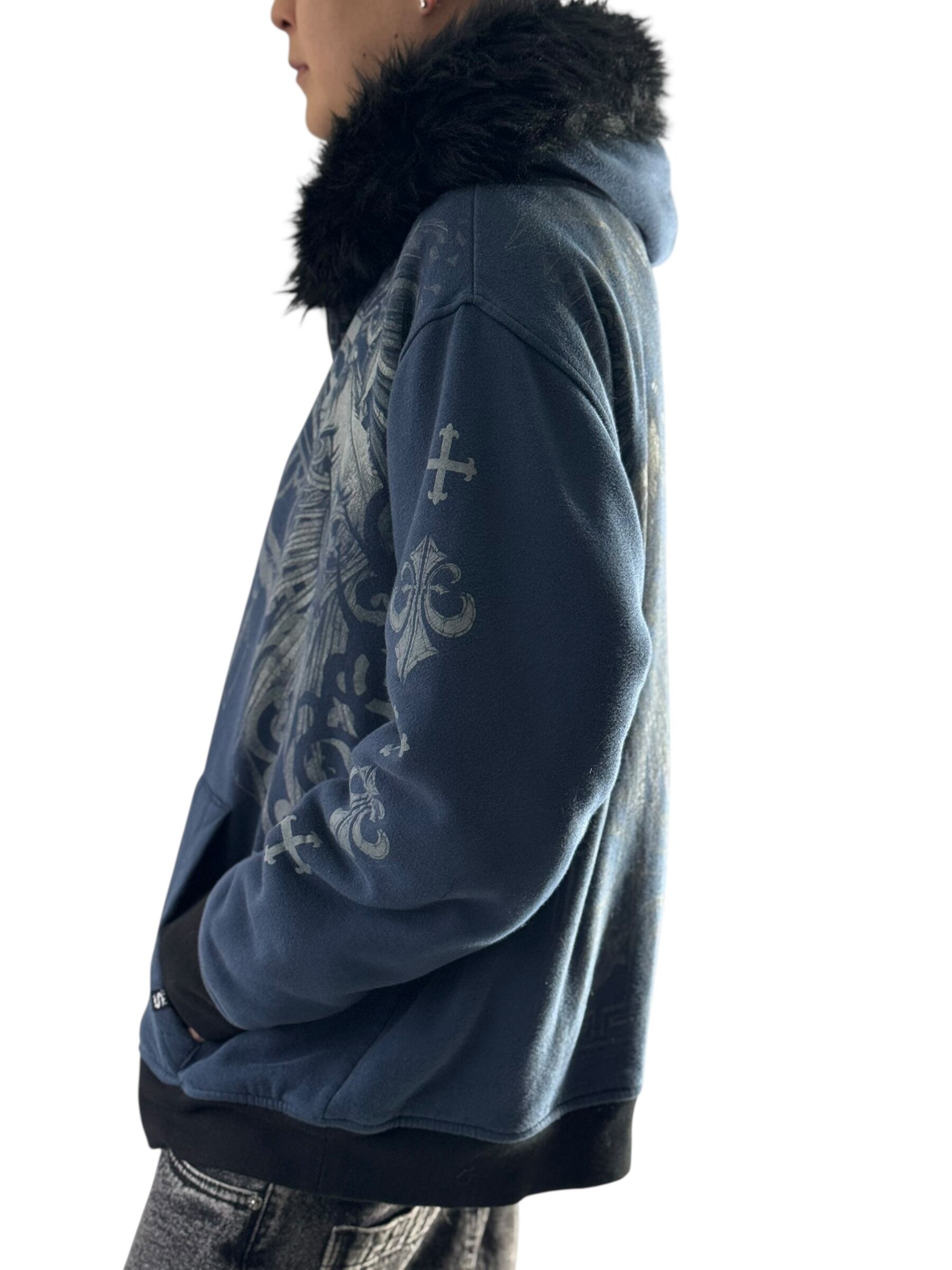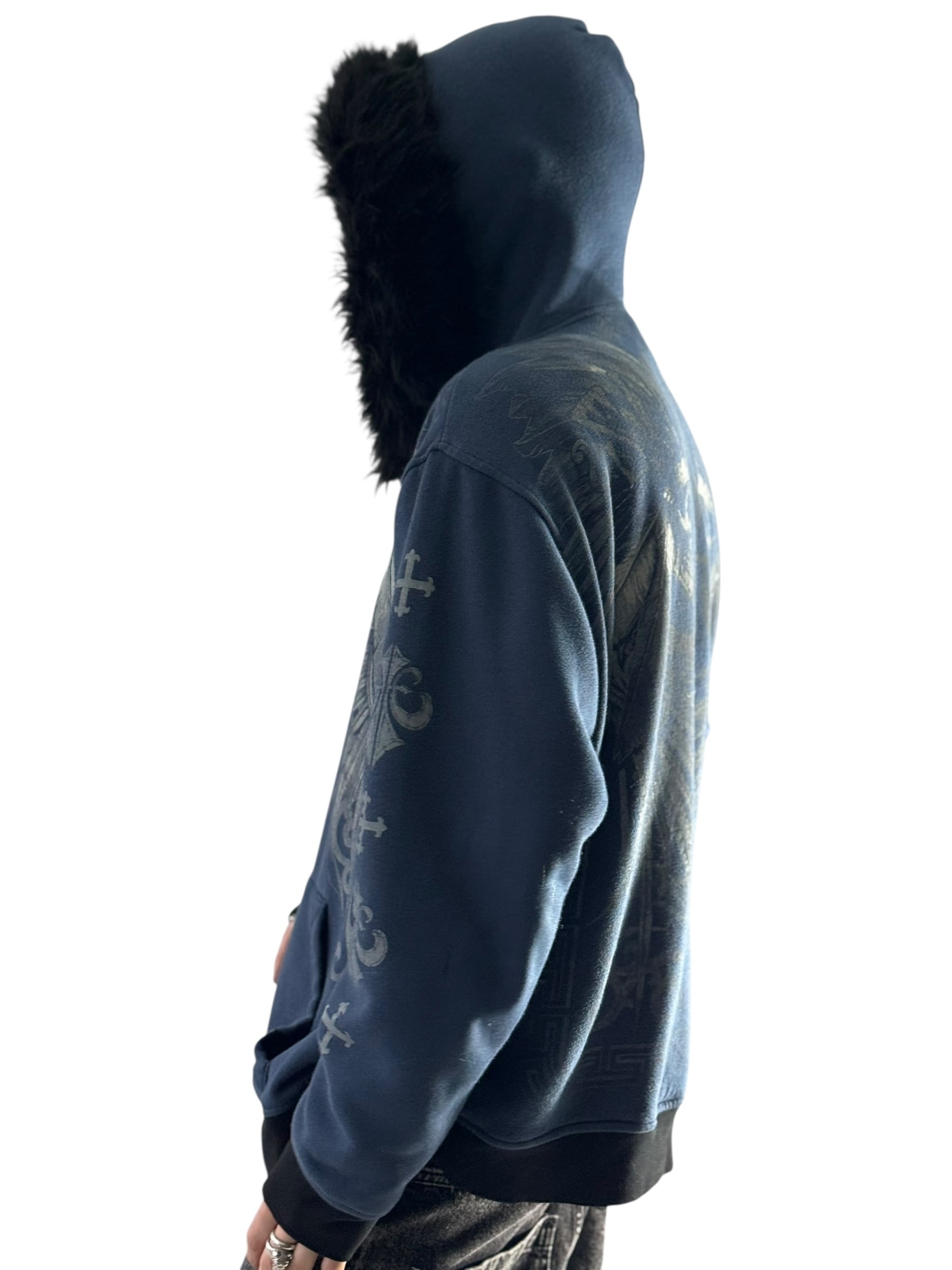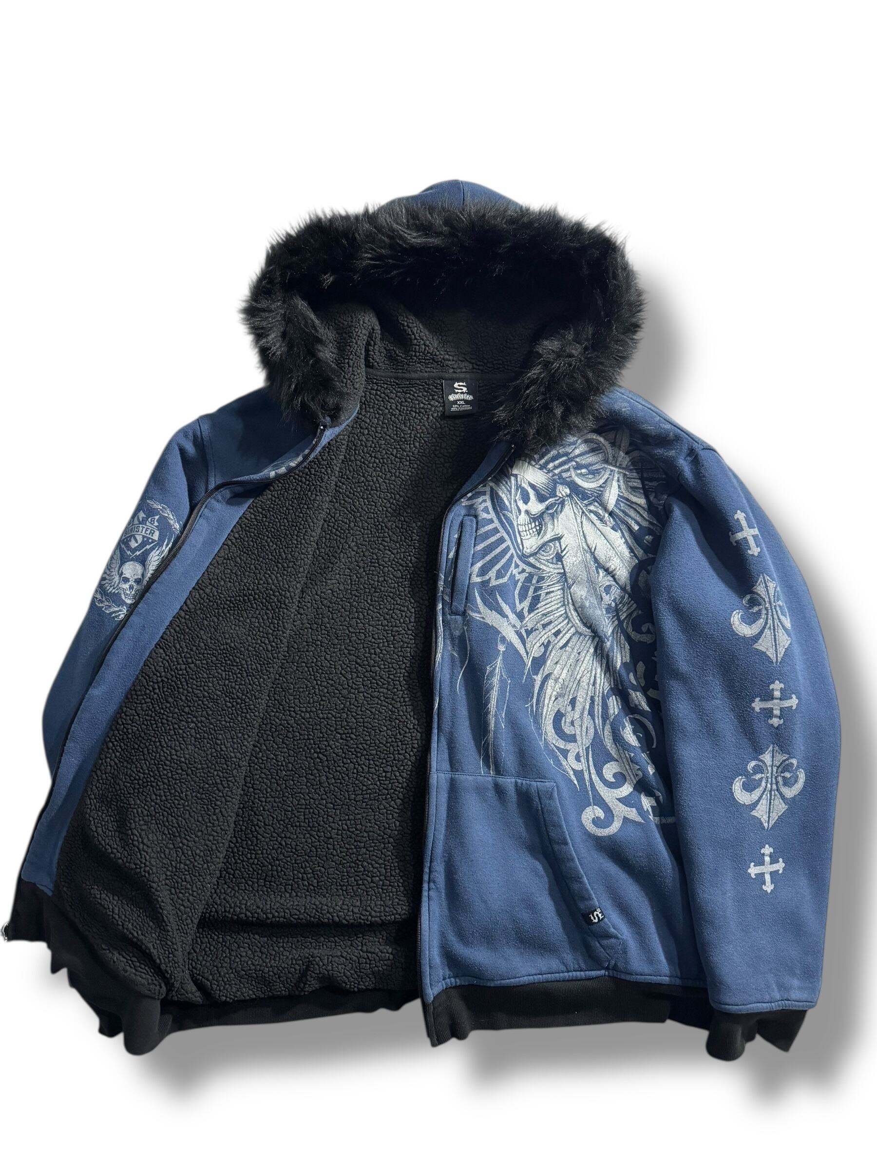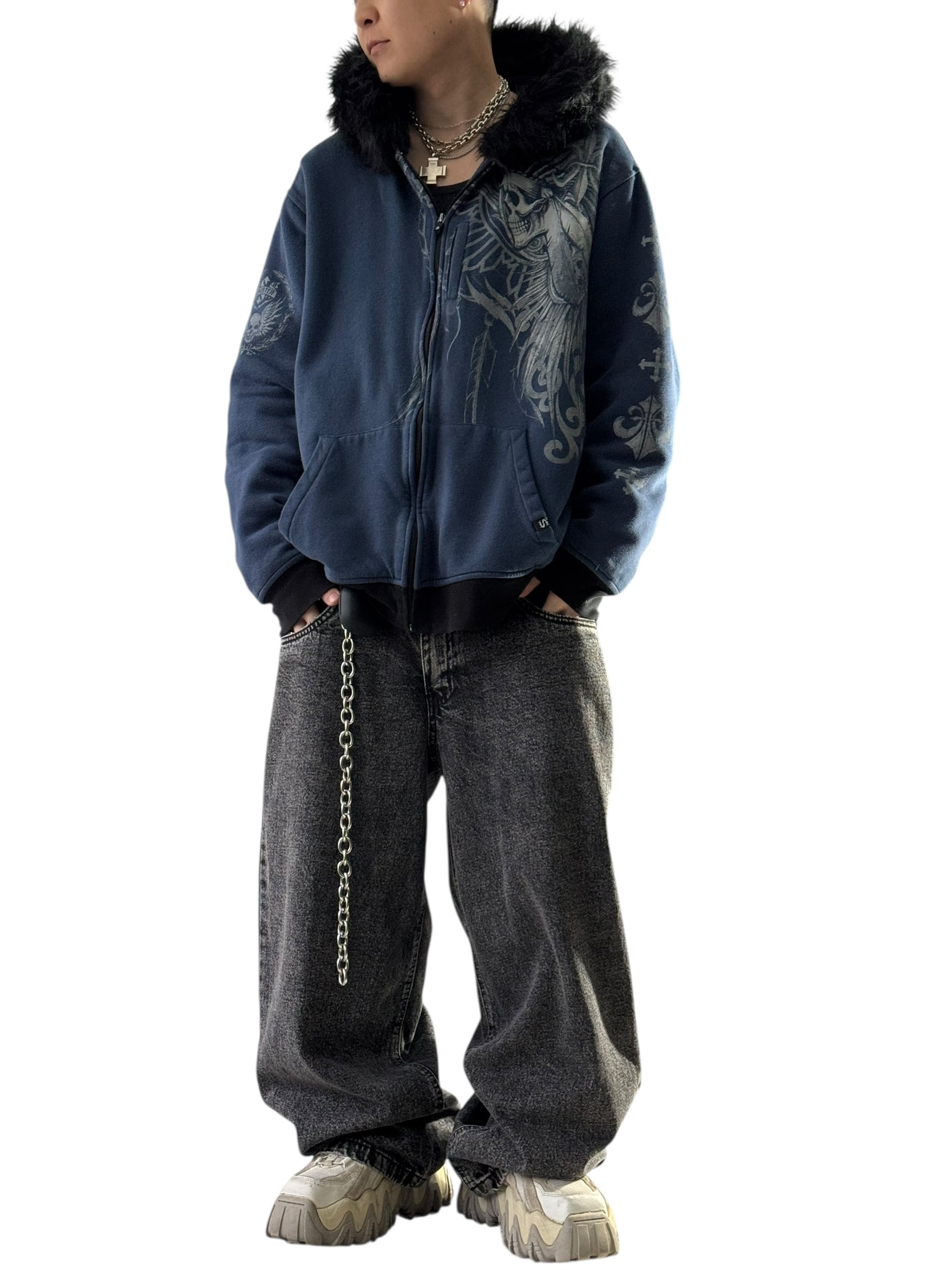 ♾sinister♾ indian skull motif 00's design zip up hoodie sizeXXL