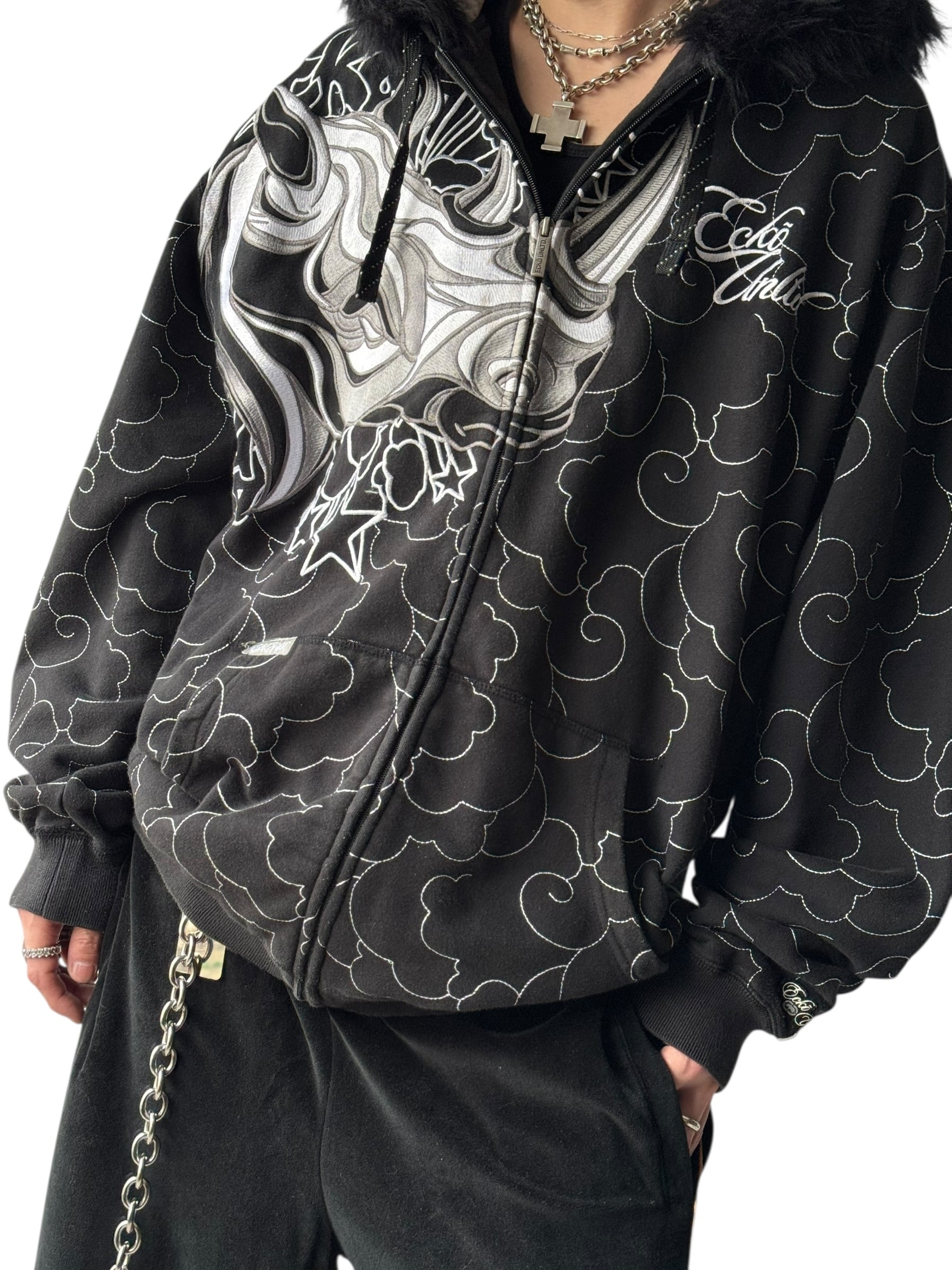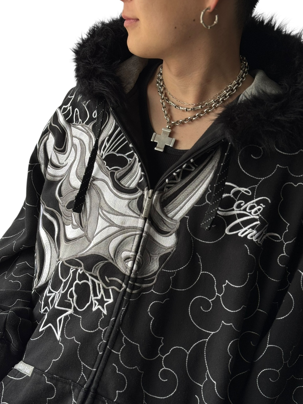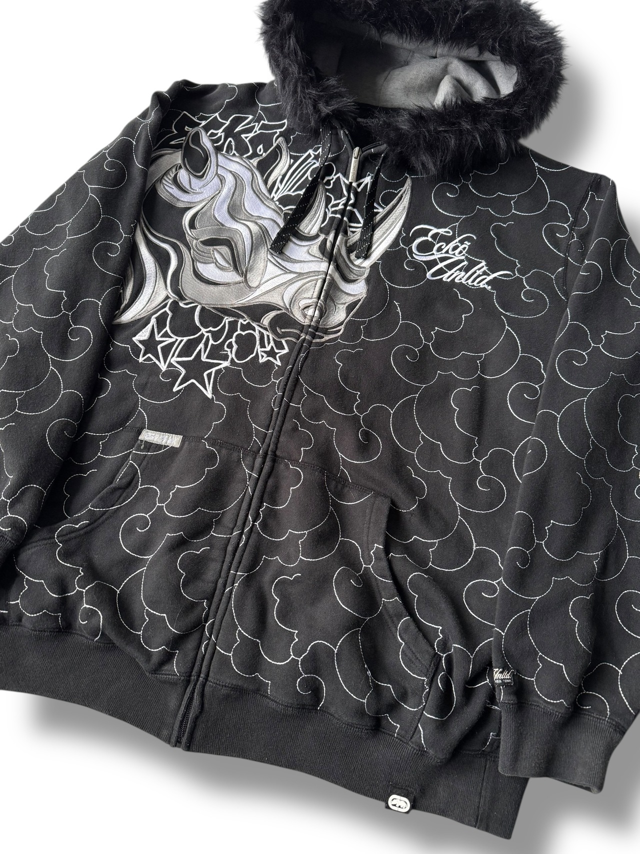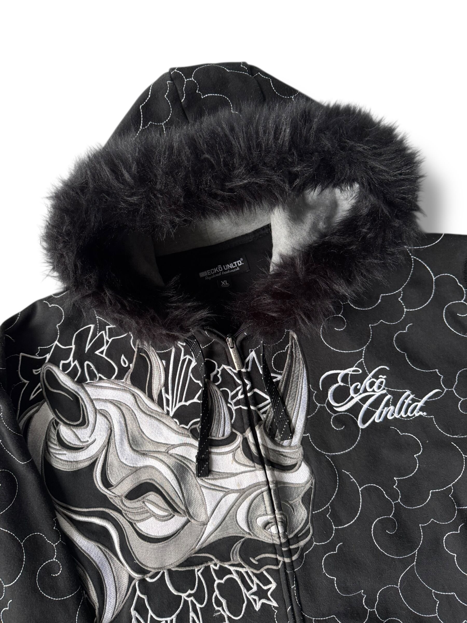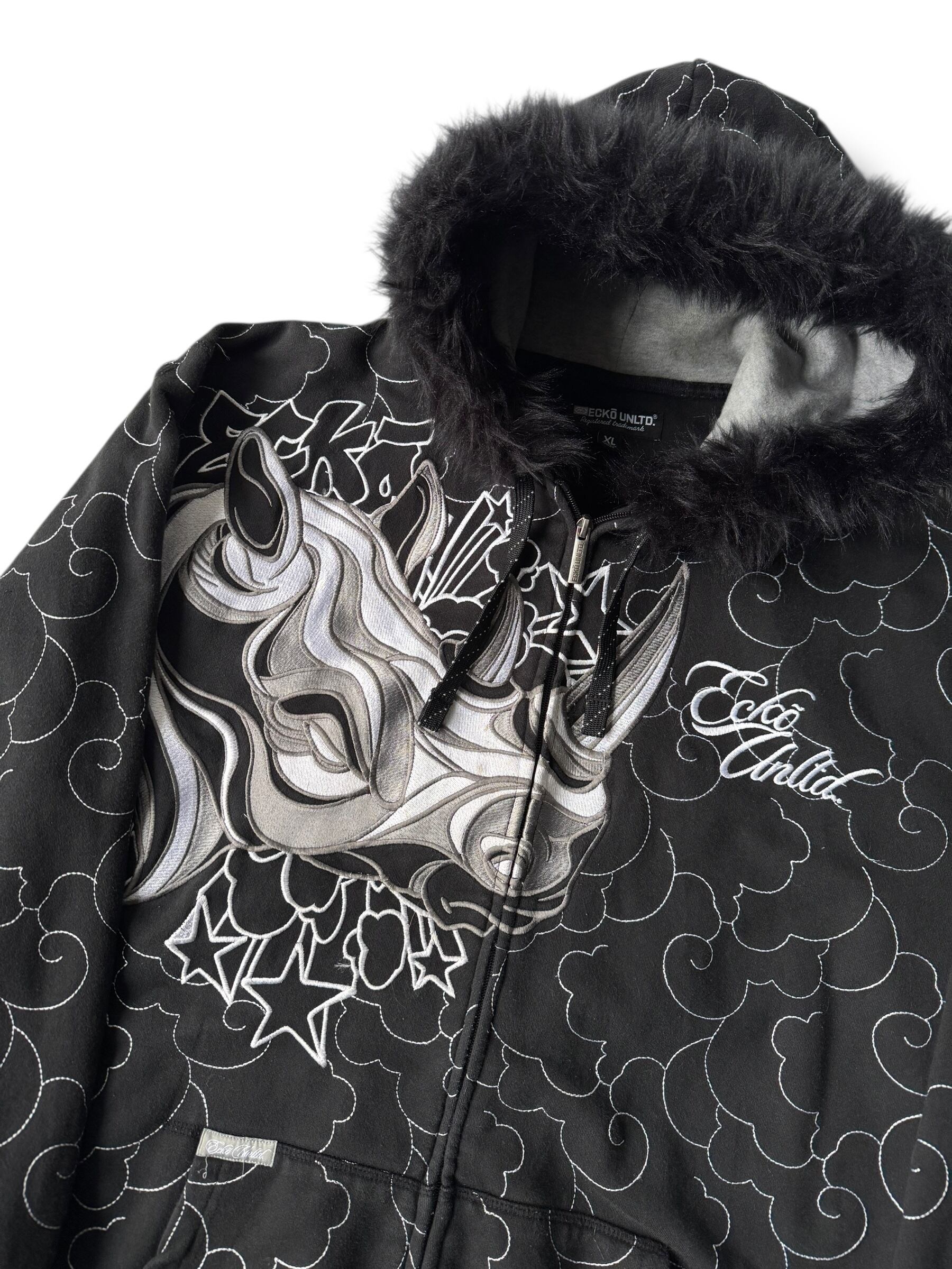 ♾ECKO UNLTD♾ embroidery rhinoceros motif 00's design zip up hoodie sizeXL