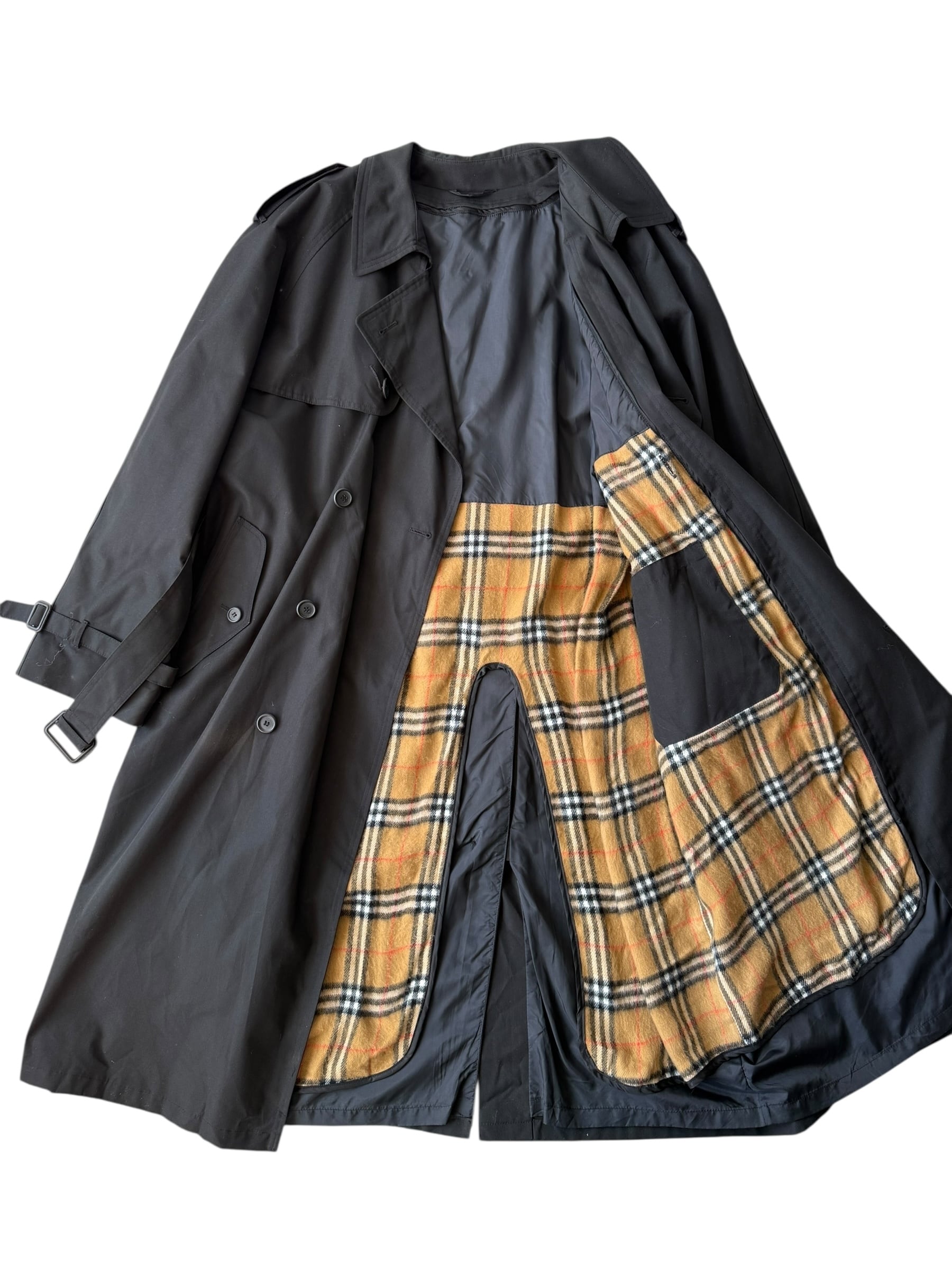 【Euro vintage】Nova check liner double trench long coat -BLACK-