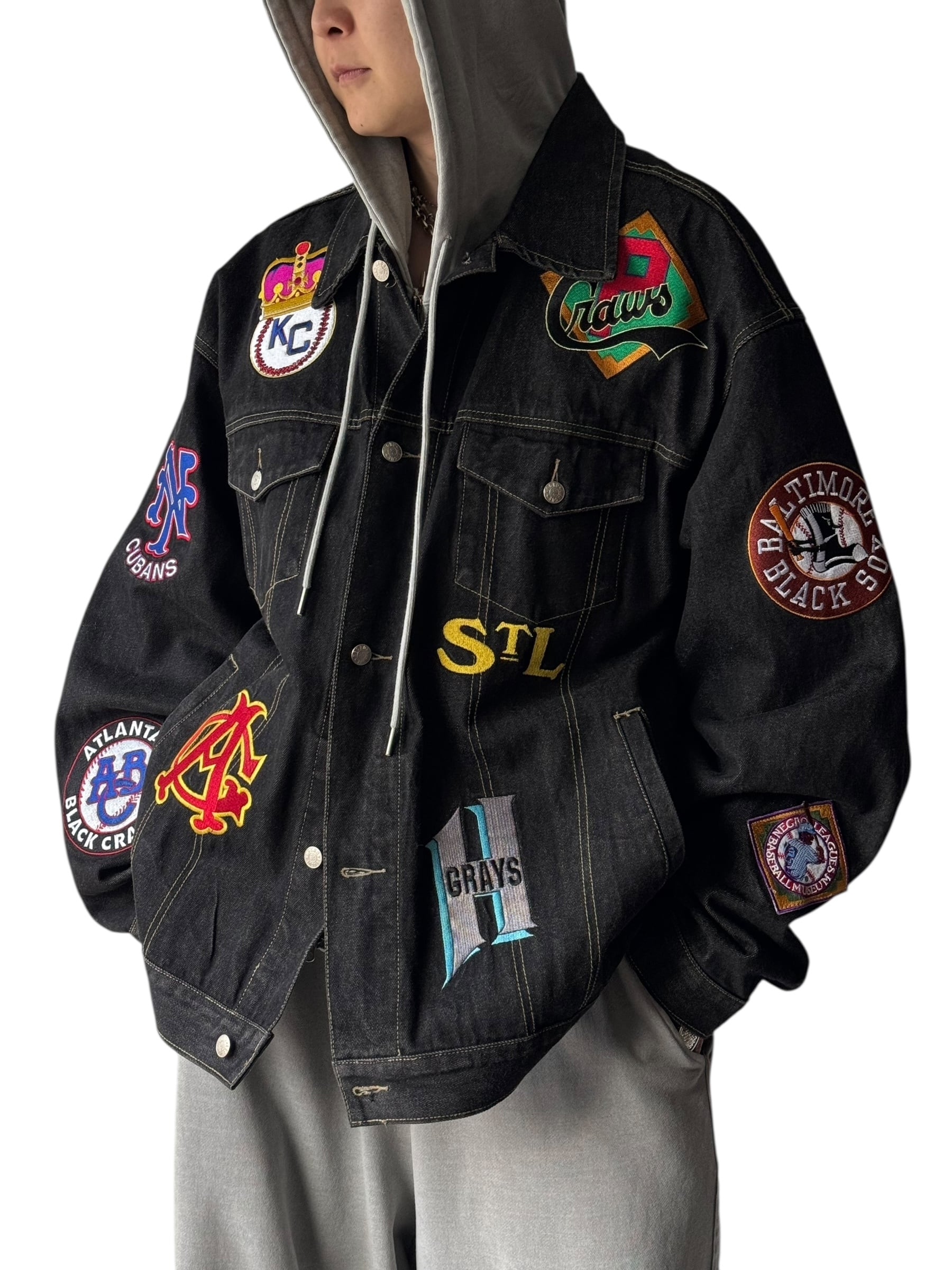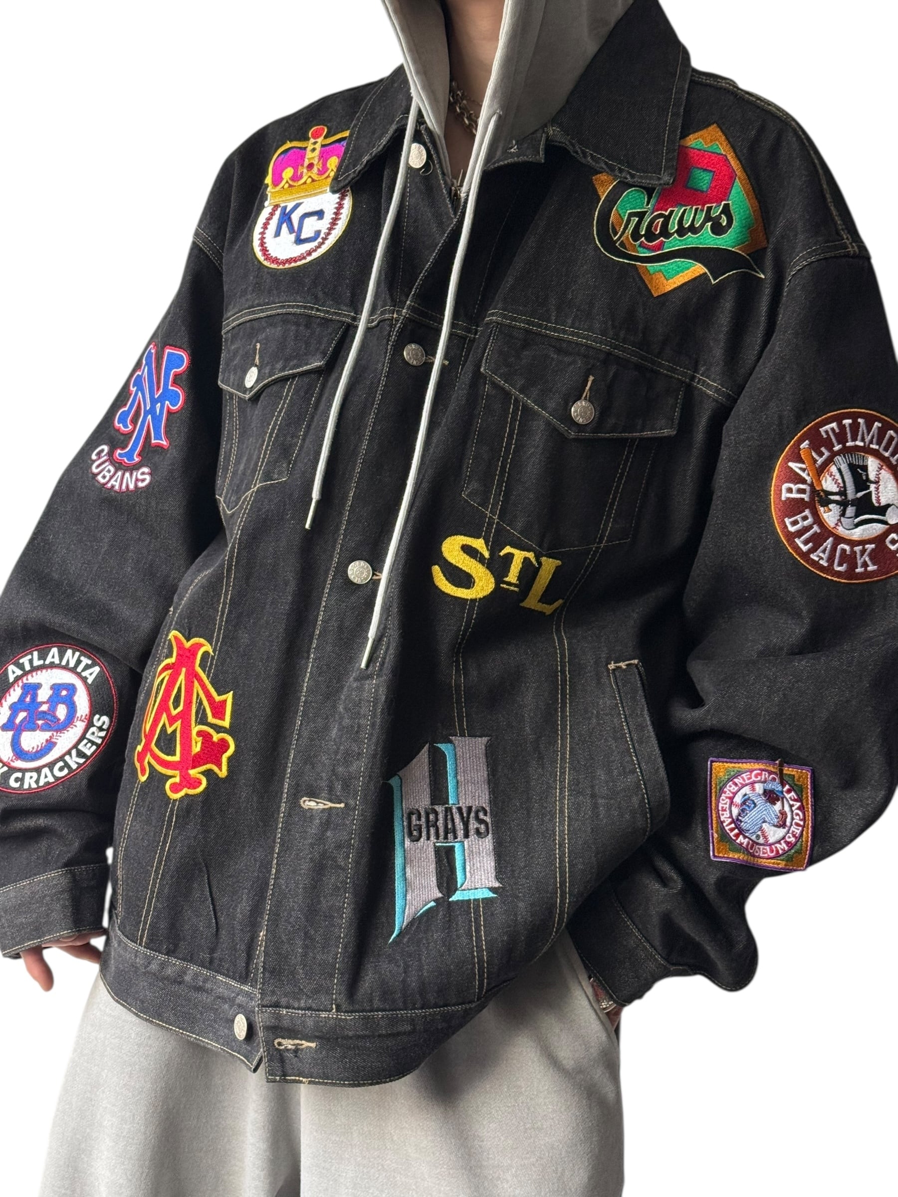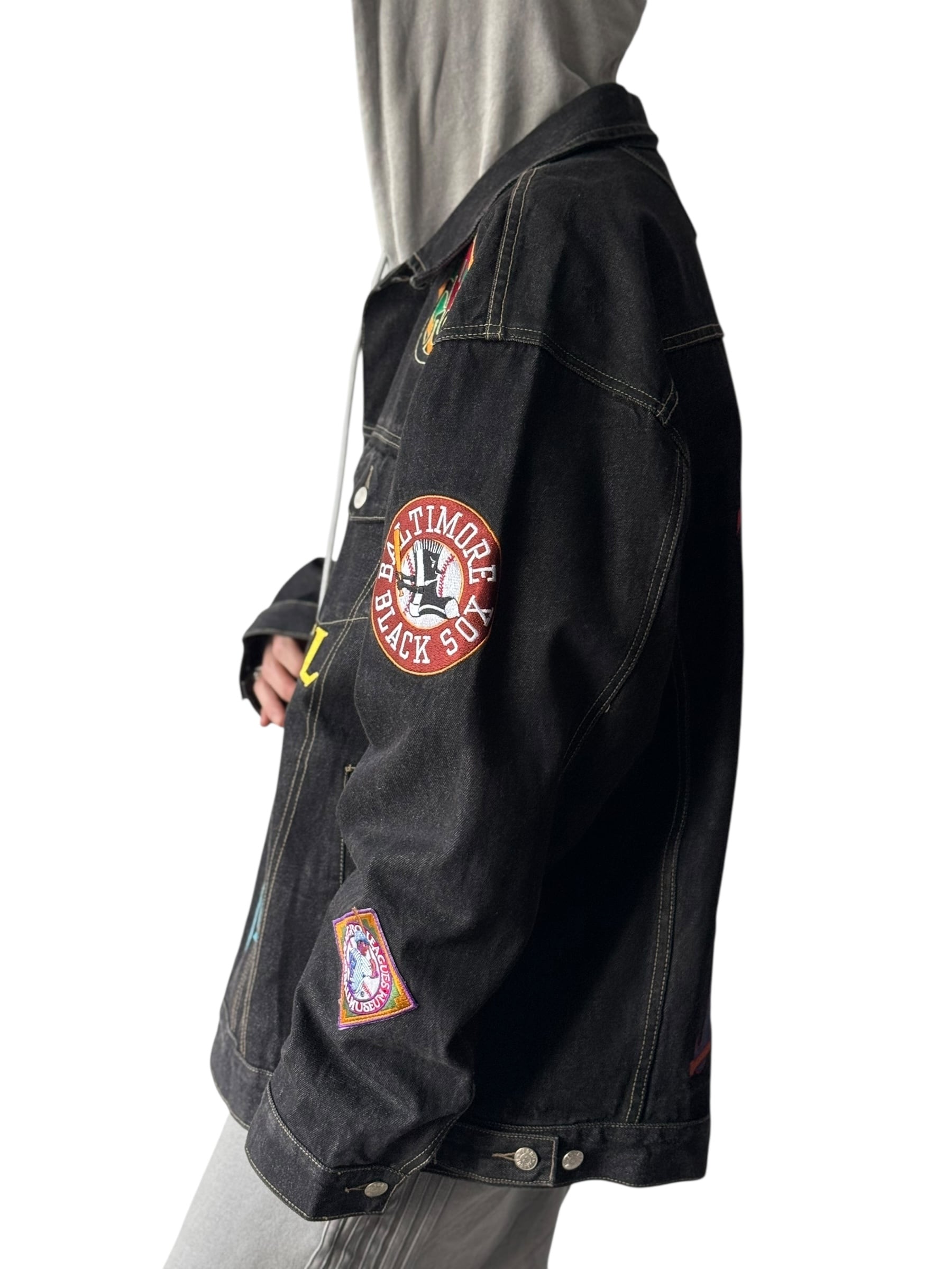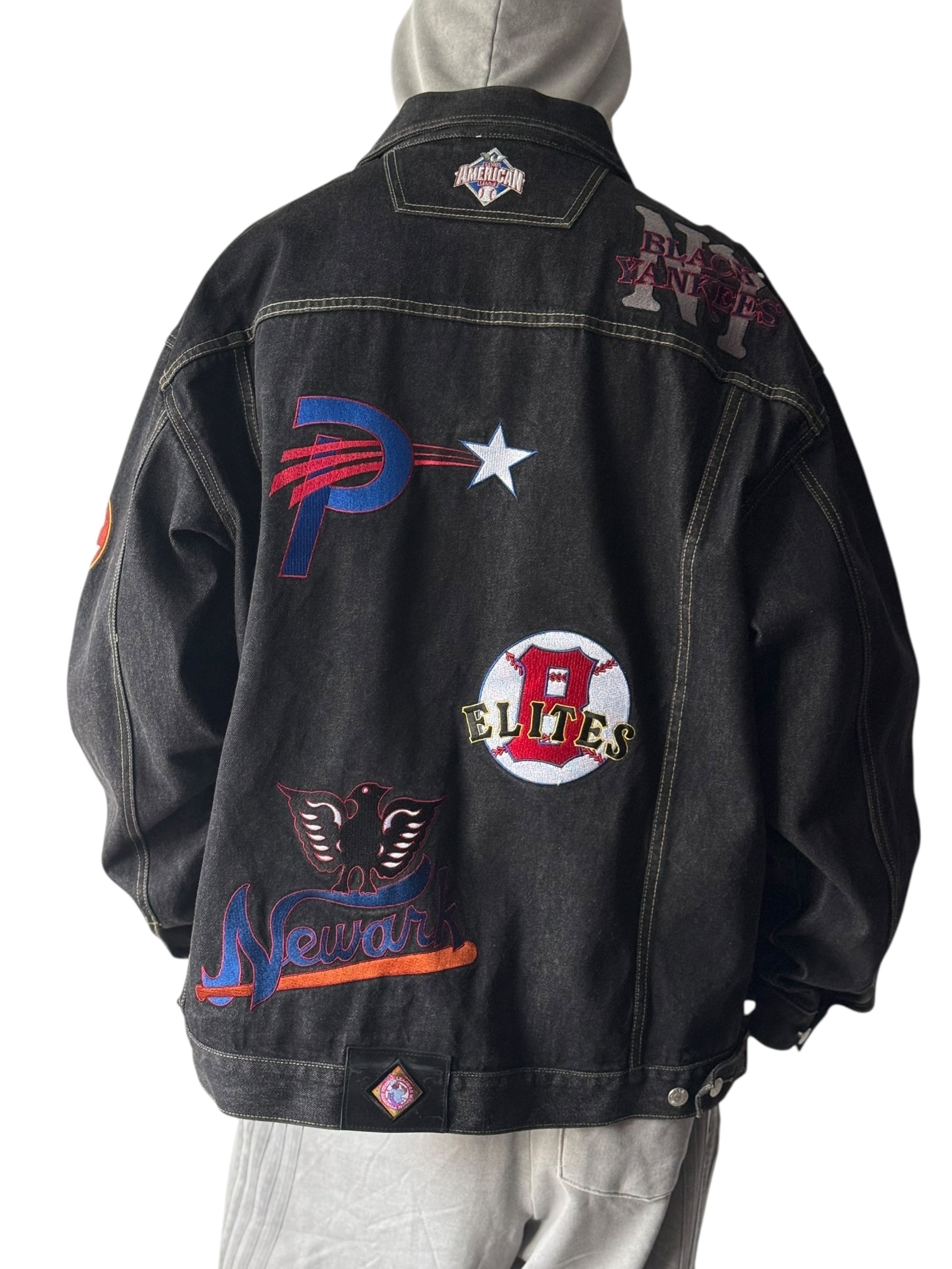 ♾Negro League♾ "Negro League" over sized denim tracker jacket sizeXXXL