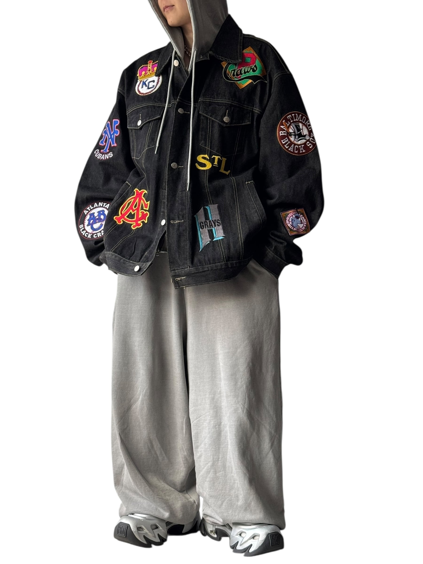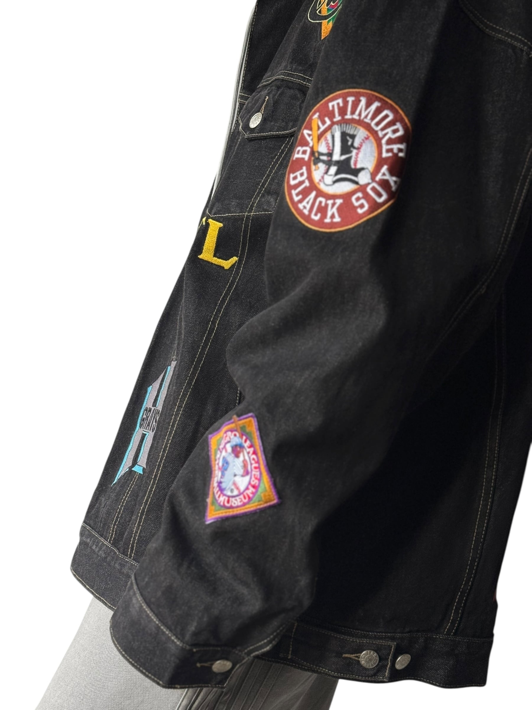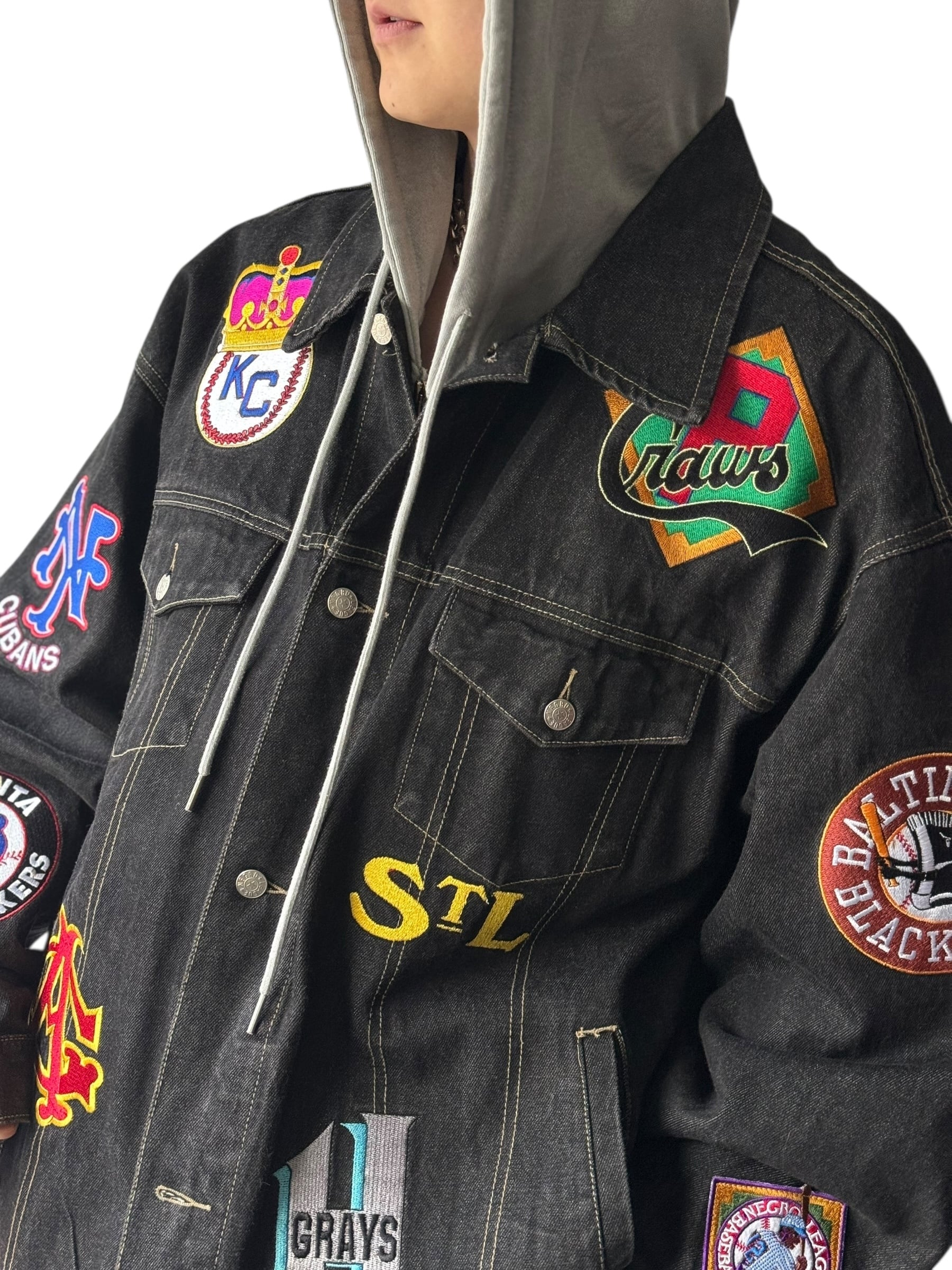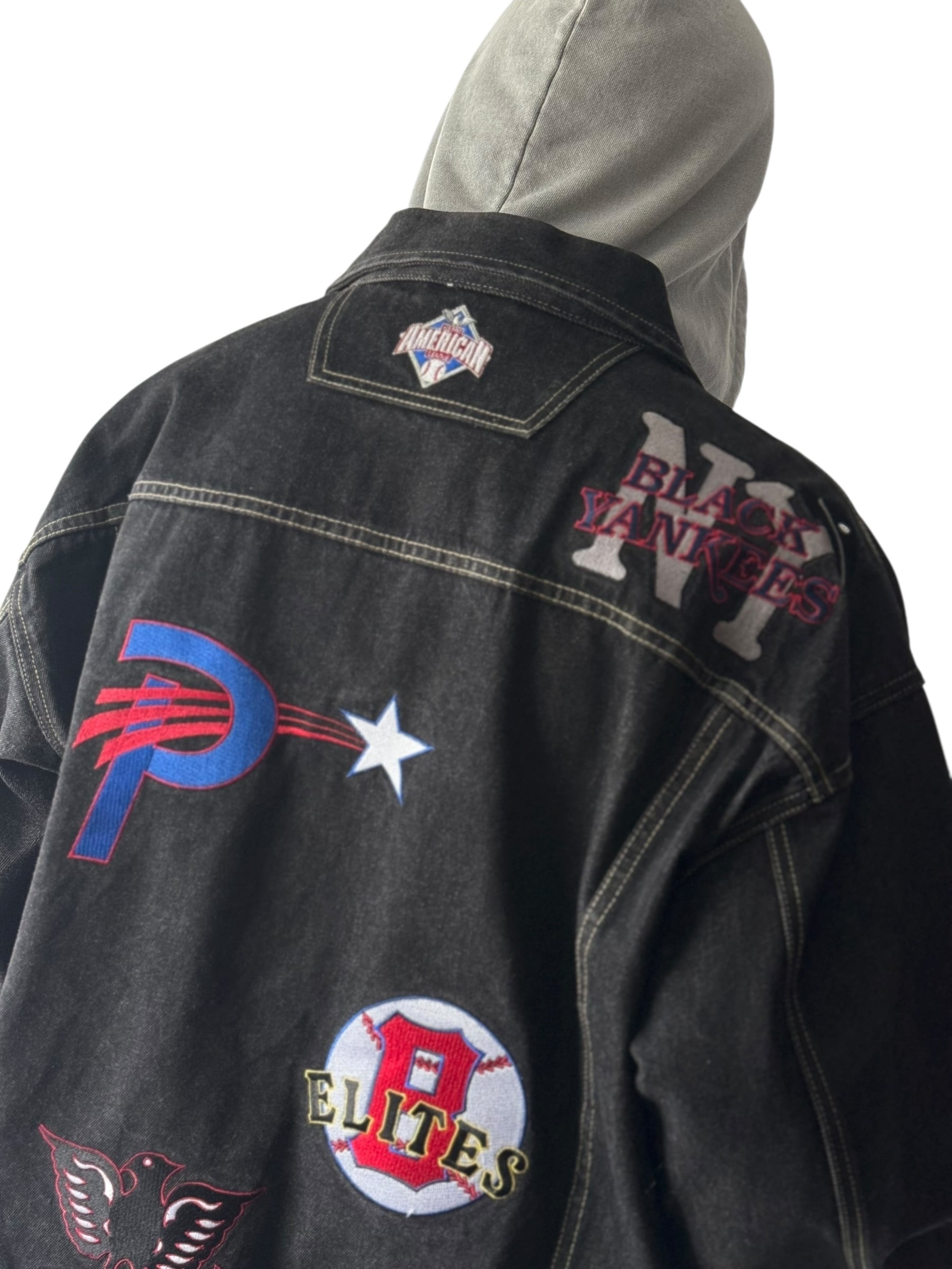 ♾Negro League♾ "Negro League" over sized denim tracker jacket sizeXXXL