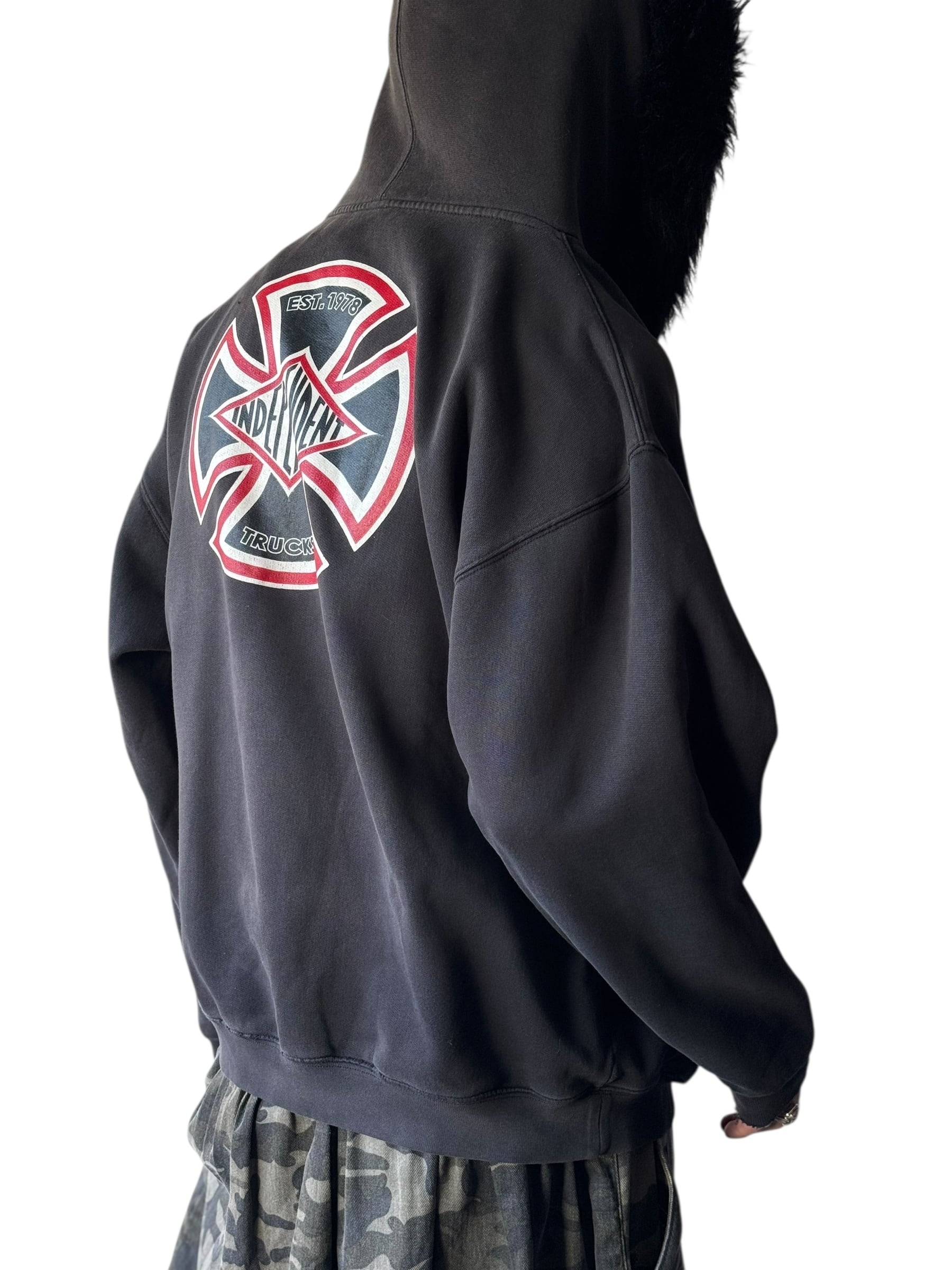 ♾90’s INDEPENDENT♾ iron cross design zip hoodie size L