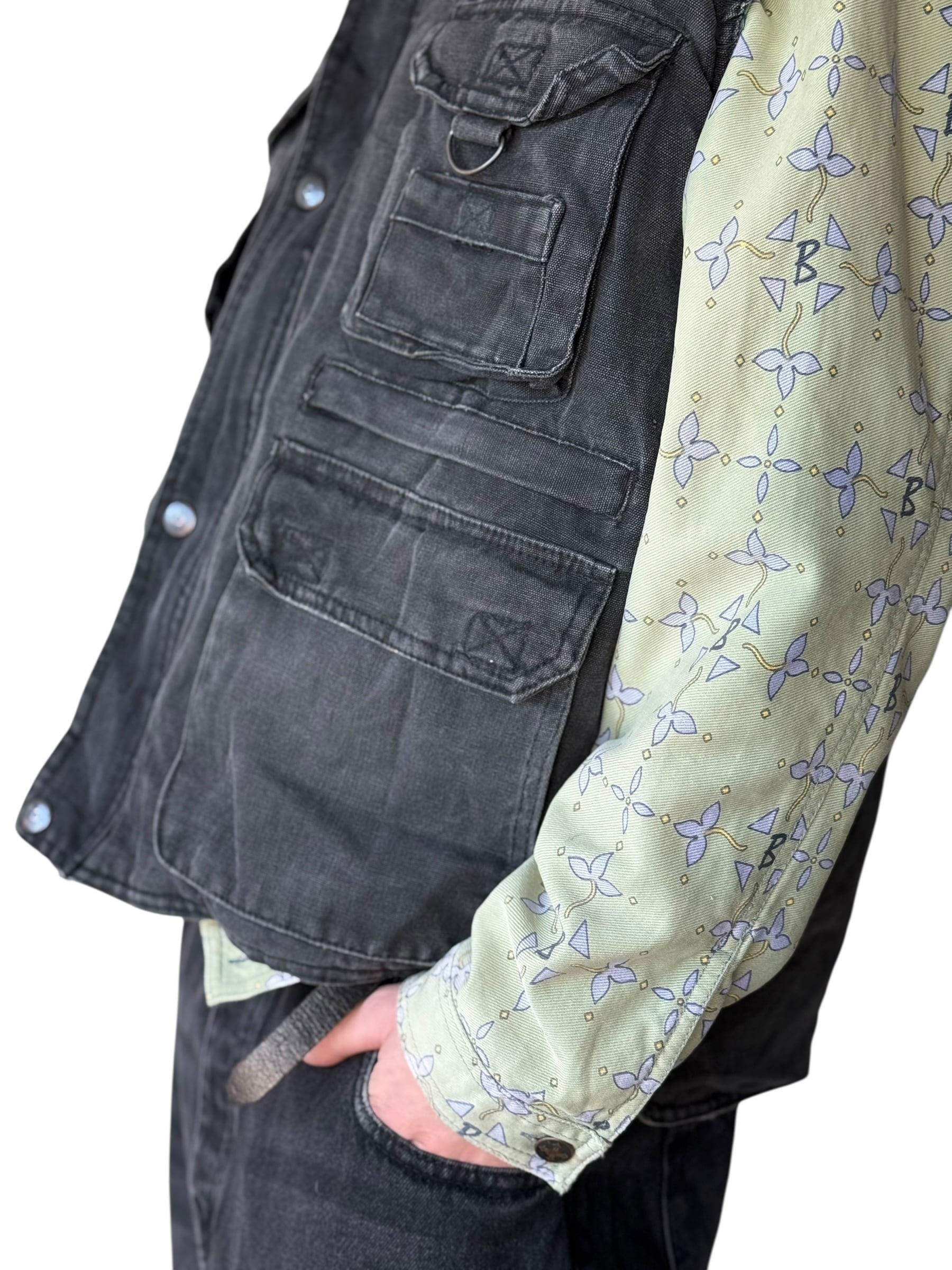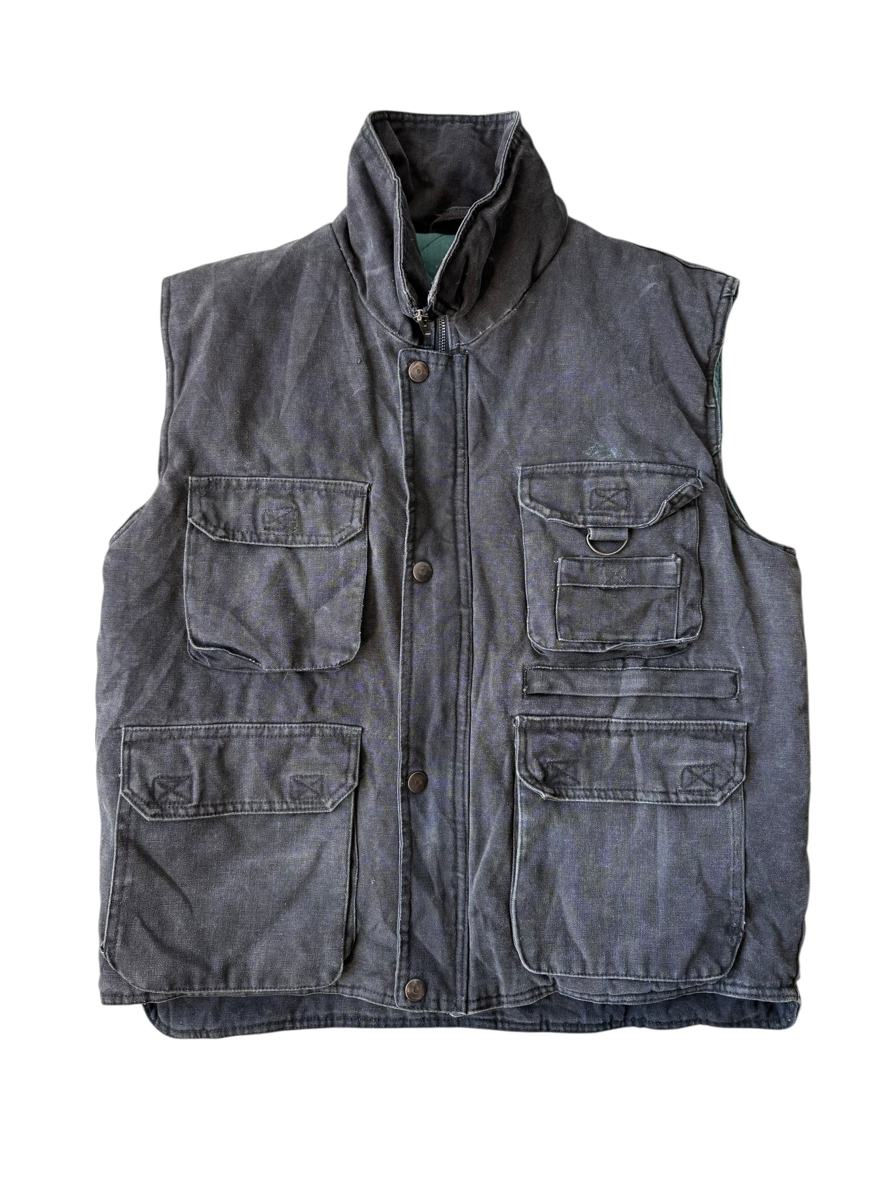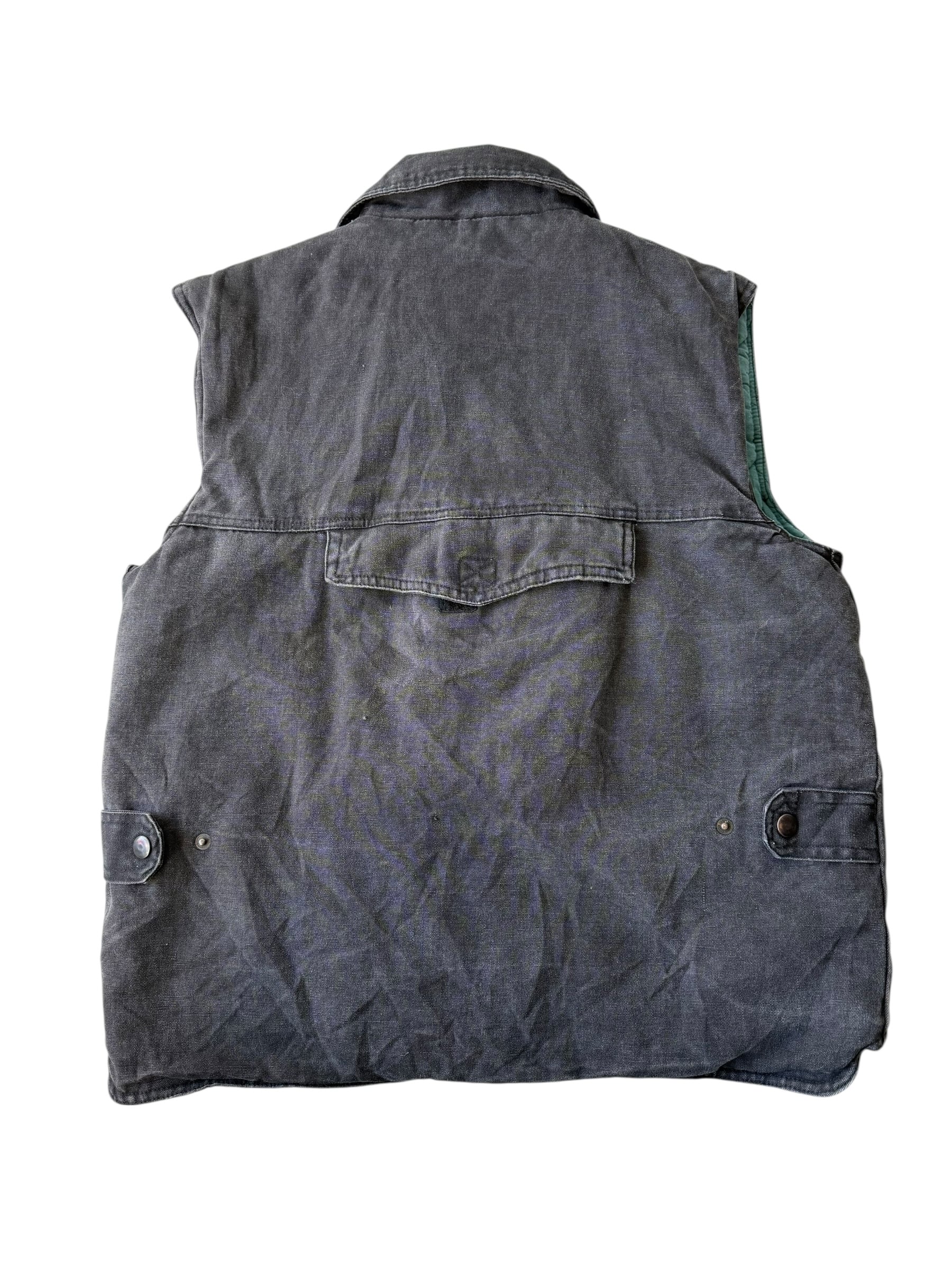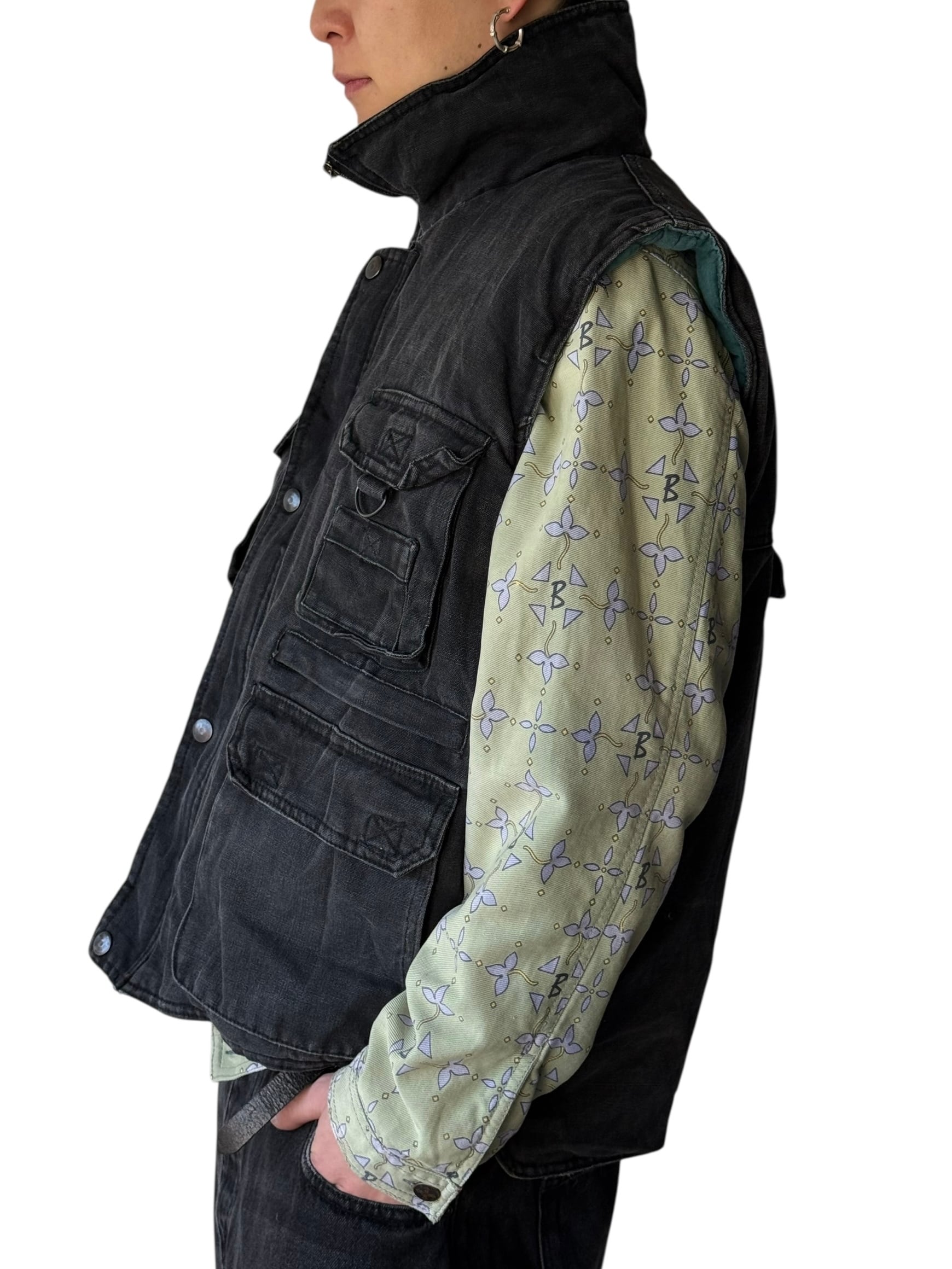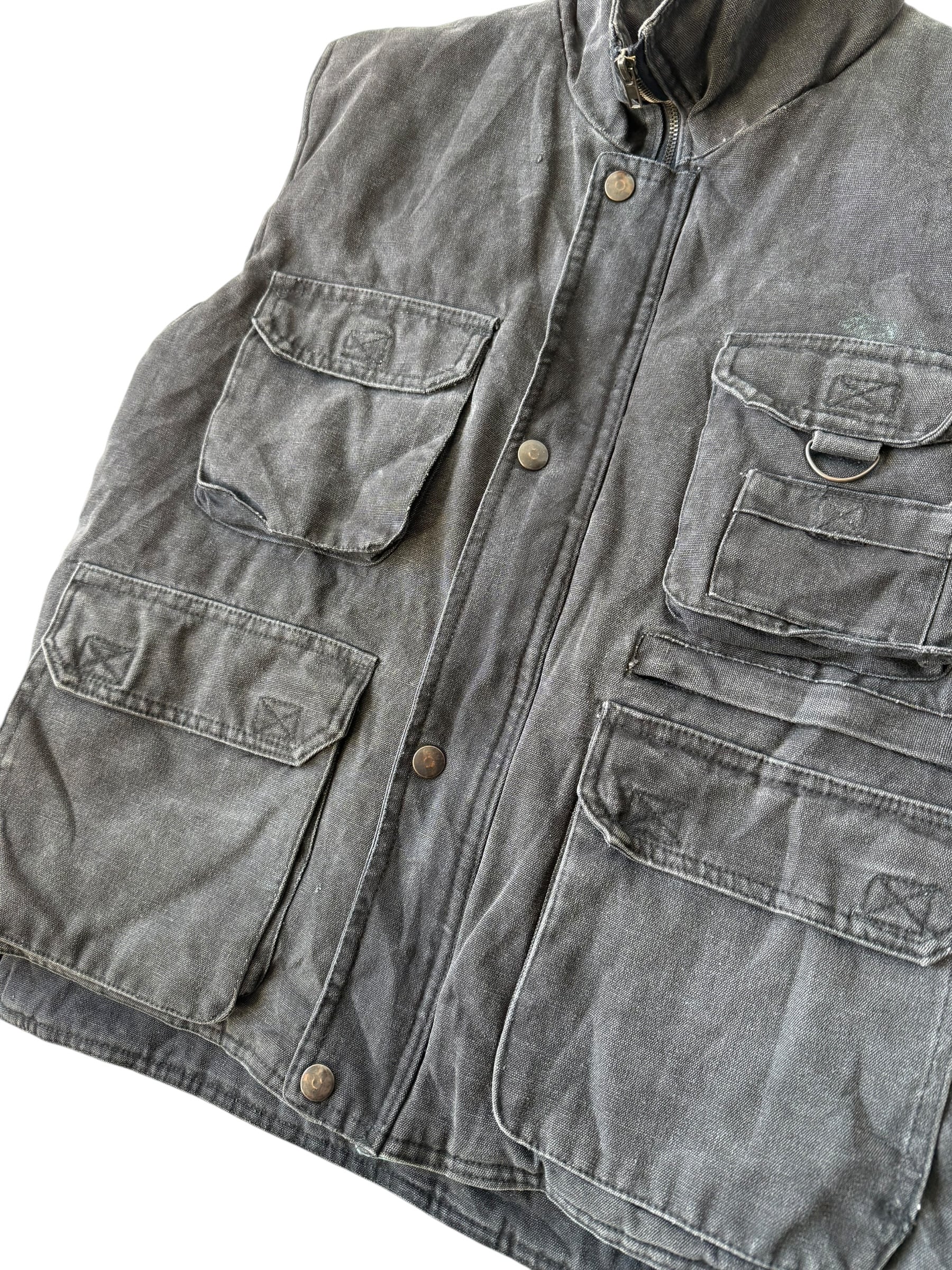 Multi-pocket black denim vest