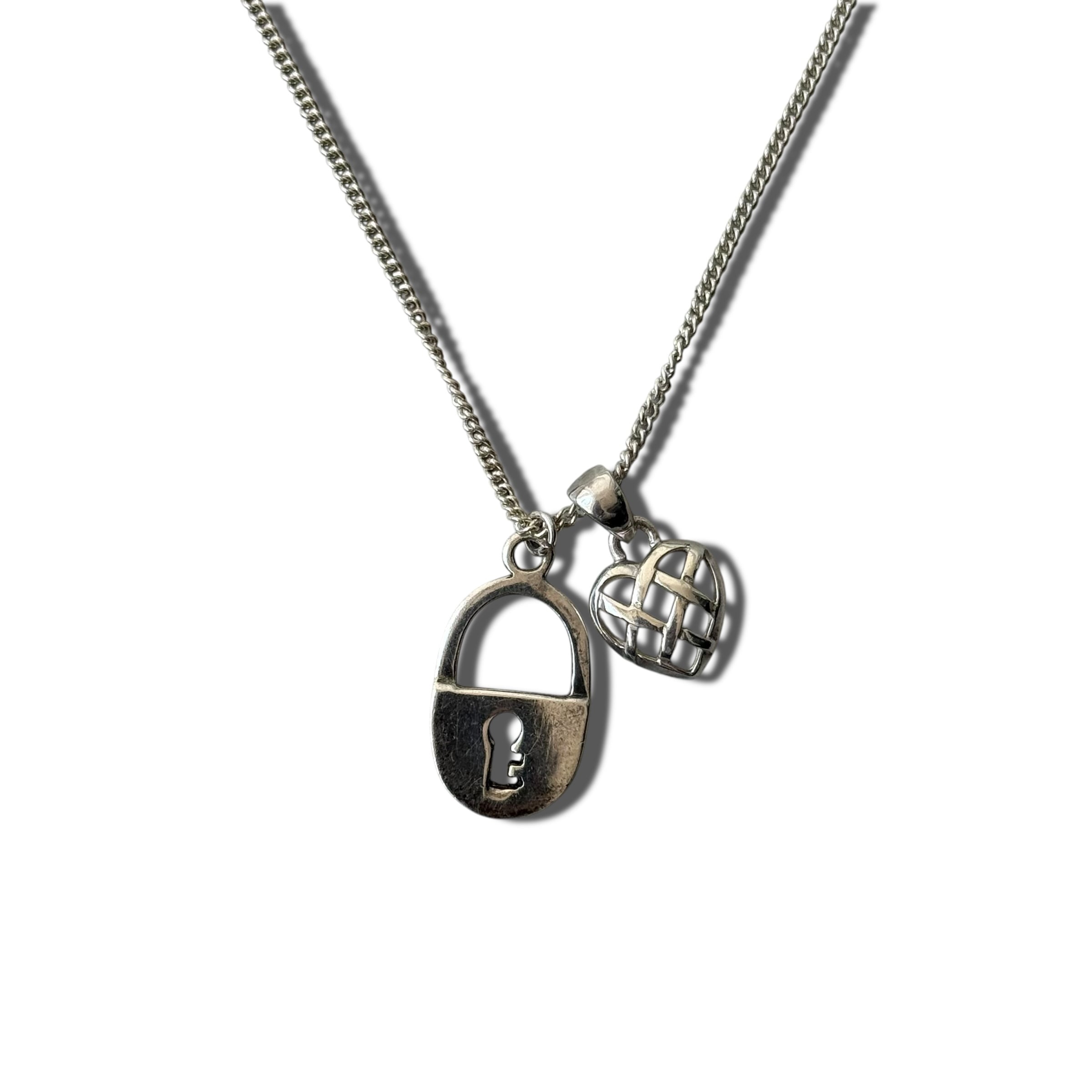 人気のハートと可愛い可愛い南京錠がおしゃれに煌めくデザインネックレス✨️