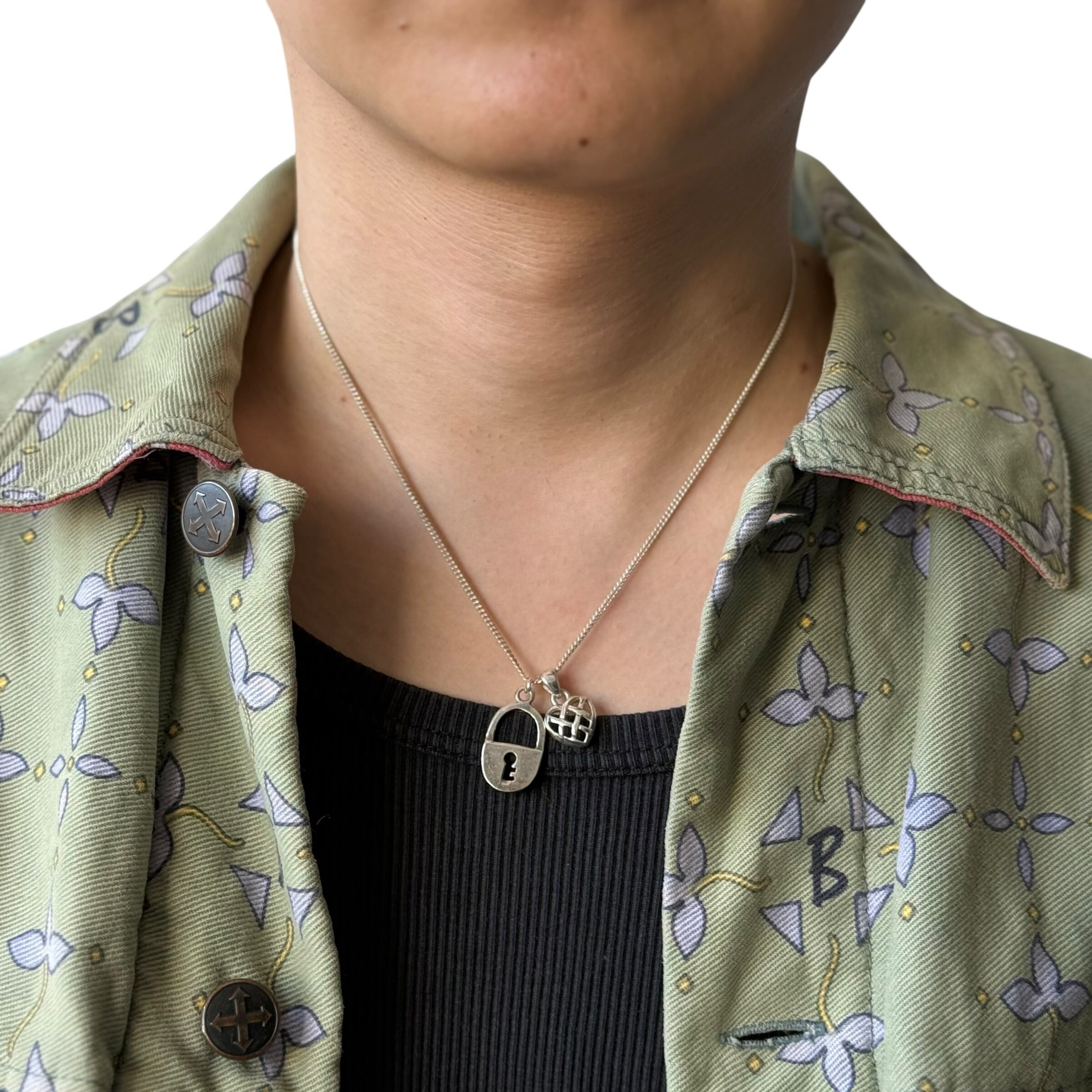 【Sterling silver】 sv925 heart & padlock double top necklace