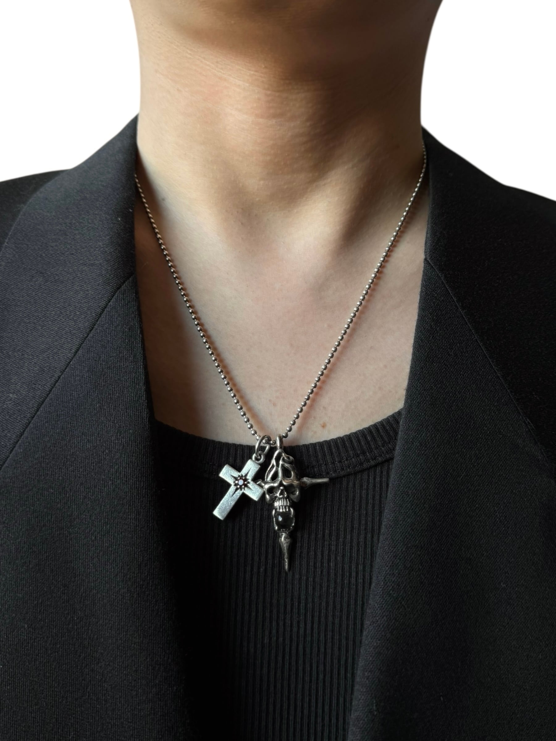 スカルクロスとジルゴニアがついた程よいサイズ感のクロスのダブルパンチでかなり目立ってくれるのでコーディネートのアクセントに‼️✨️