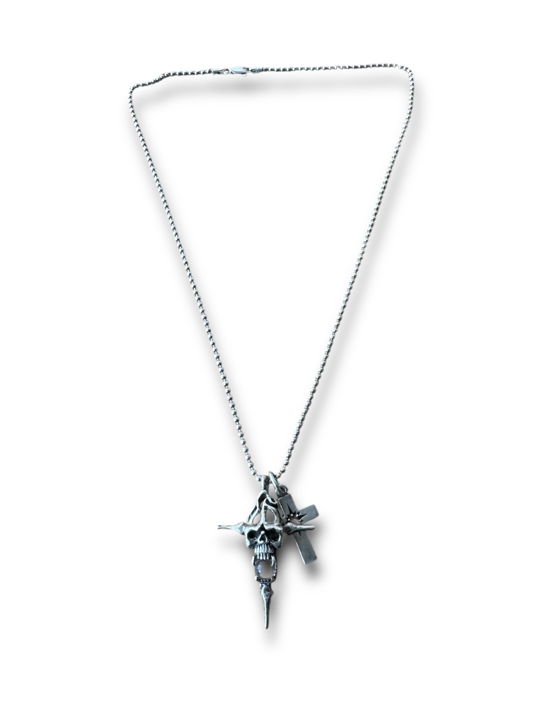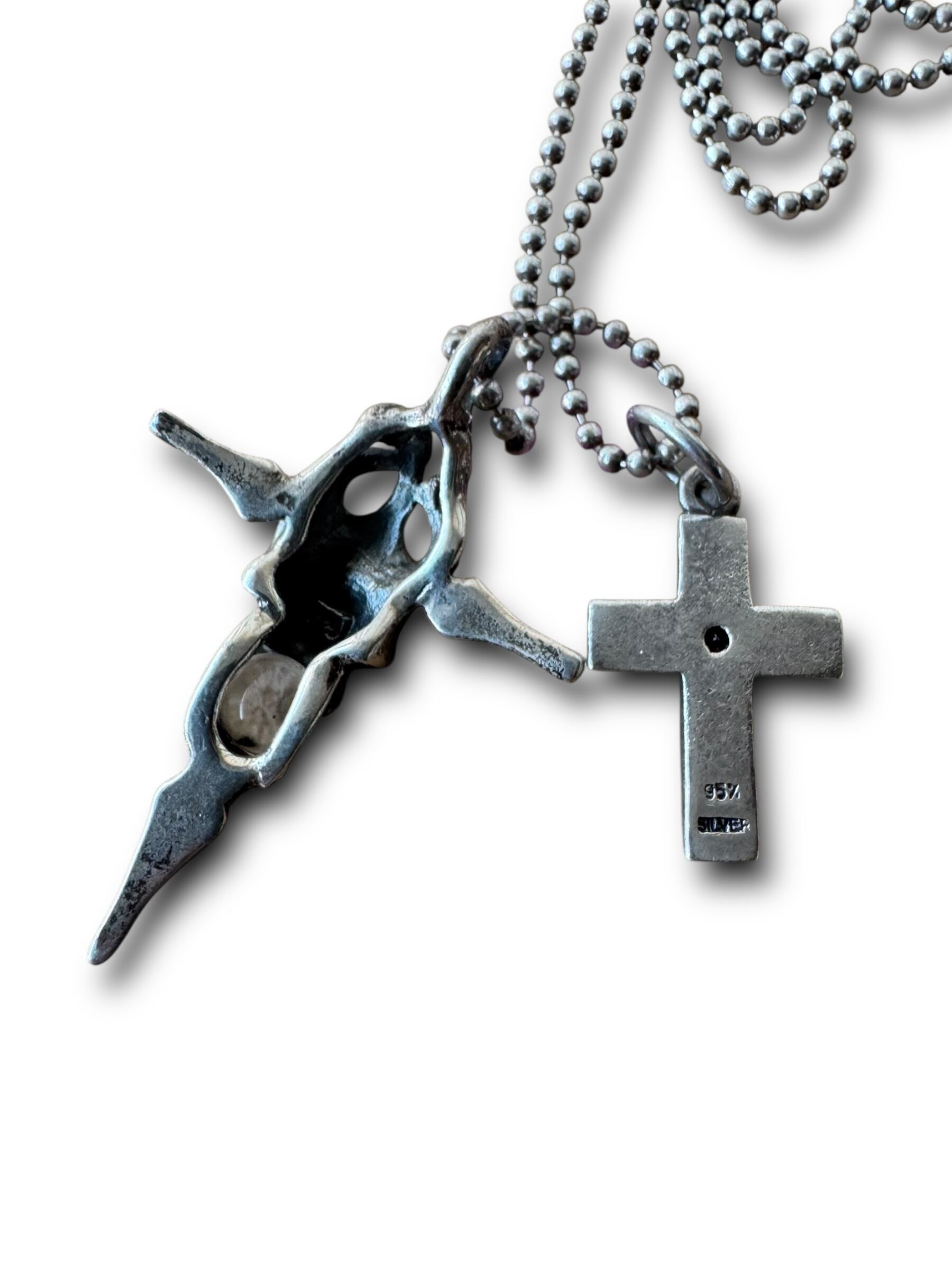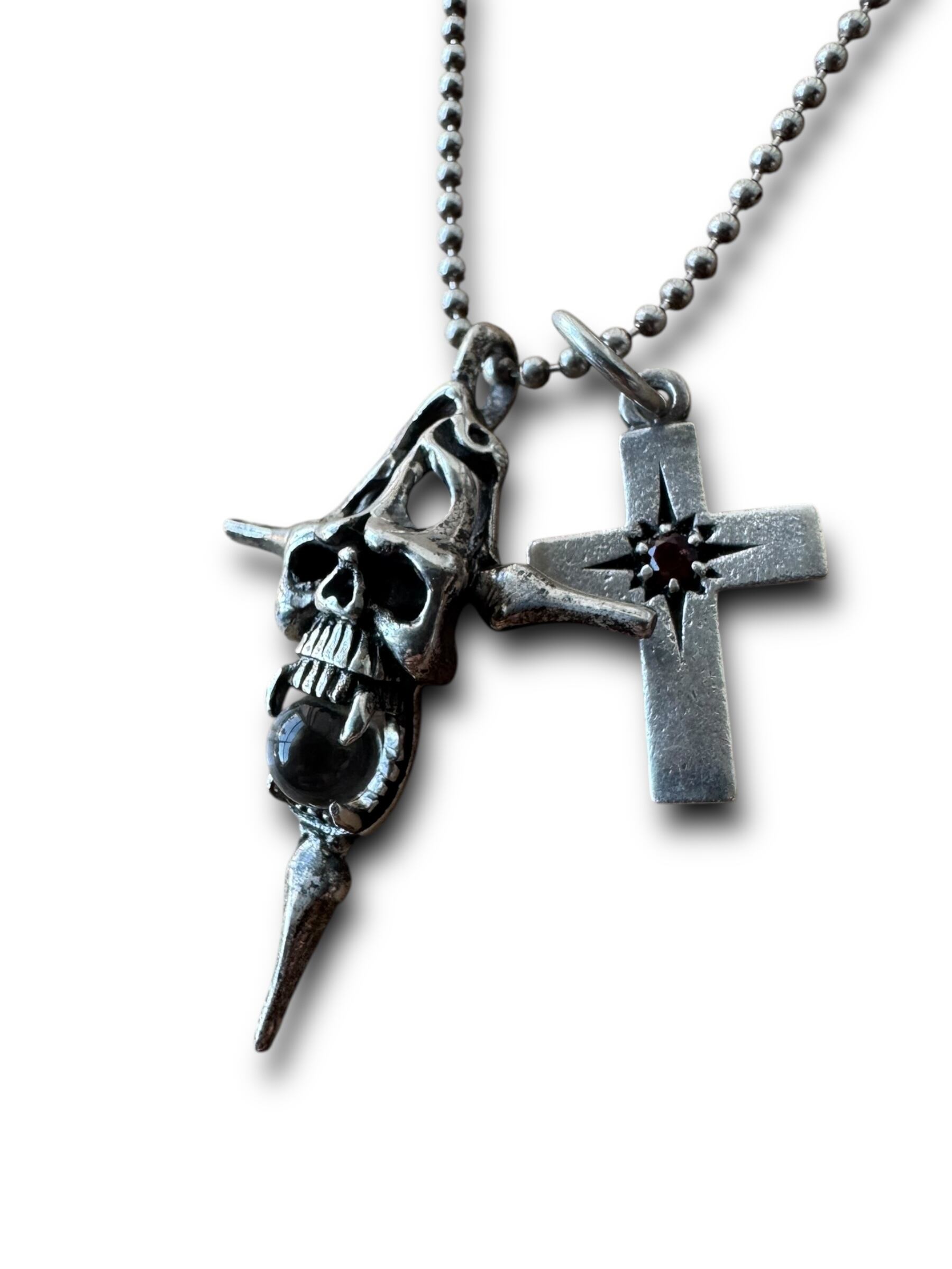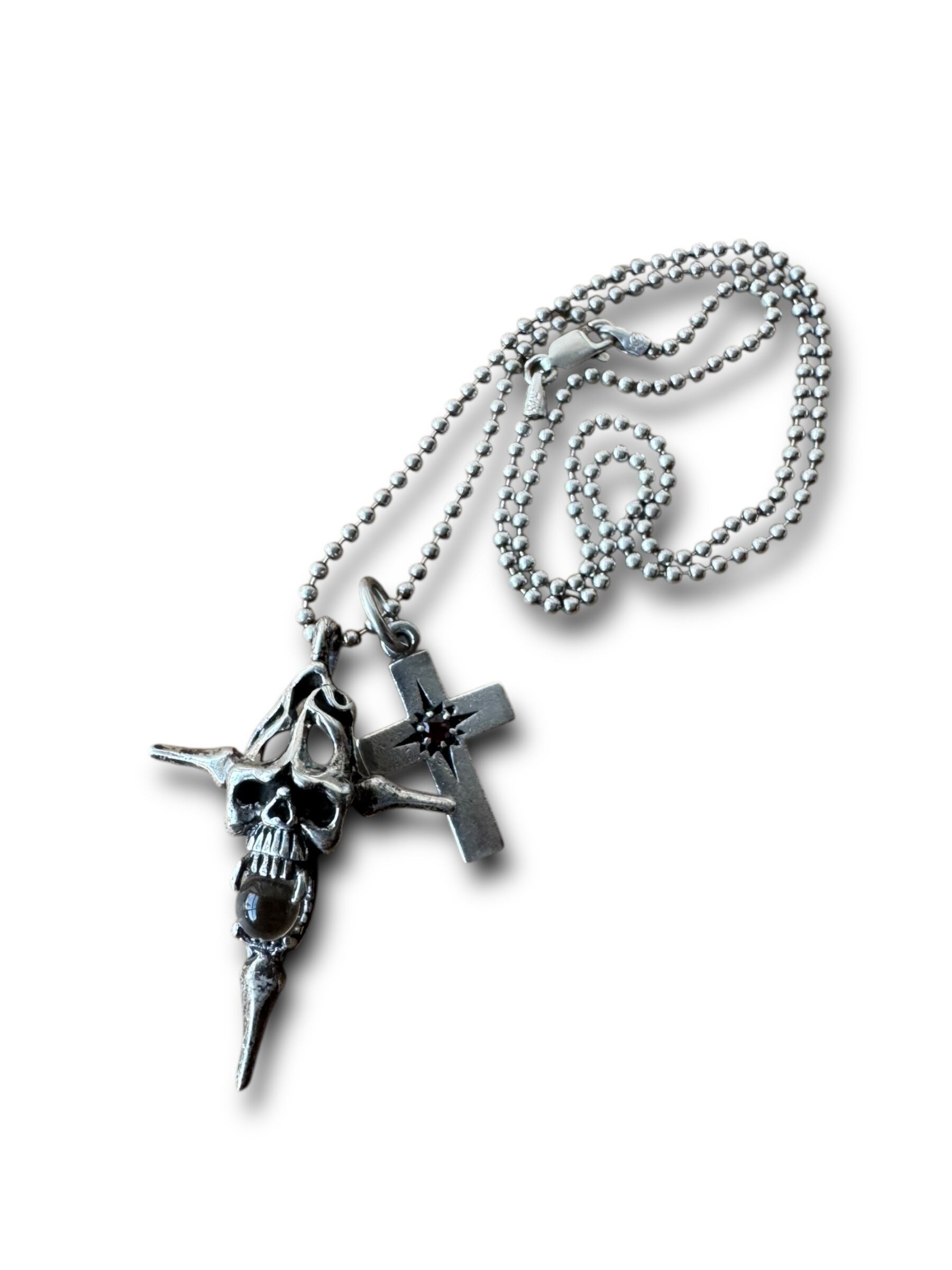 ♾vintage silver jewelry♾ skull cross motif design double top necklace sv925