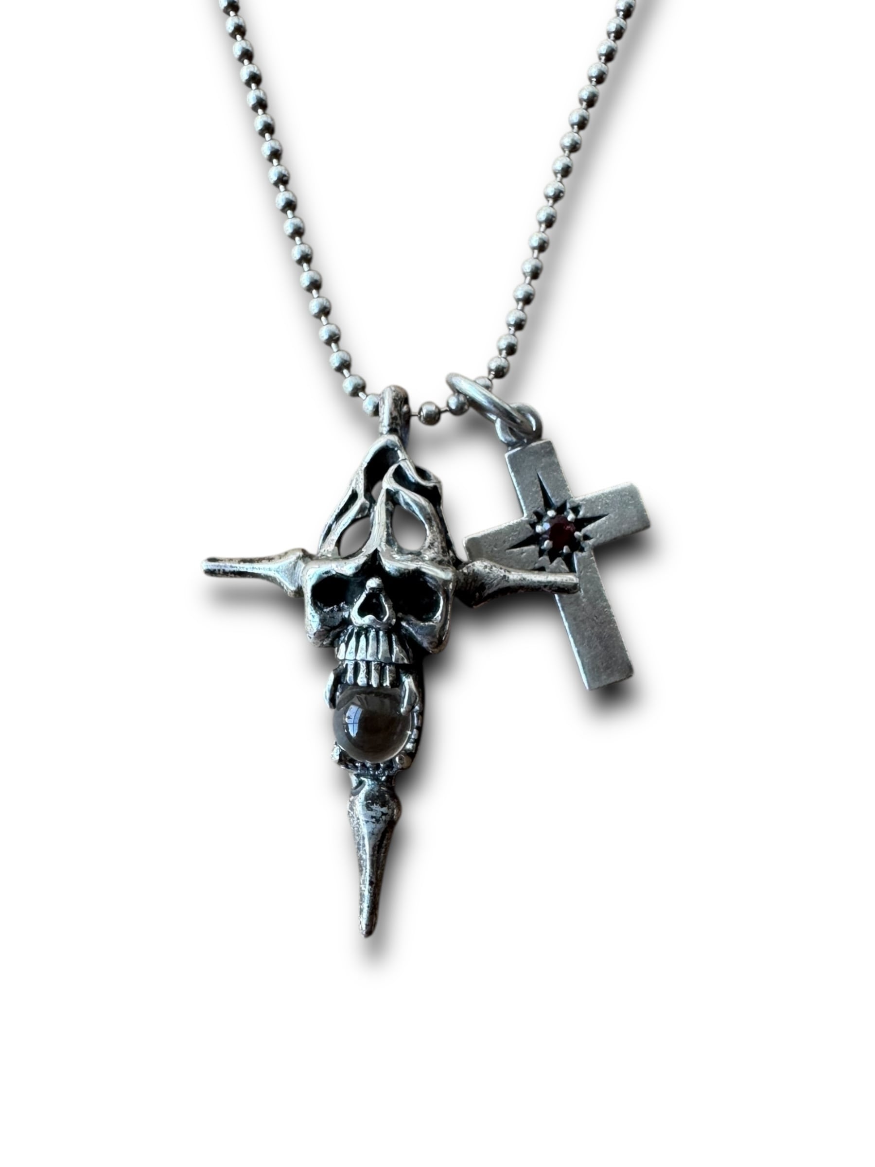 スカルをメインとして描かれたクロスネックレスの入荷‼️