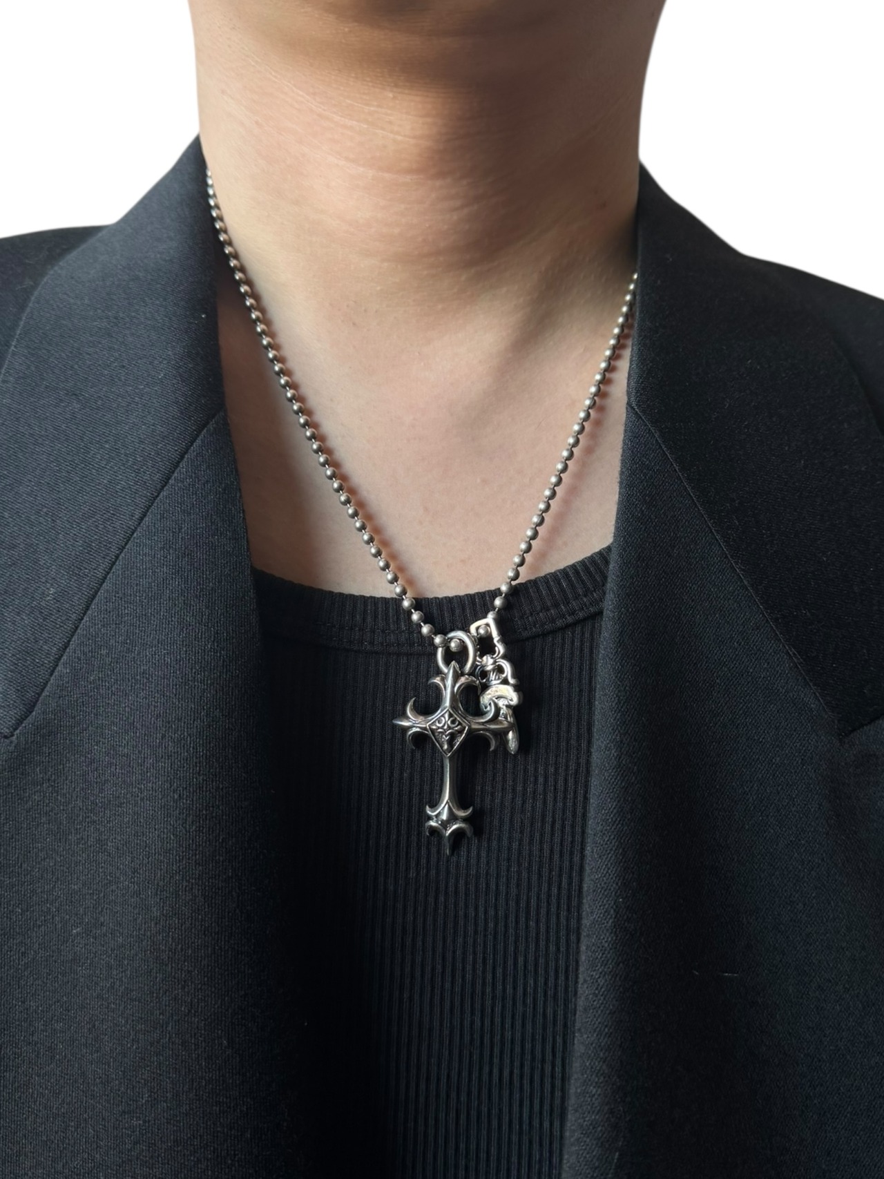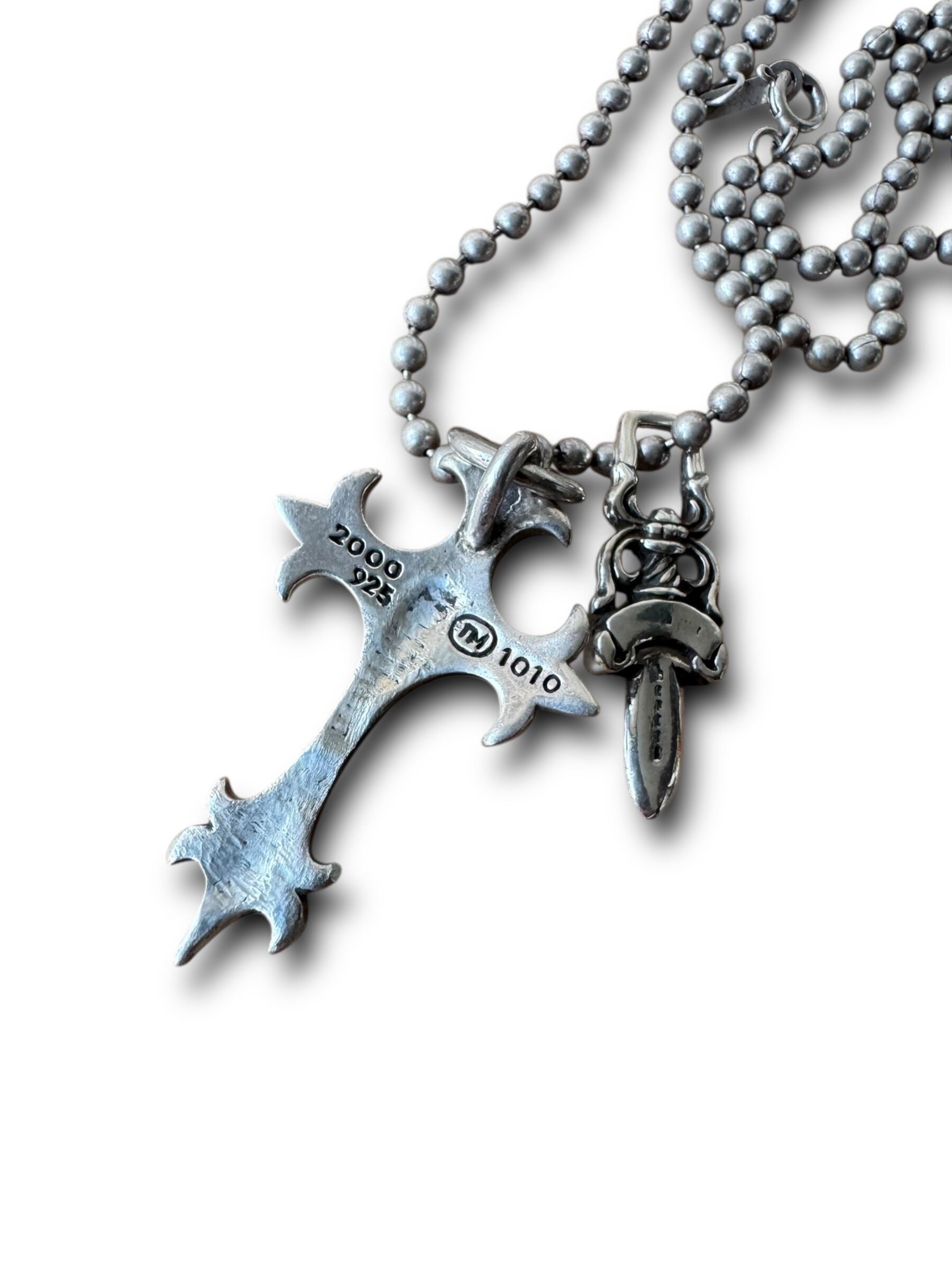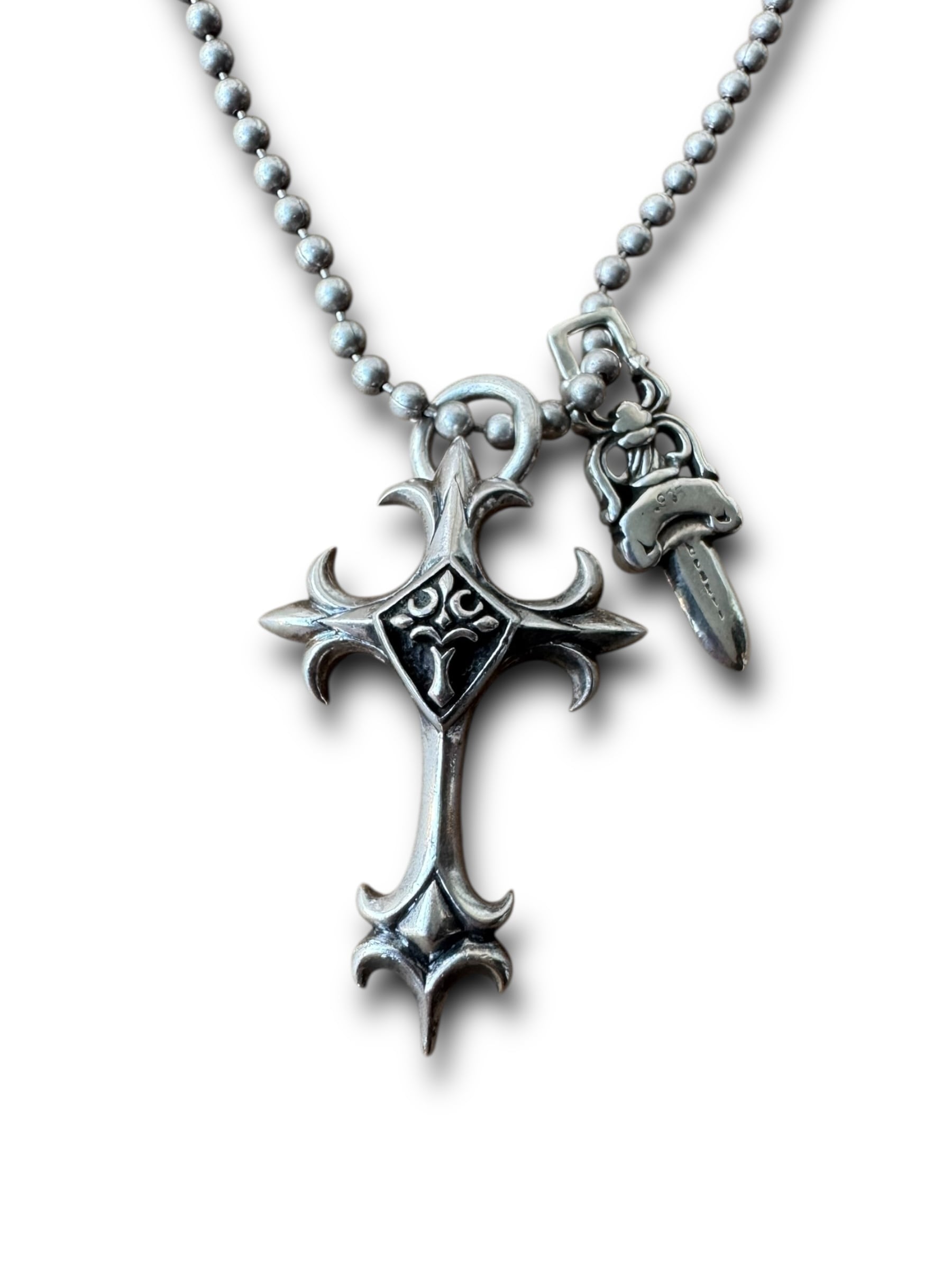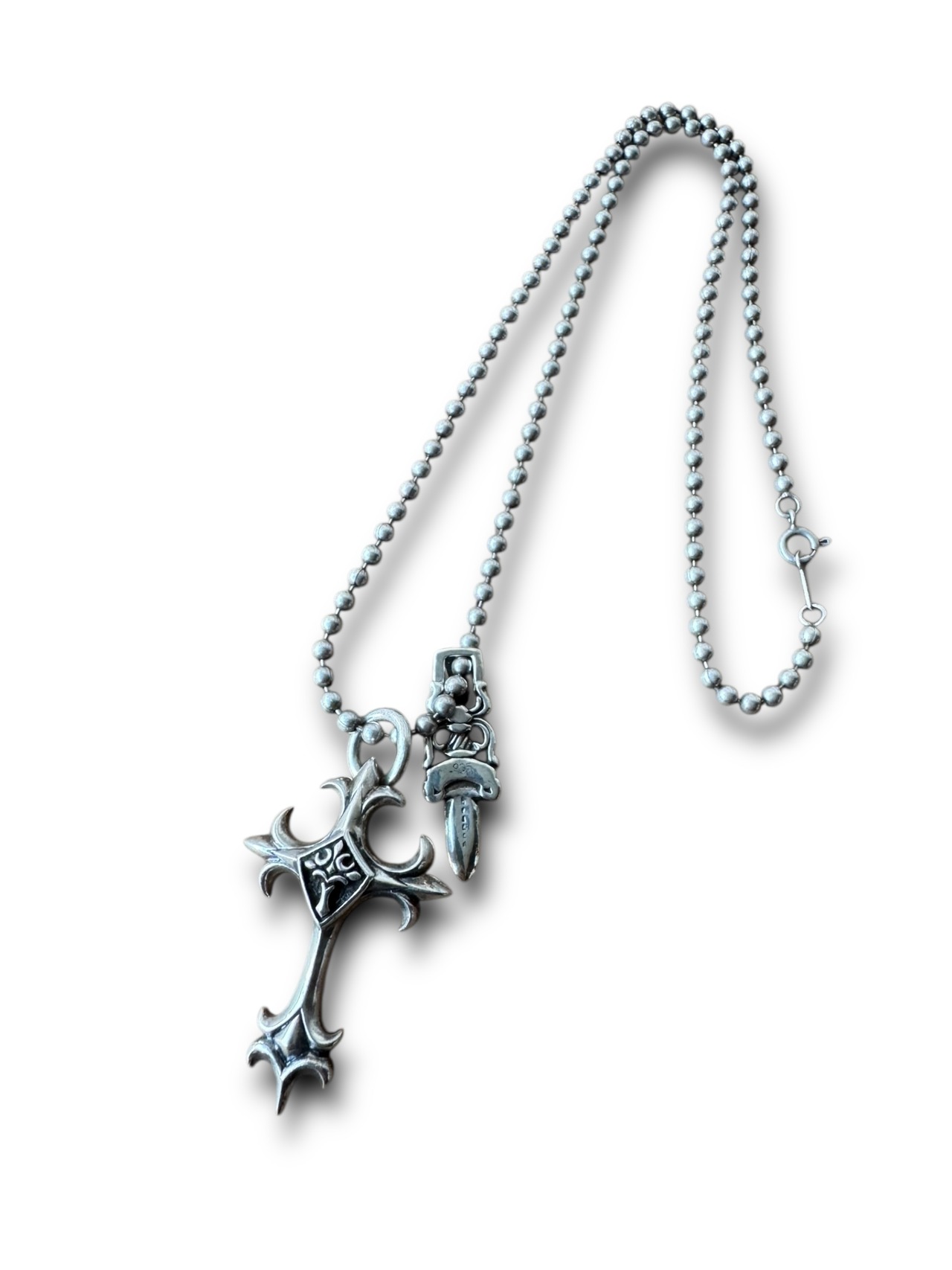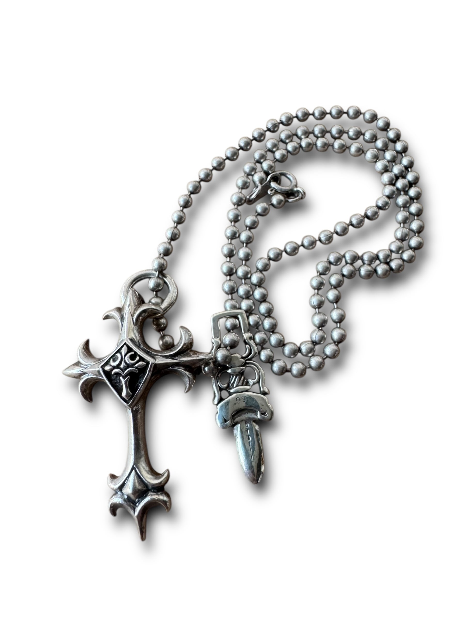 ♾ Vintage silver jewelry♾ cross motif w top design necklace sv925