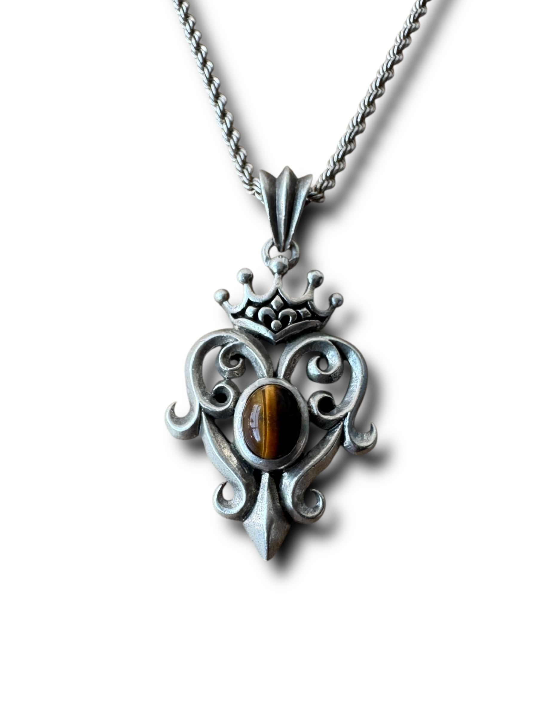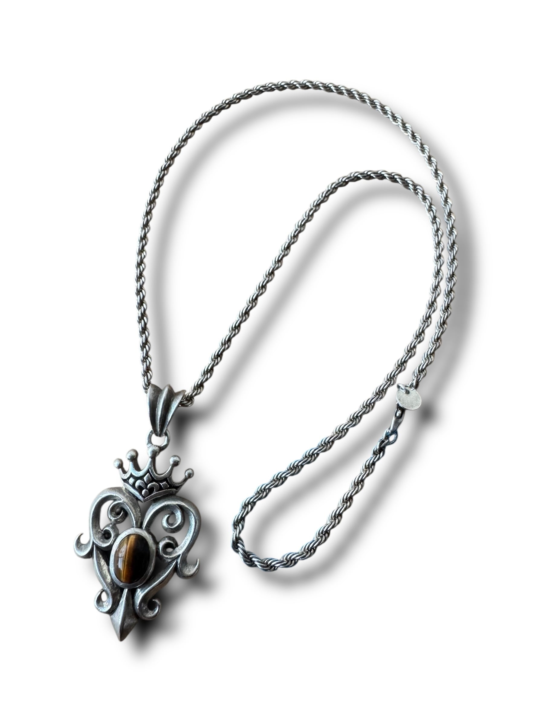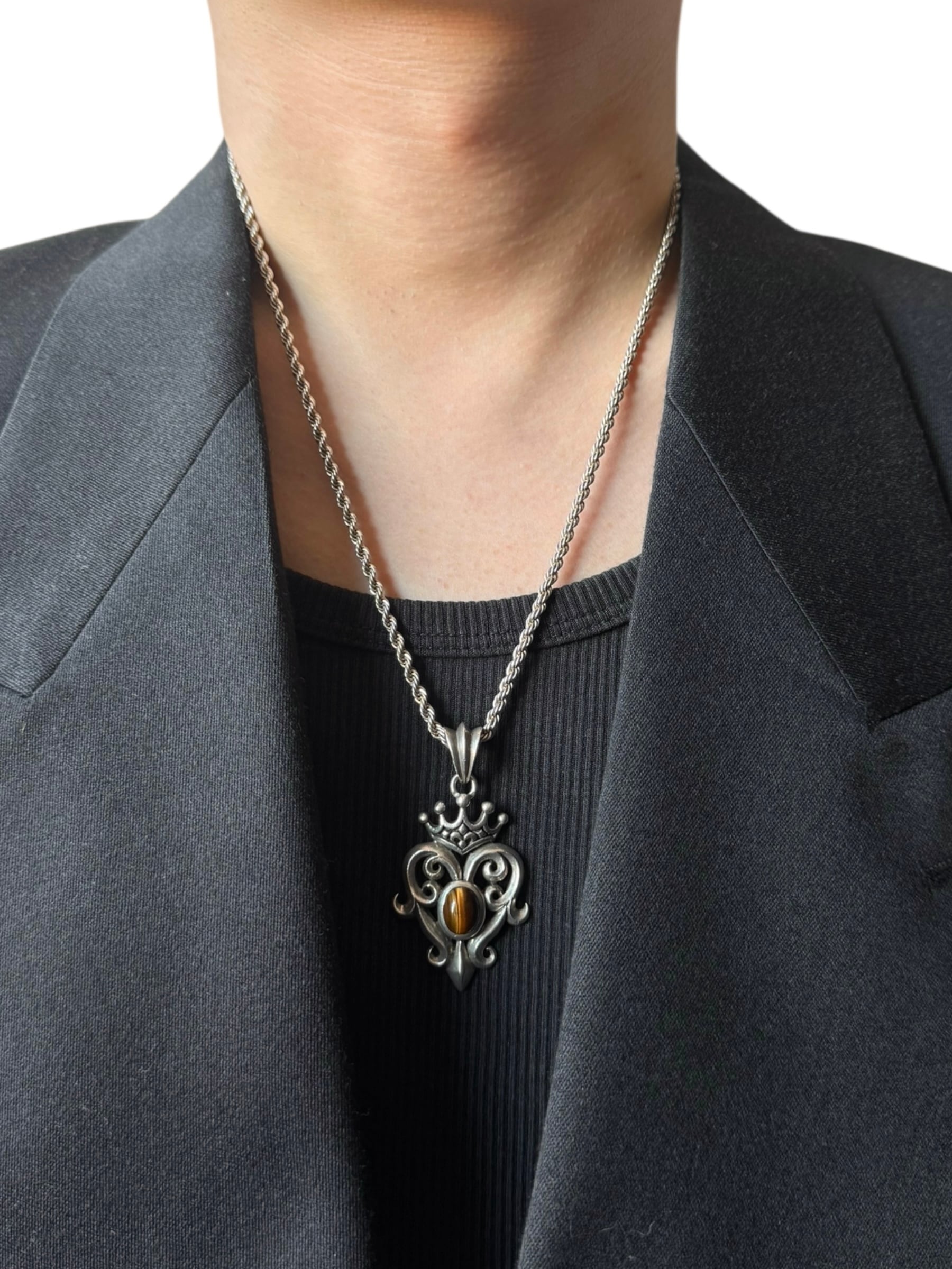 大きなエンブレムクラウンハートトップの神モチーフが存在感抜群なデザインシルバーネックレス‼️