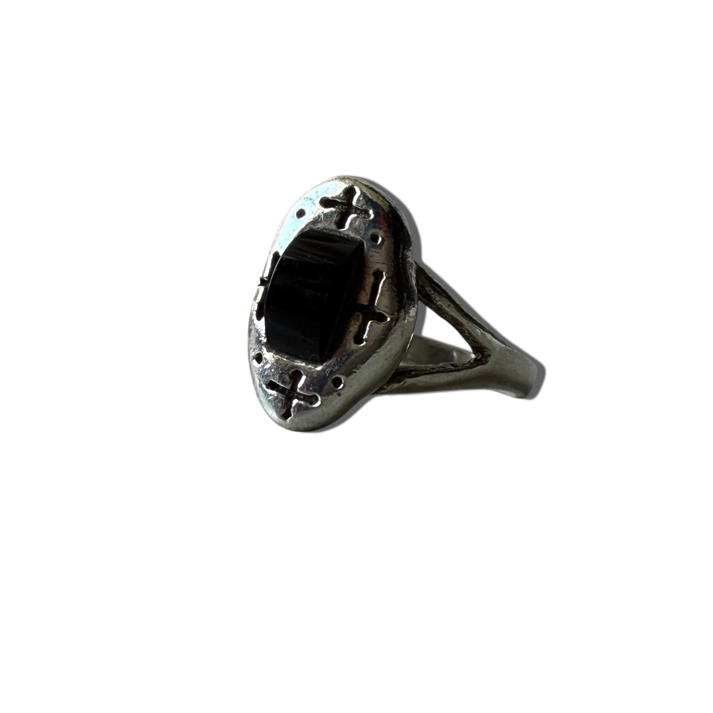 【vintage silver jewelry】 sv925 enamel Set Cross carving ring / 11号