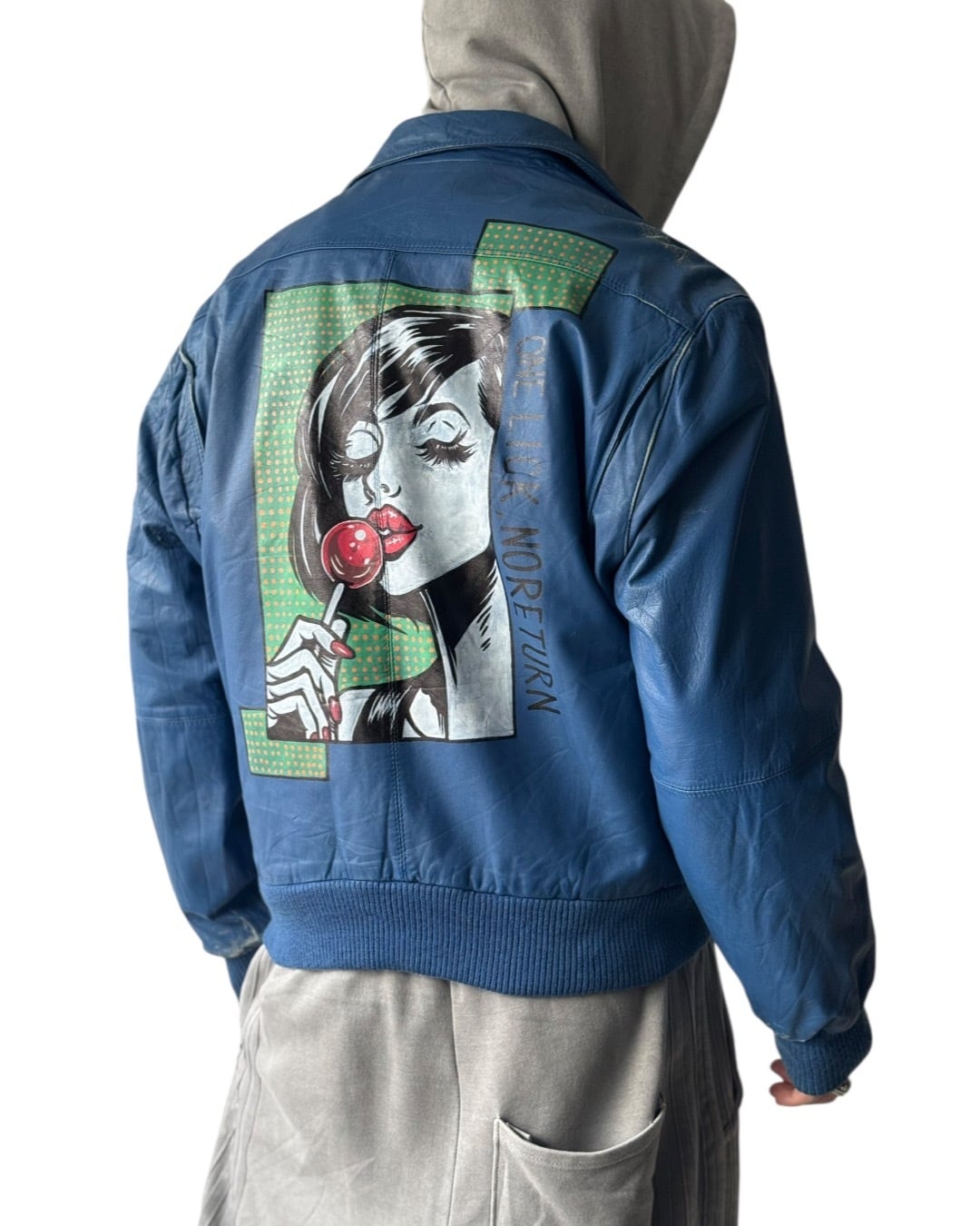 ♾MEMBERS ONLY♾ hand painted design leather jacket size42