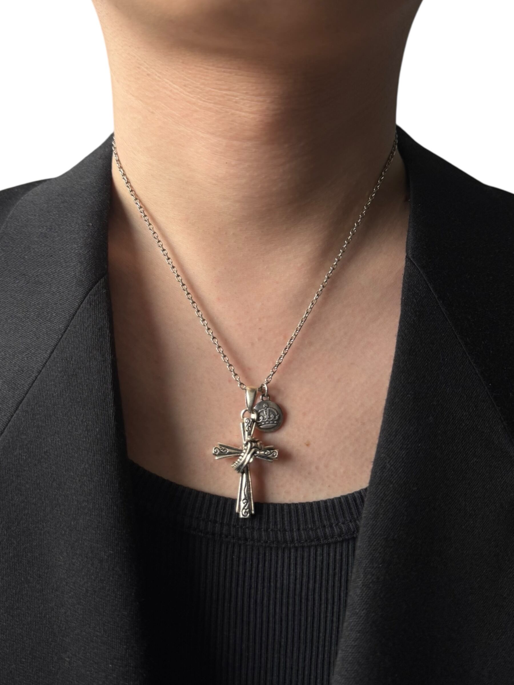 クロスとクラウンのコンビネーションが抜群に映えるダブルトップデザインが豪華なペンダントトップネックレス✨️