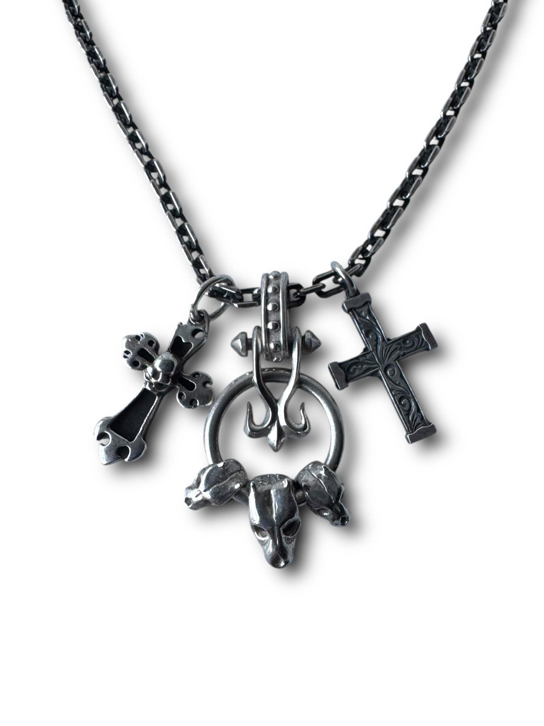 メインのトップには犬の骸骨のような骨がリングに付いているトップを挟むように2つのクロスが付いているめちゃくちゃかっこいいデザイン✨️✨️