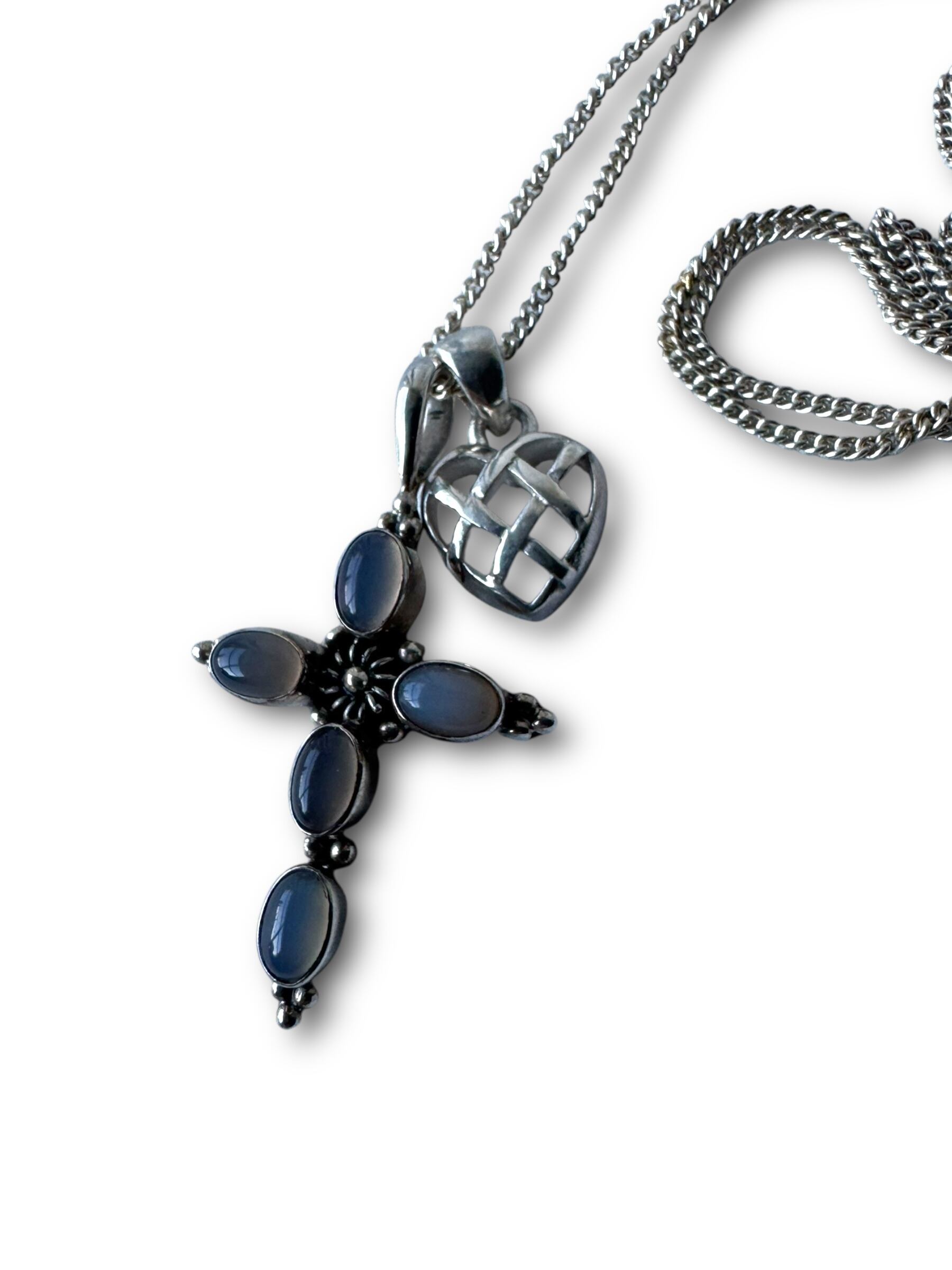 ♾vintage silver jewelry♾ w top design Heart&cross necklace sv925