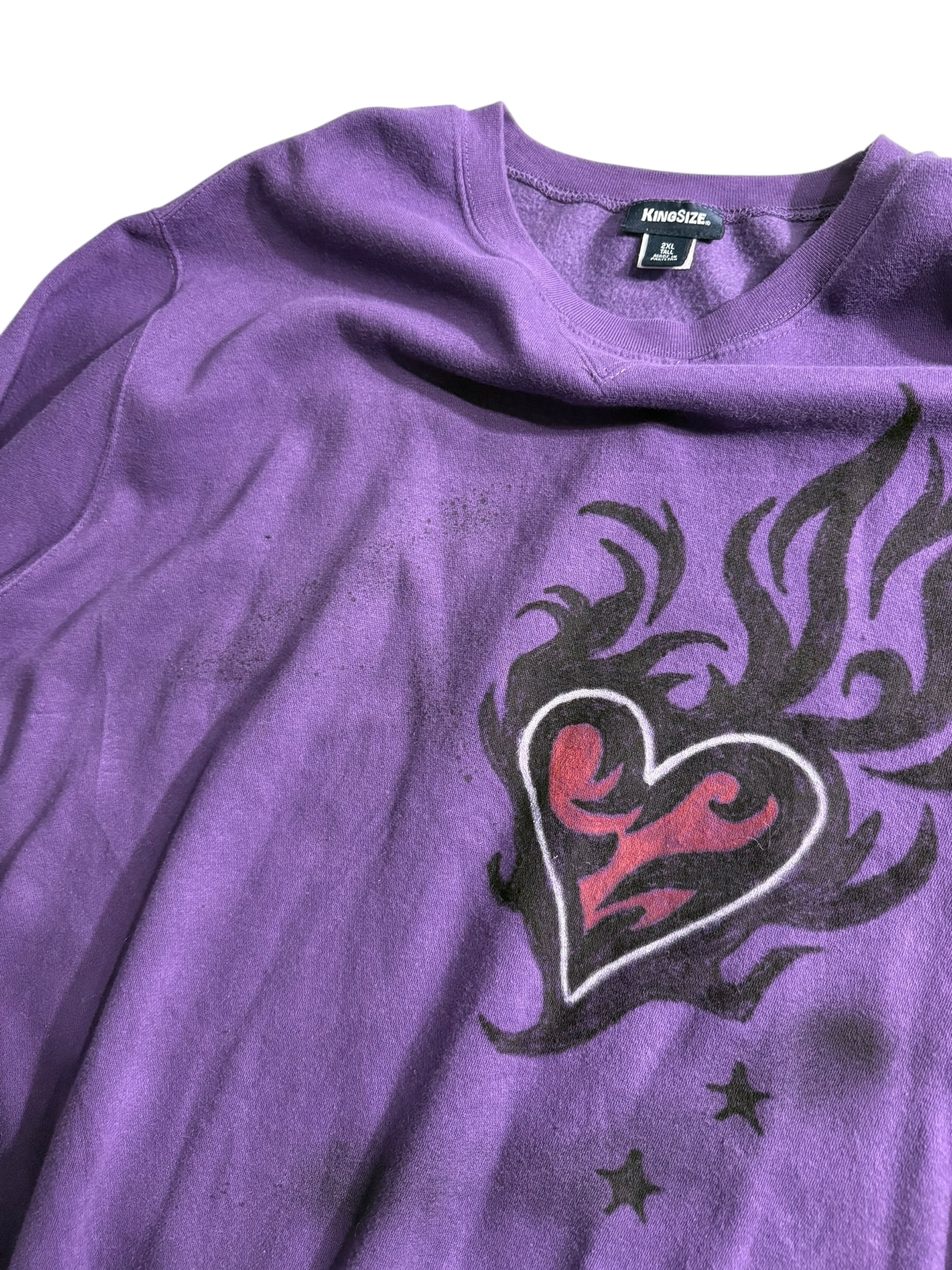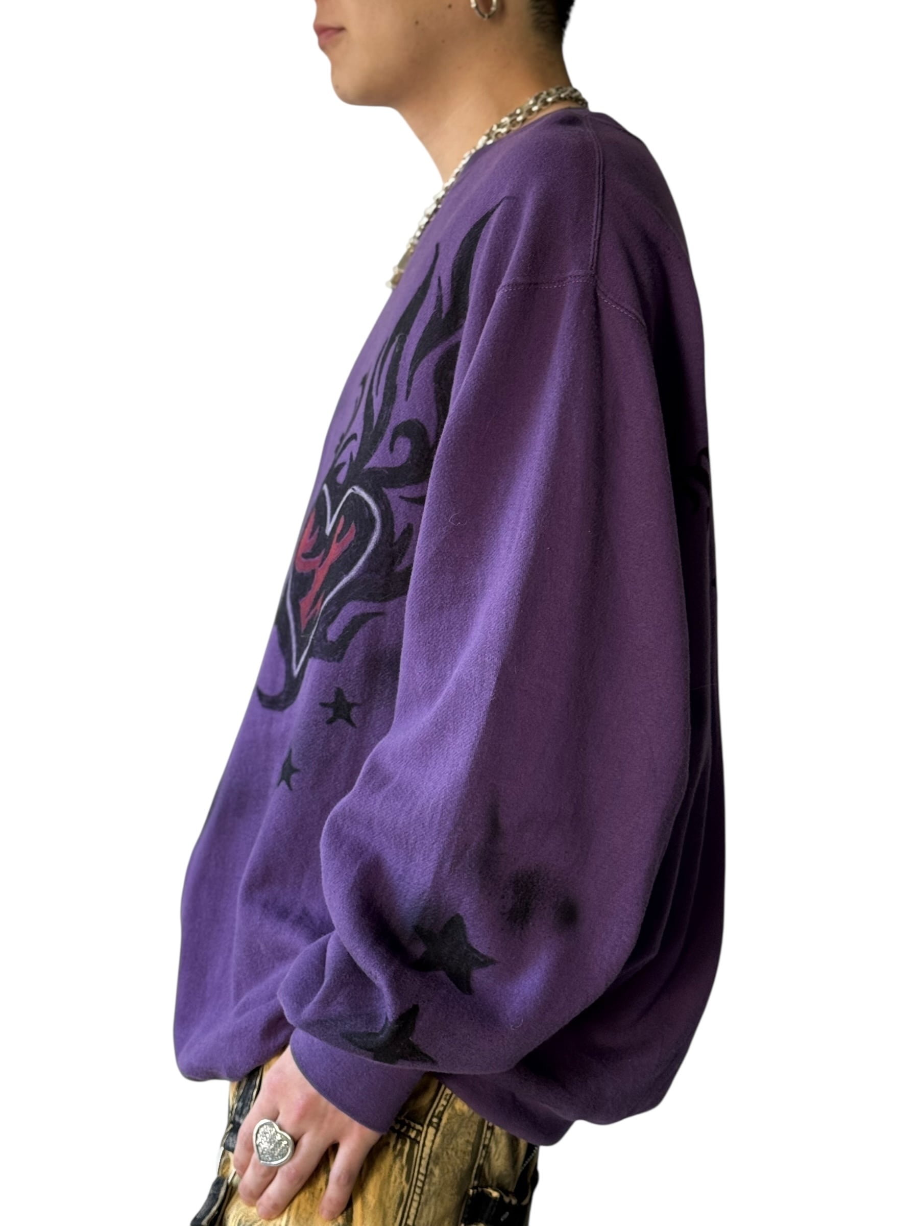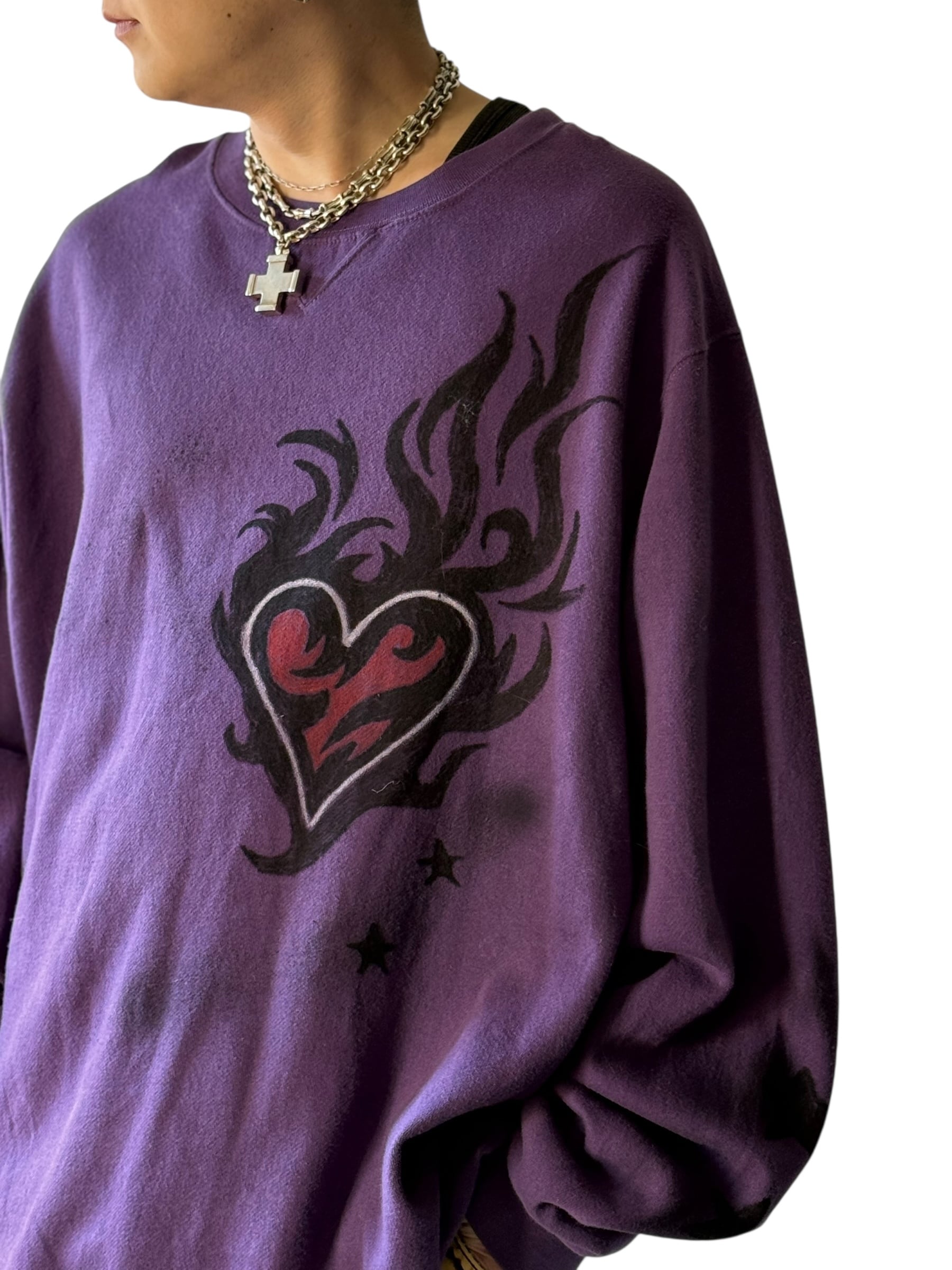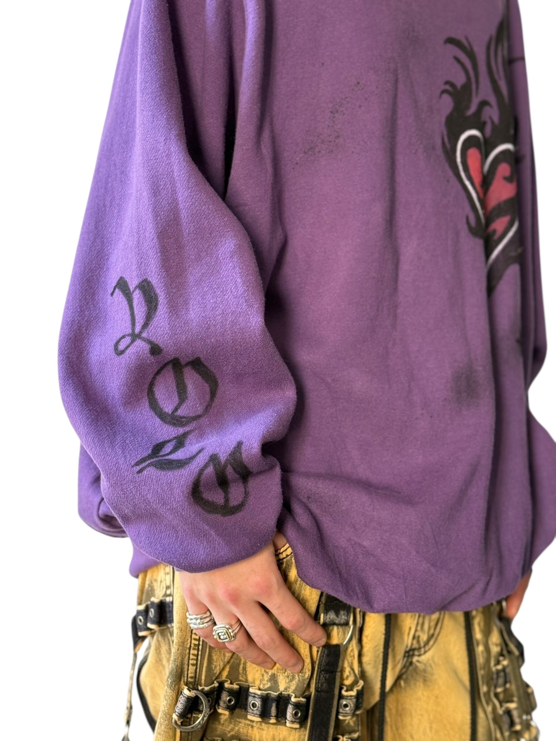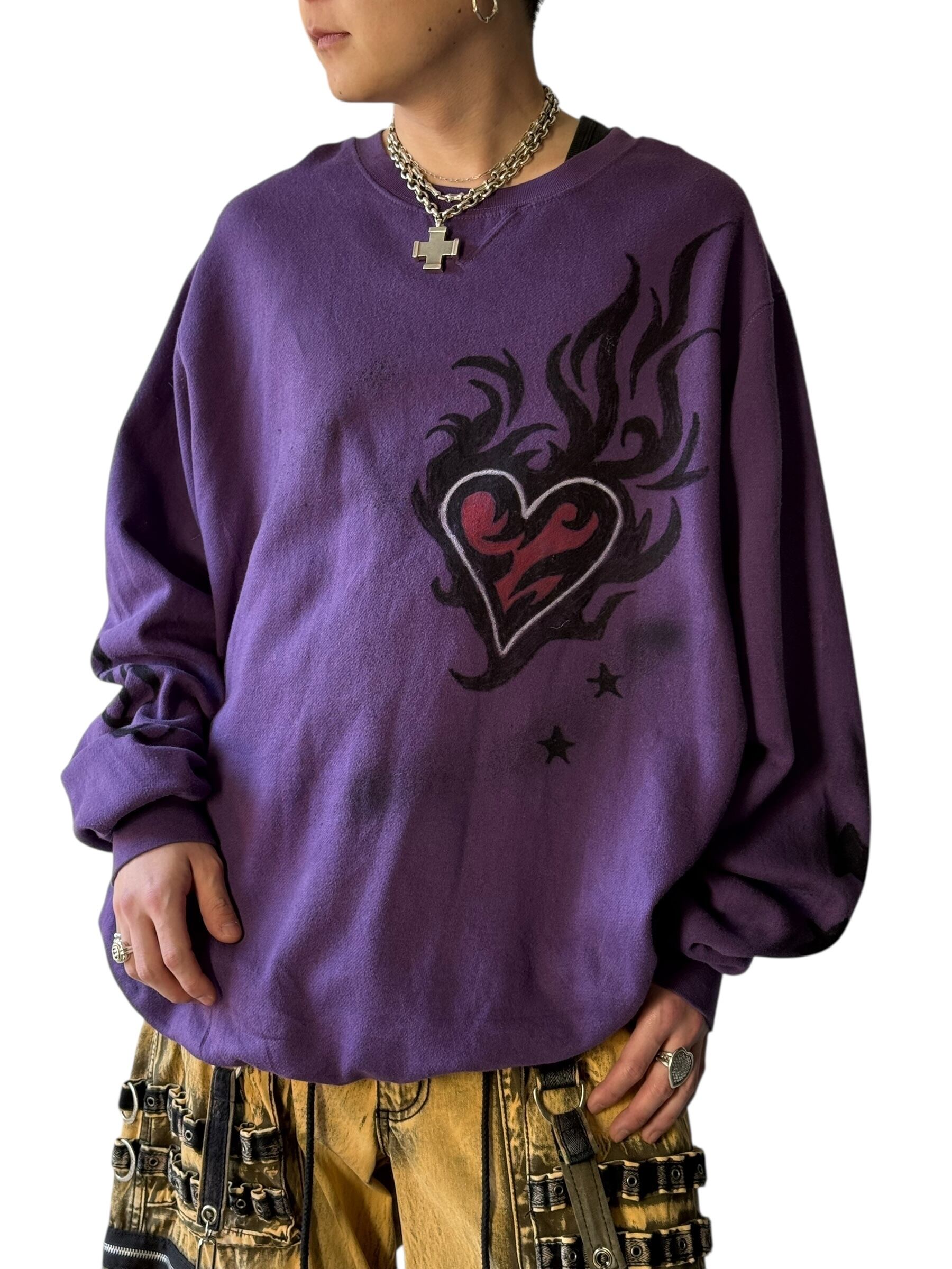 【Remade used】"kingsize" Old English Heart Tribal Paint Sweatshirt