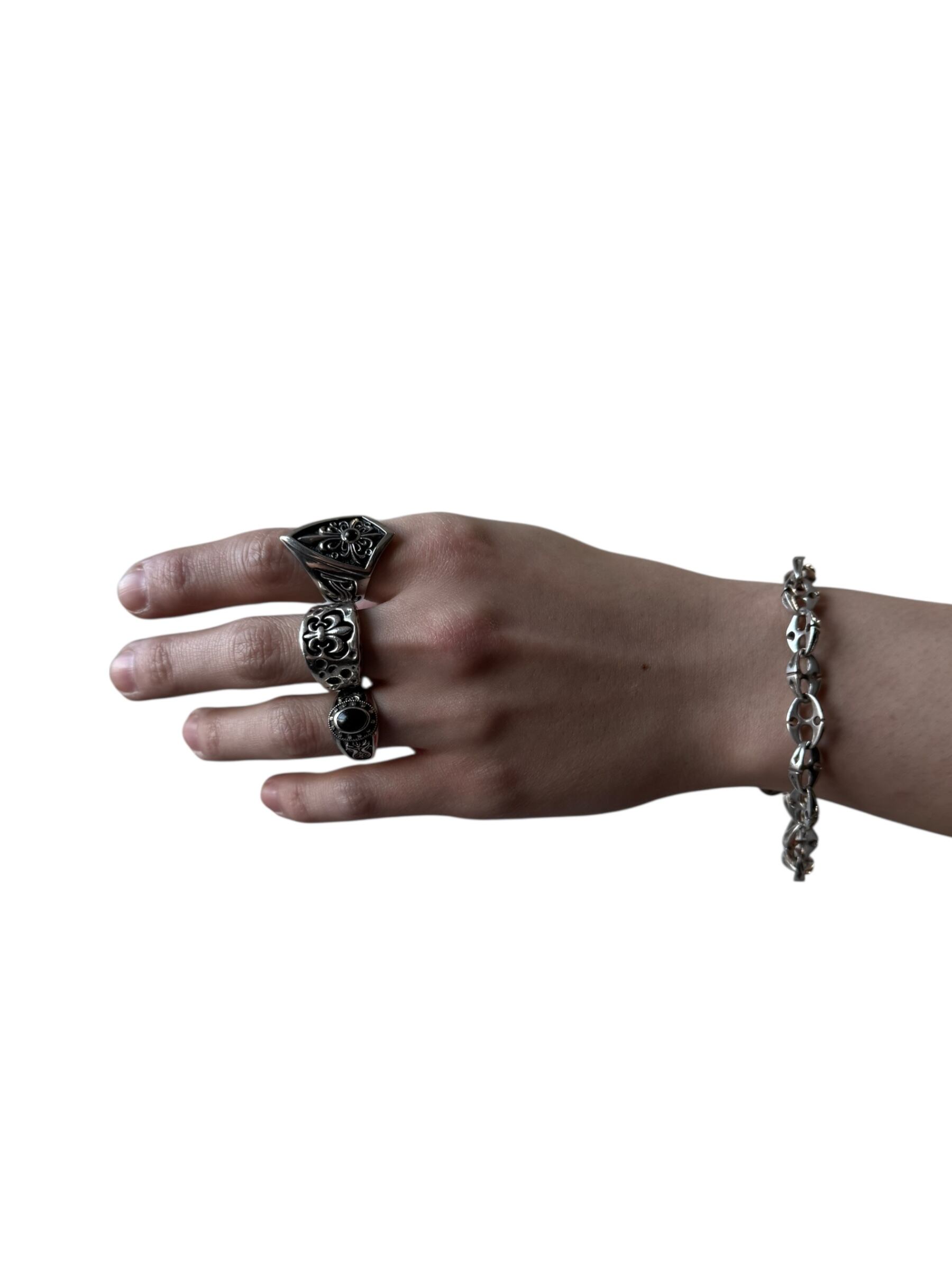 ♾vintage silver jewellery♾ black stone college ring size 15号