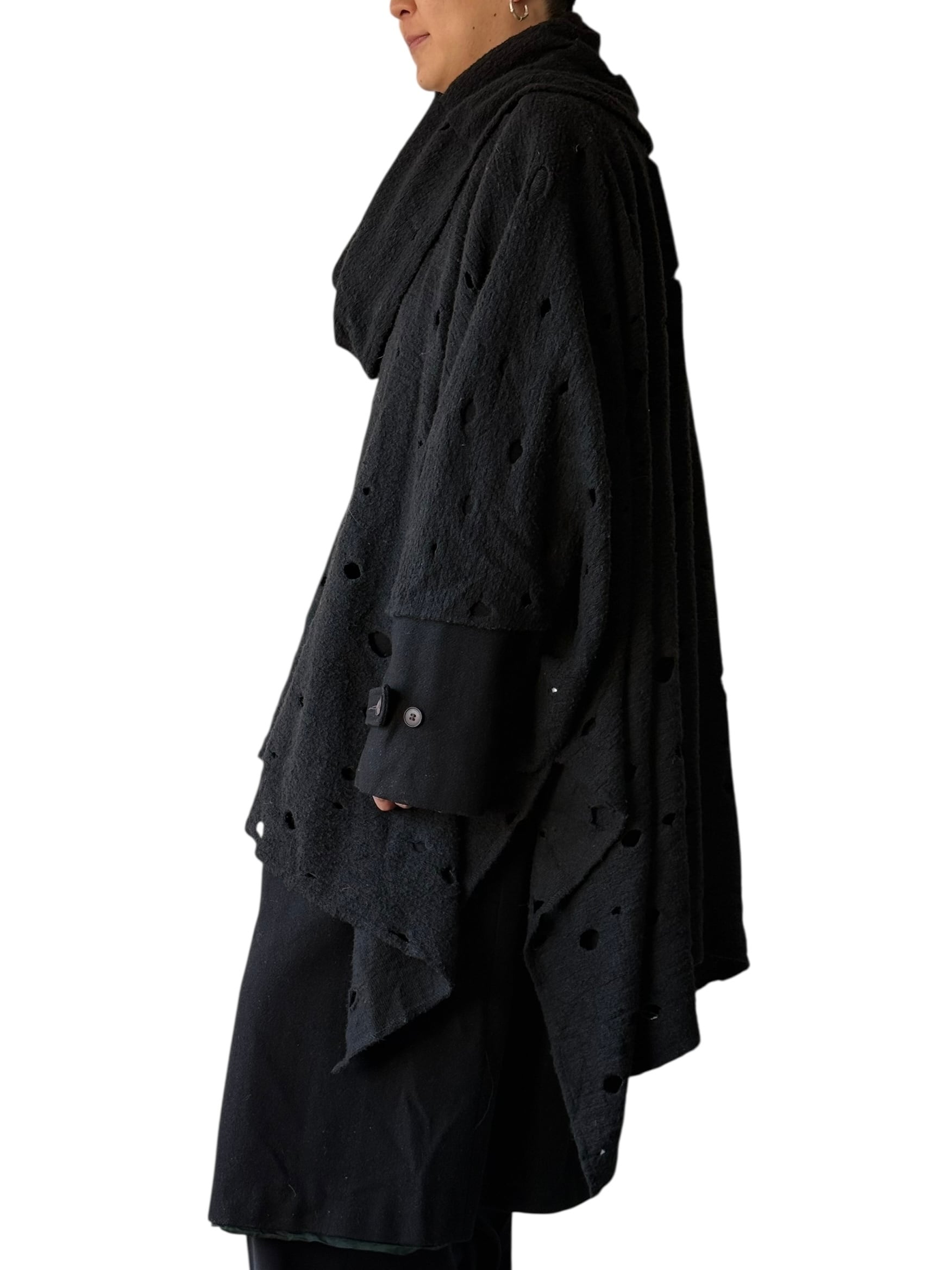 cutwork design wool wide poncho