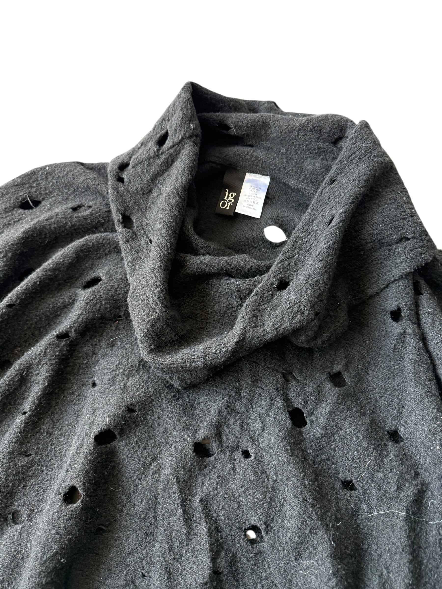 【igor】"MADE IN CROATIA" cutwork design wool wide poncho