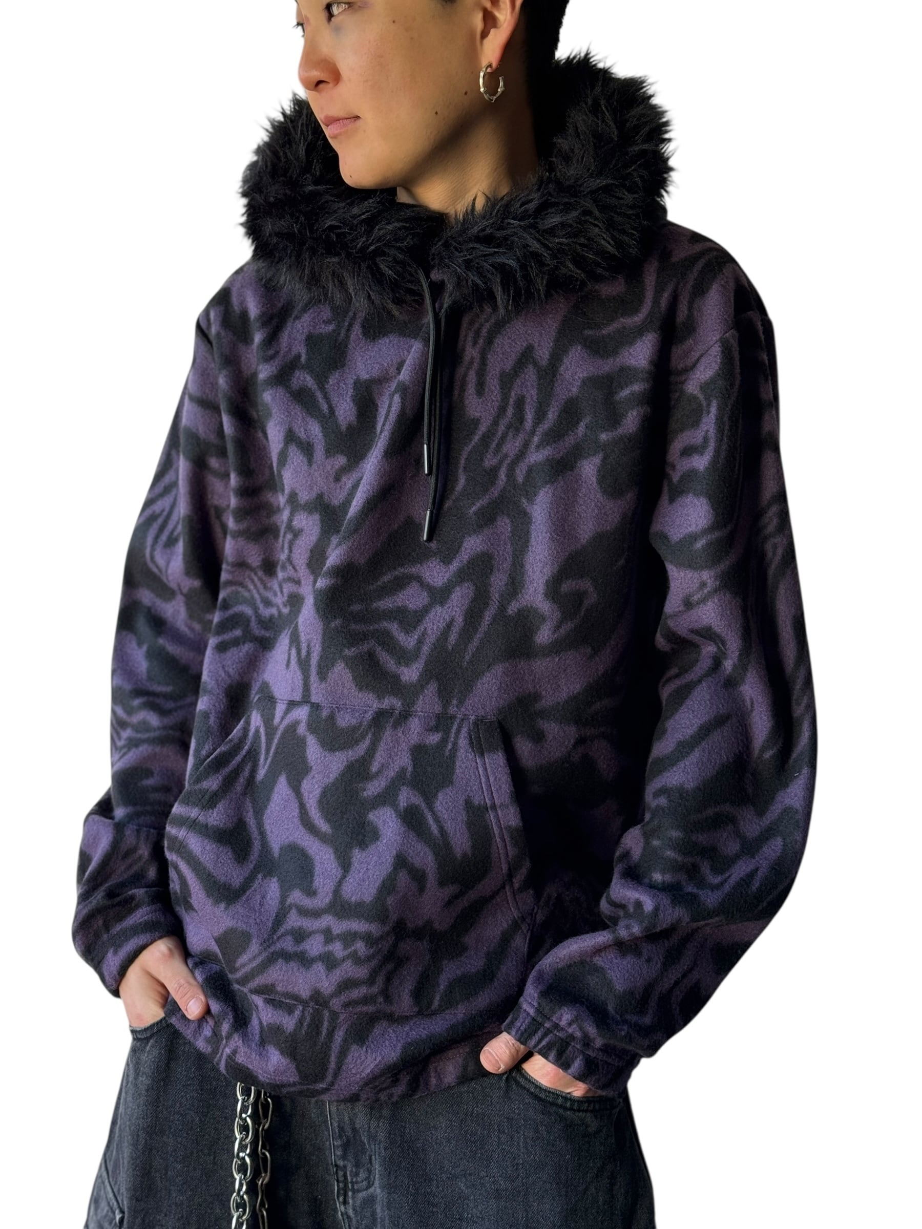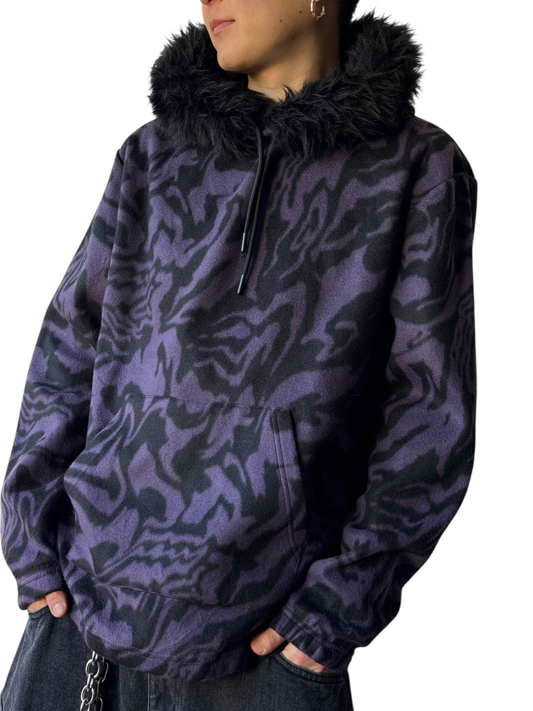 ♾LAZER♾ dead stock Fur hood marble pattern hoodie size M