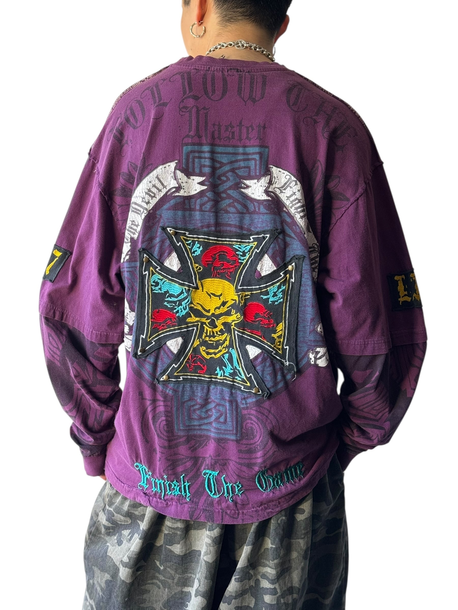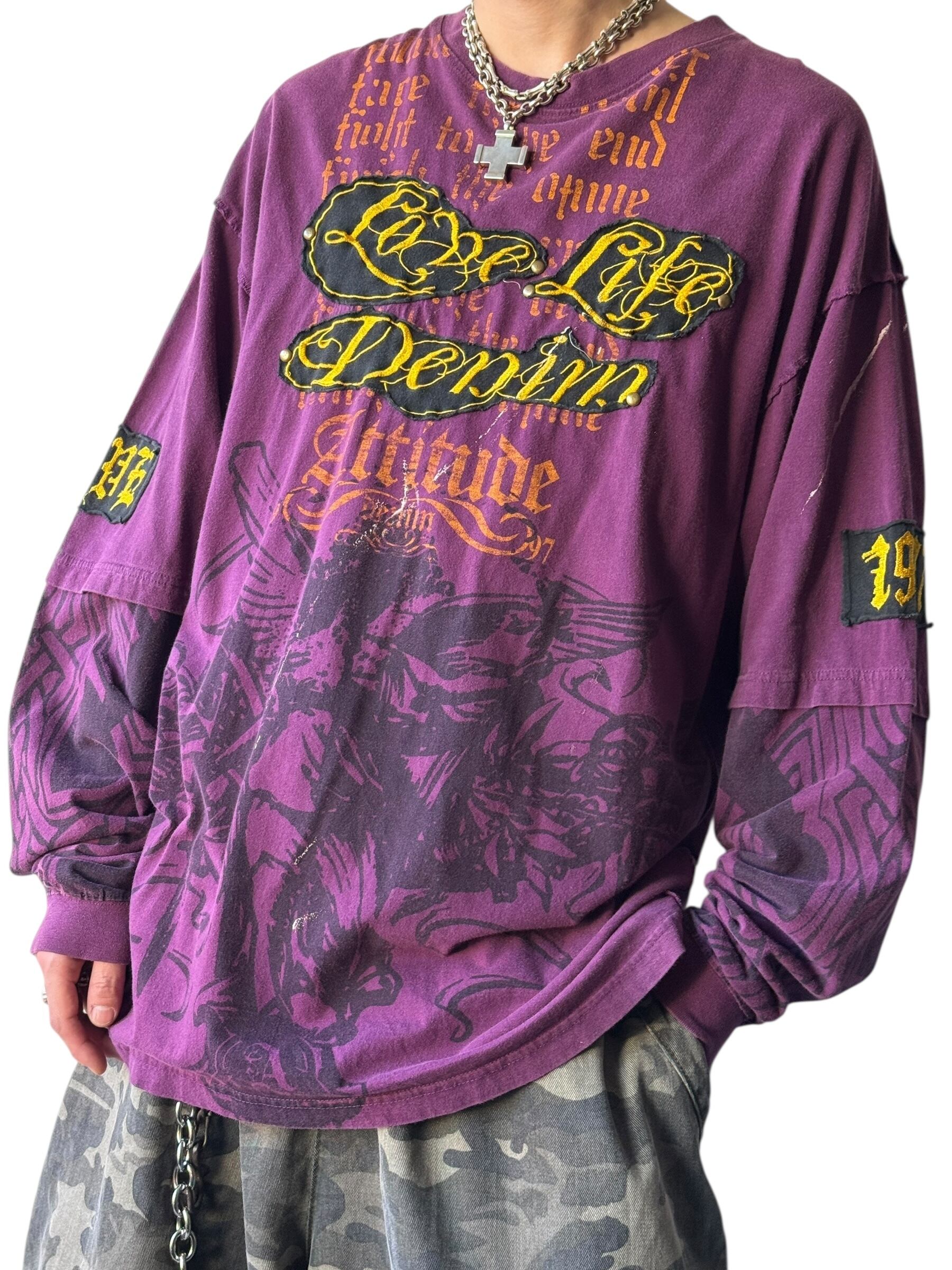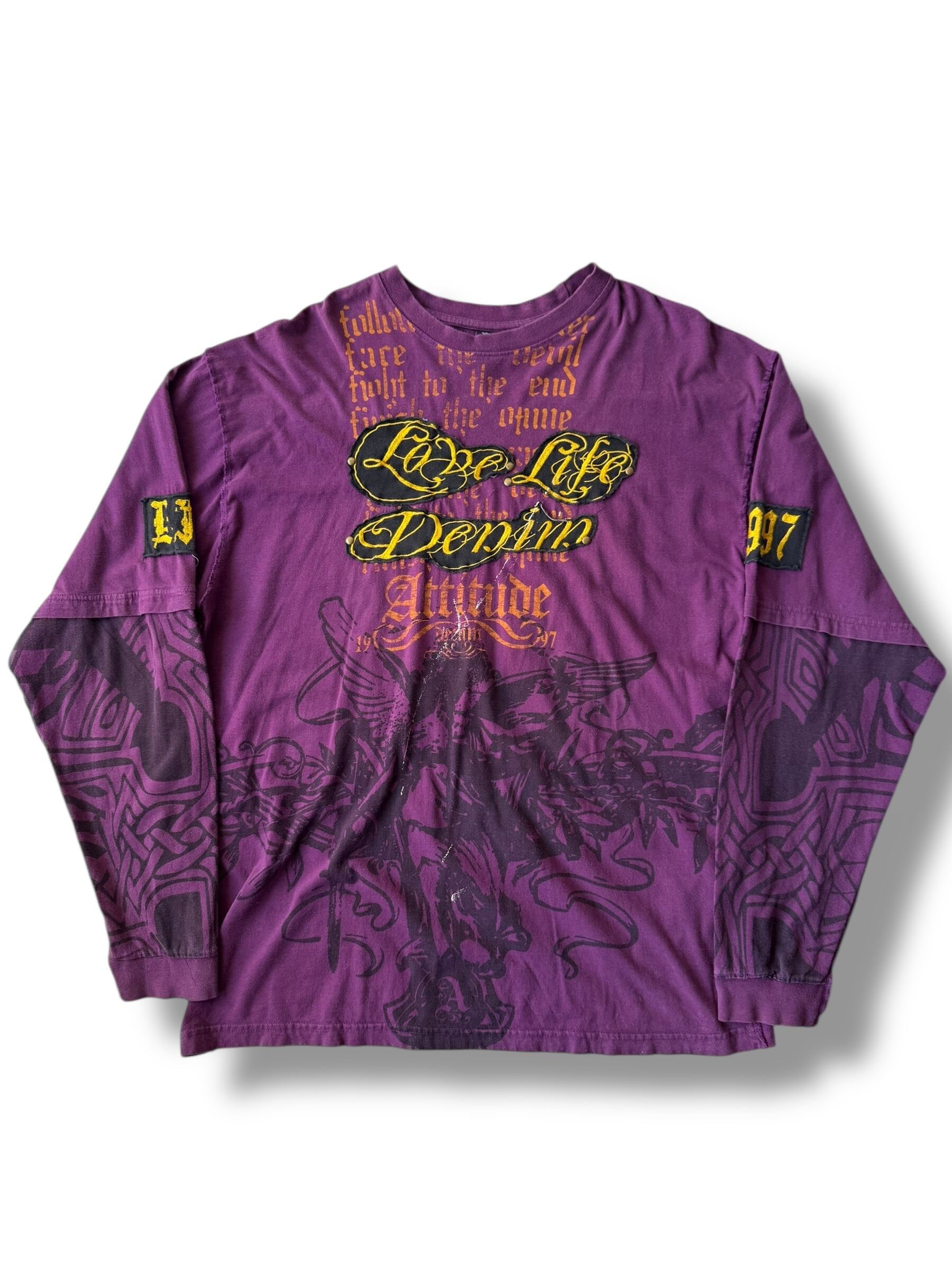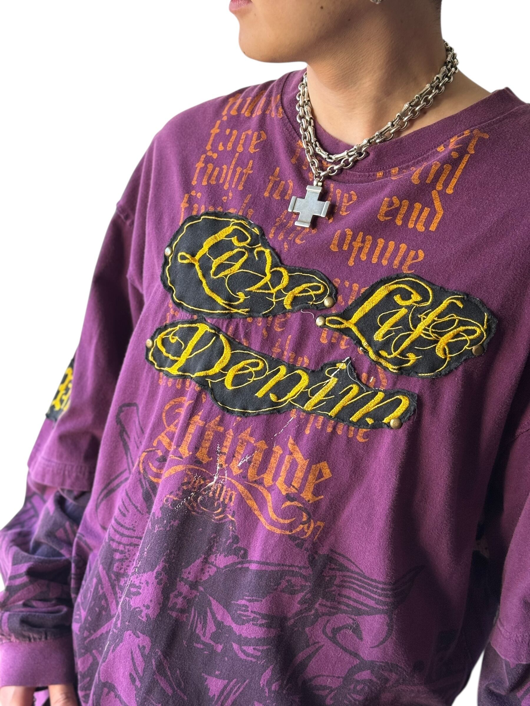 ♾ ATTITUDE ♾ Patch studs y2k design long sleeve T-shirt size XL