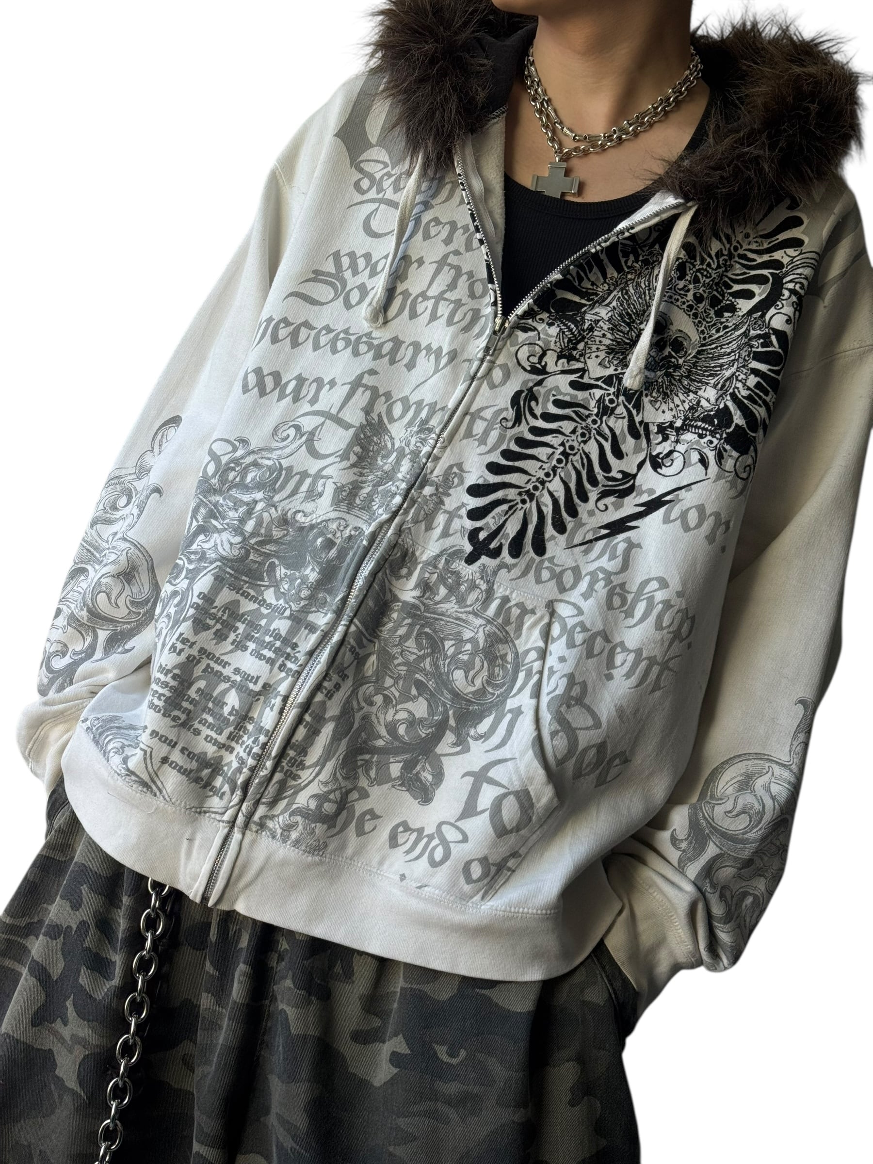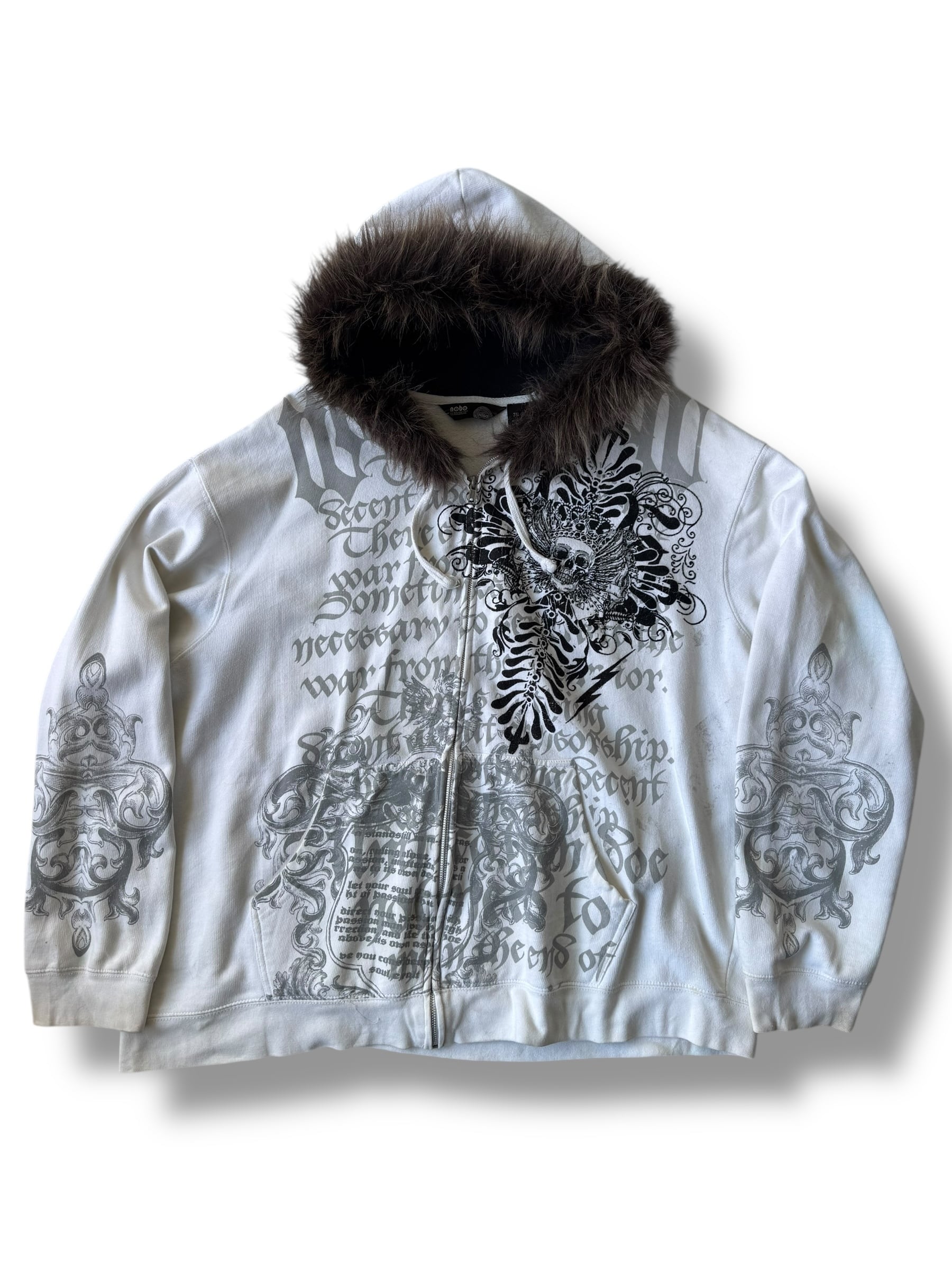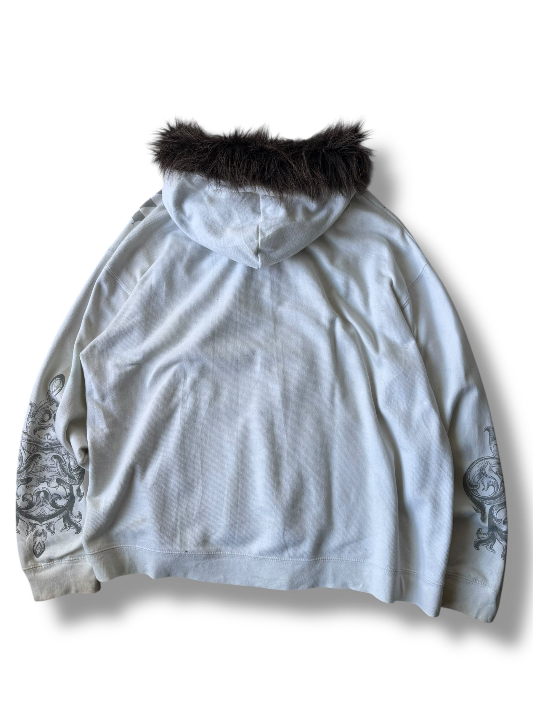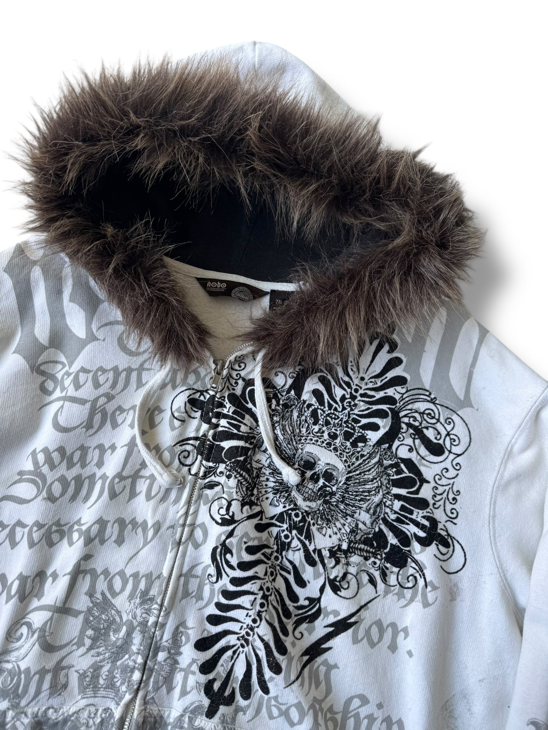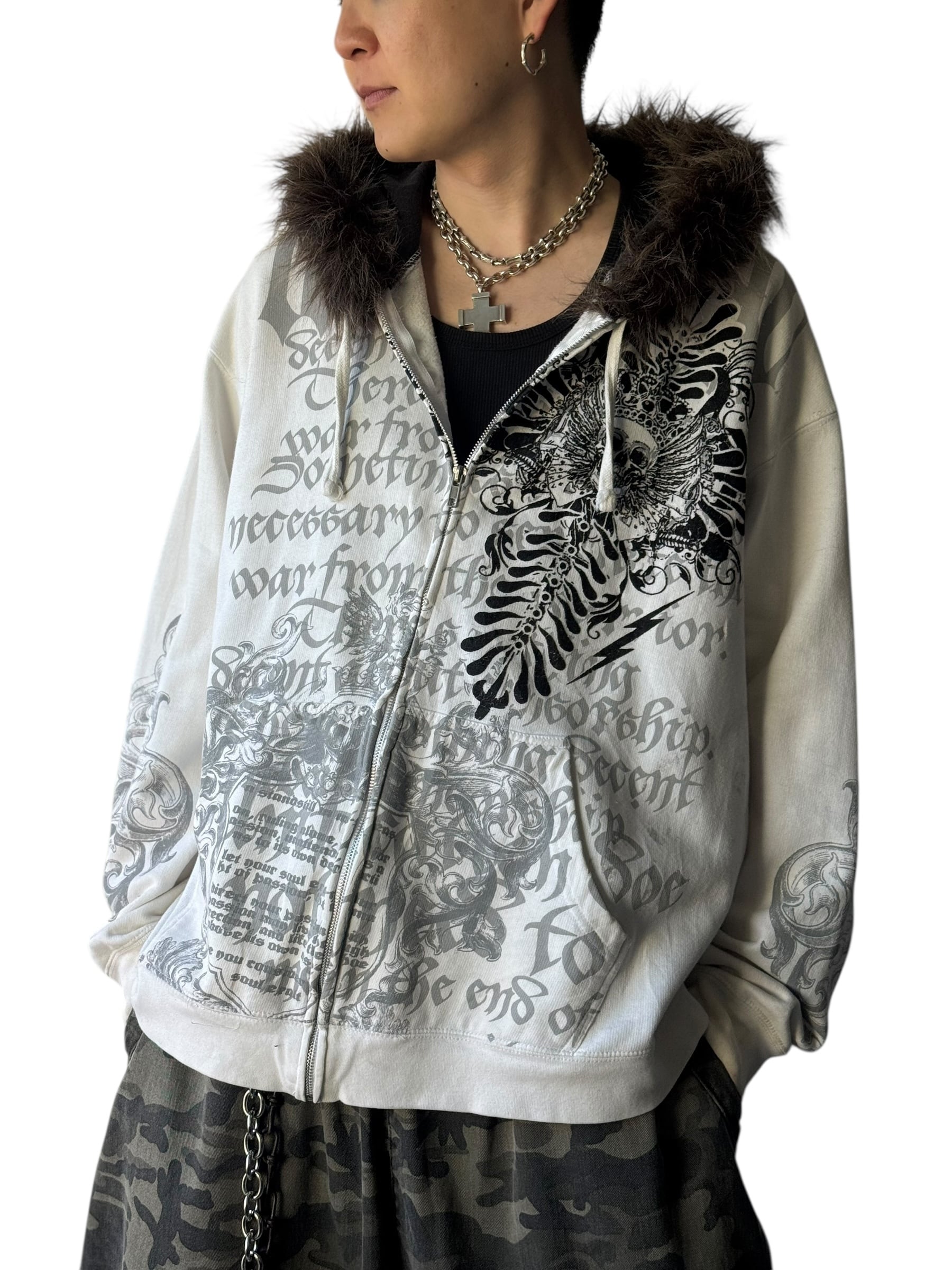 ♾No Boundaries ♾ Skull motif y2k design fur hoodie size 2XL