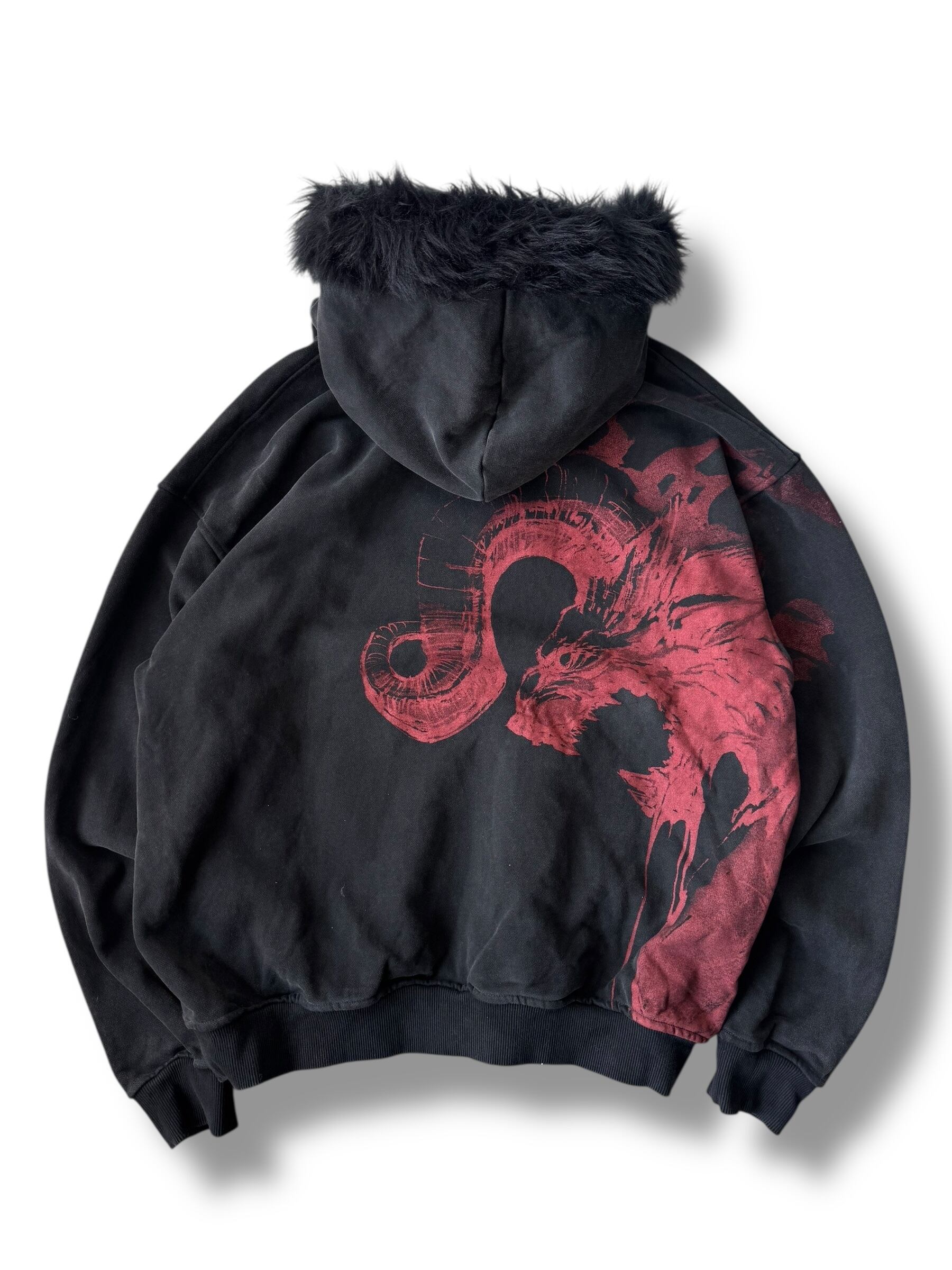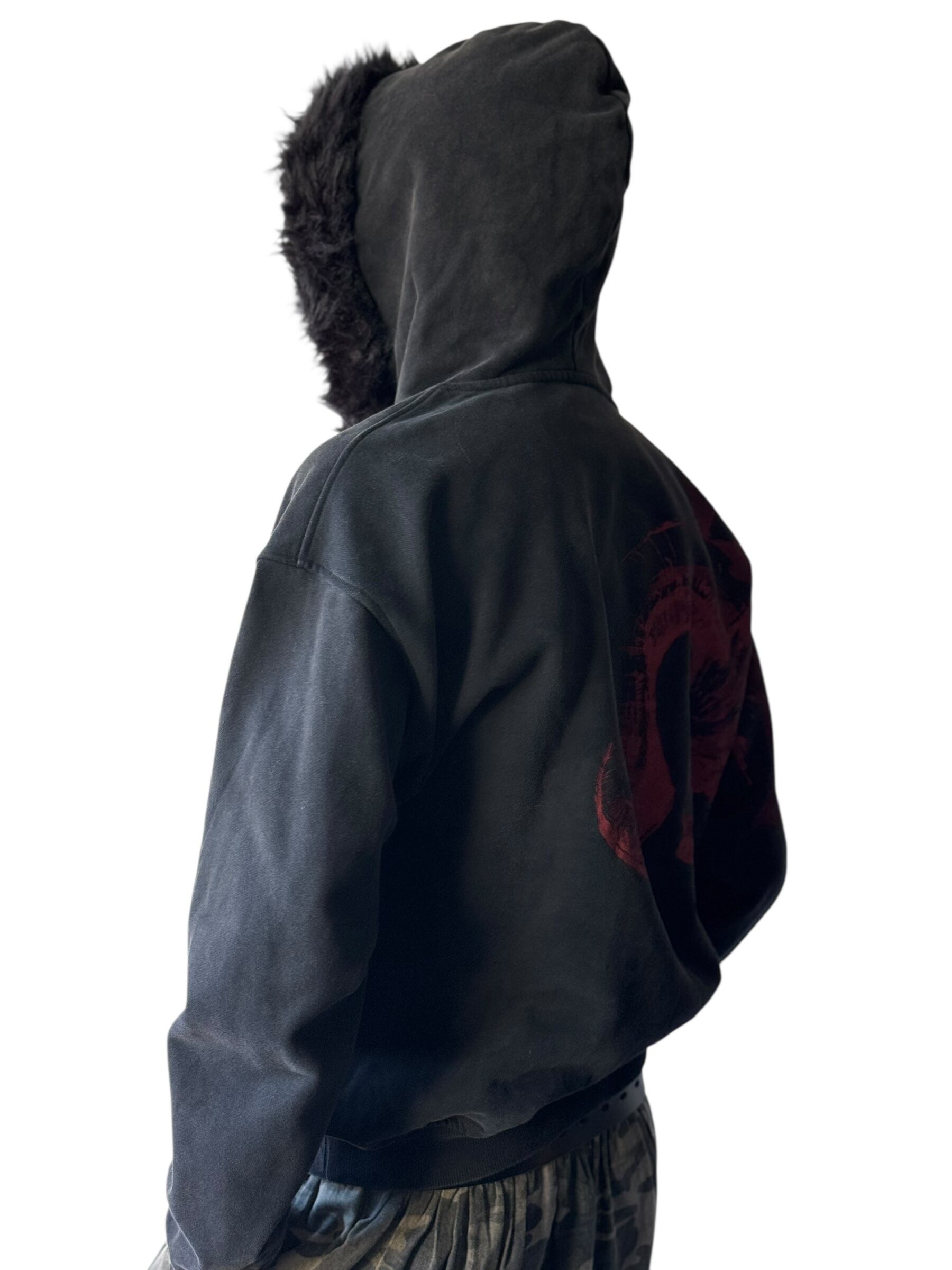 ♾design used♾ fire dragon design fur hoodie size M