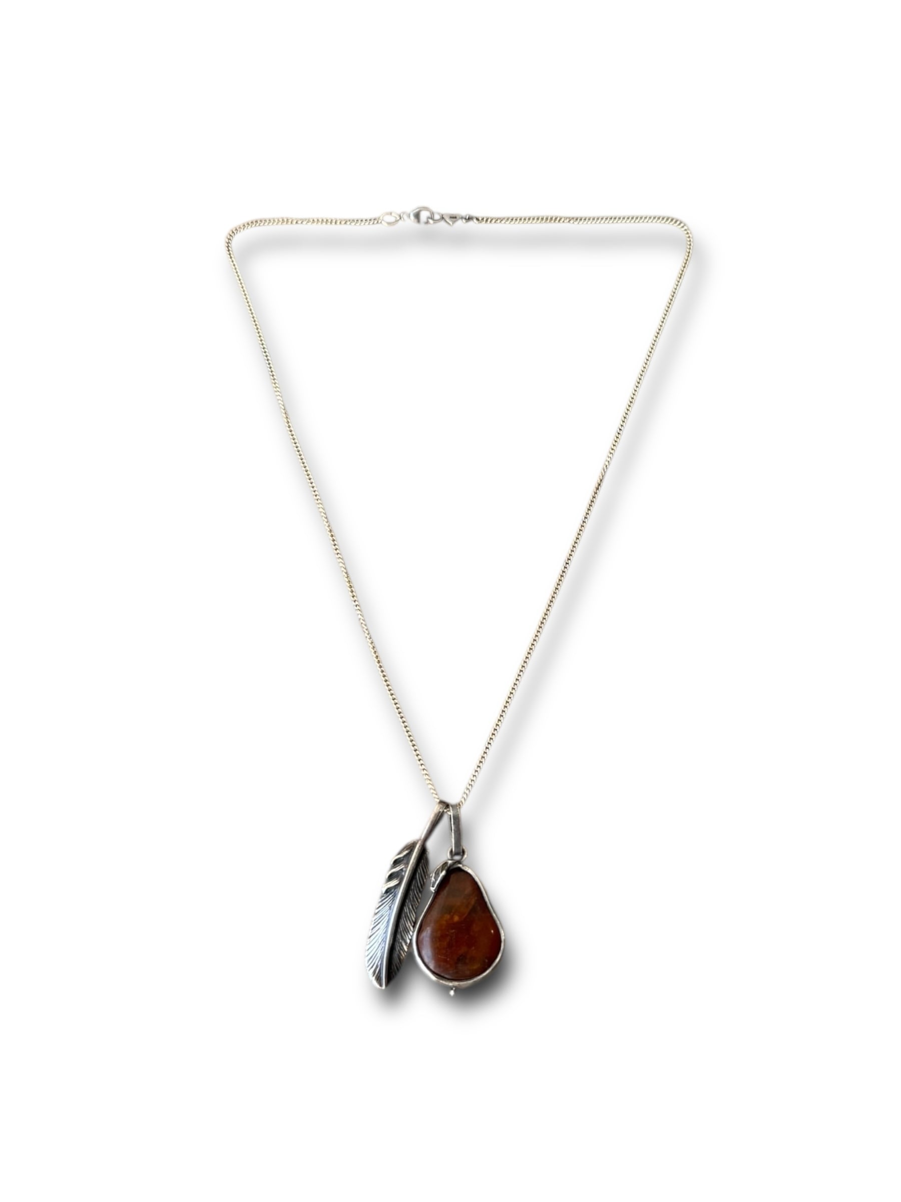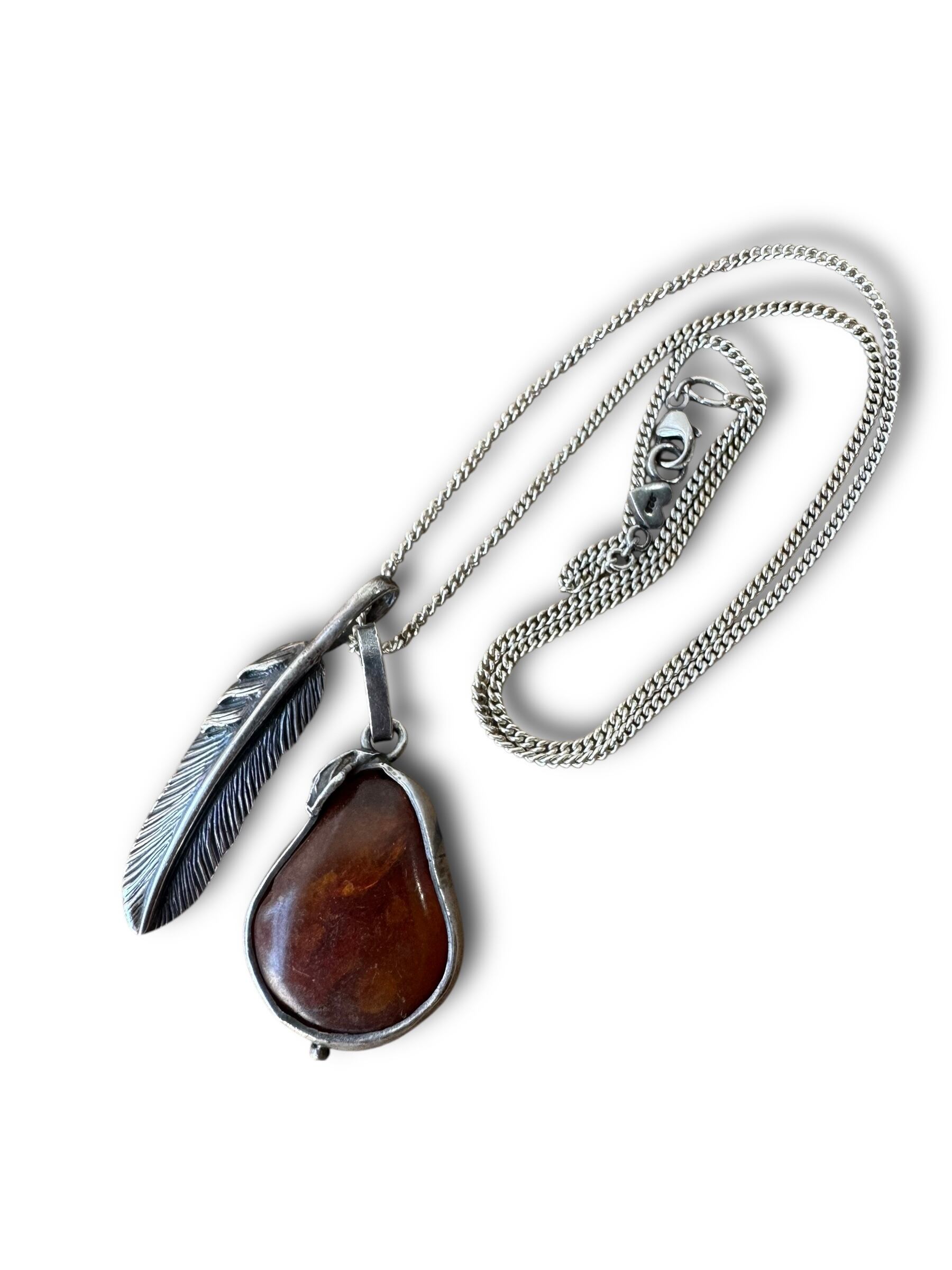 ♾vtg sterling collection♾ stone × feather motif w top design necklace sv925