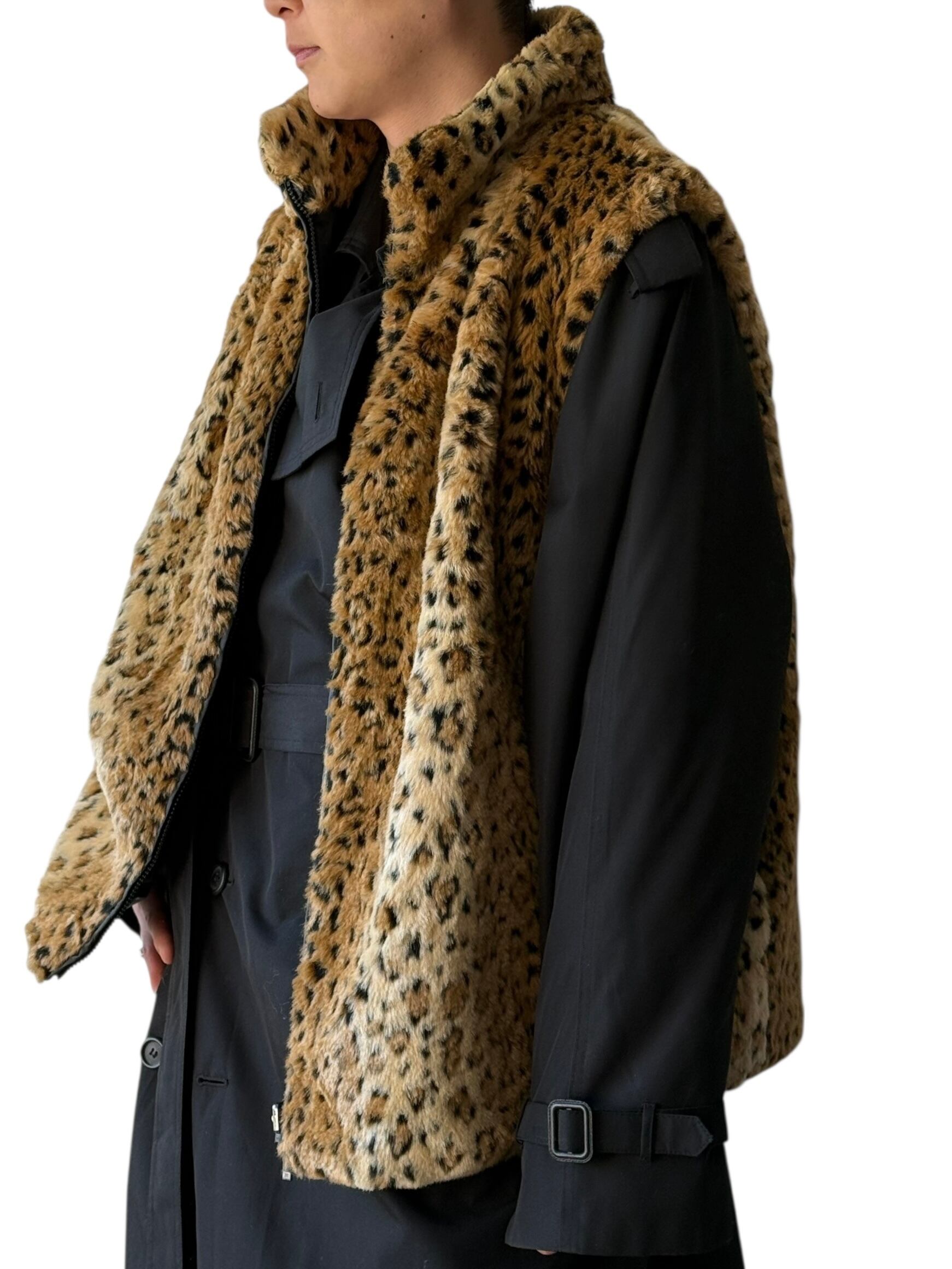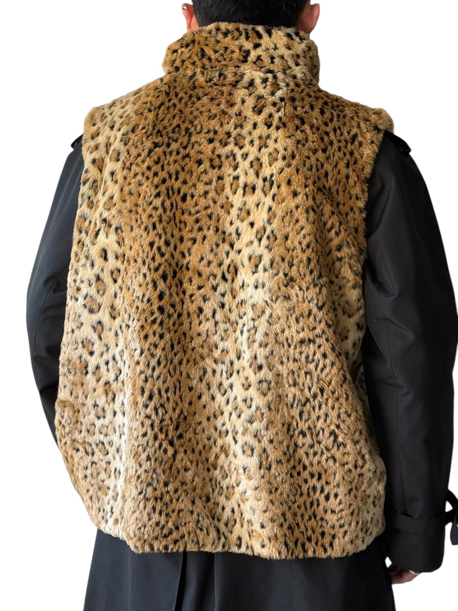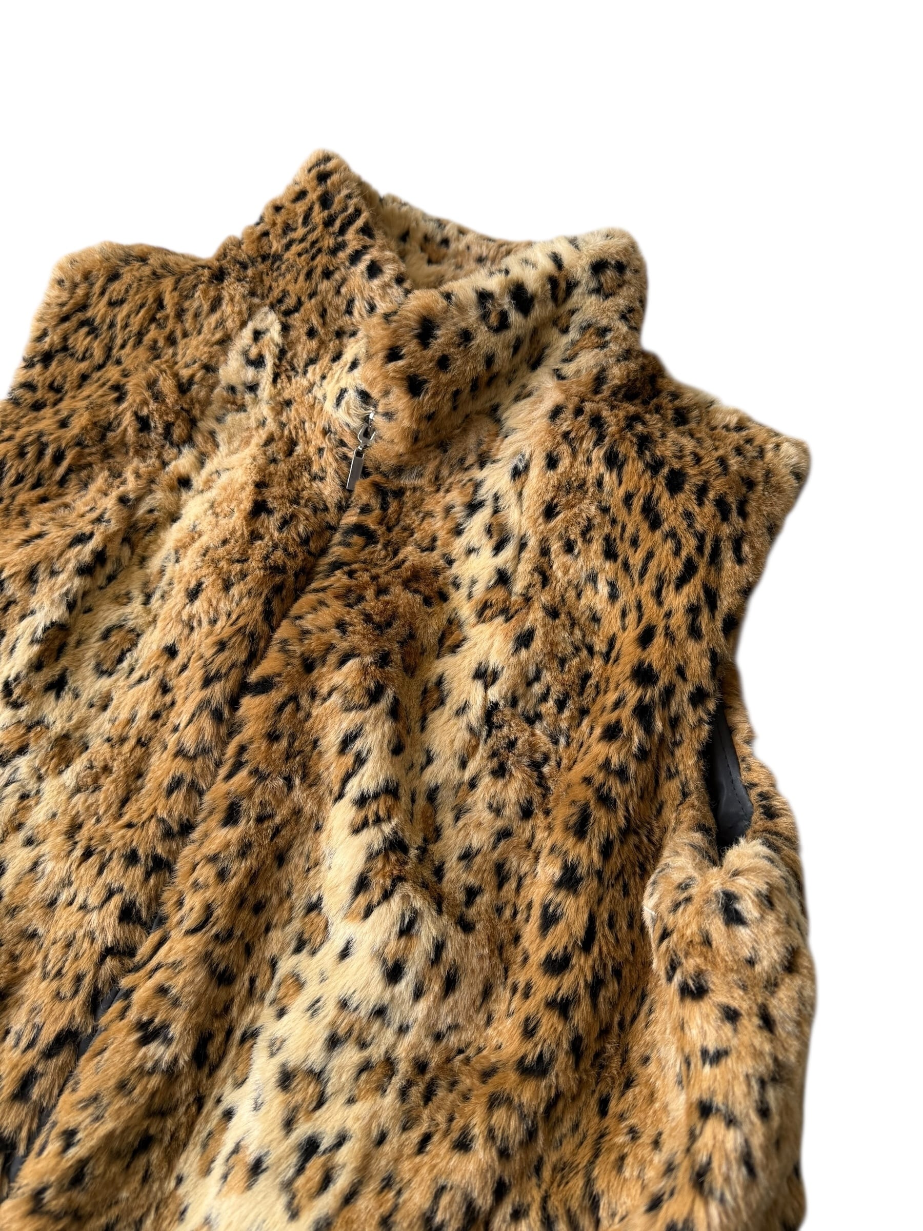 ファッション要素完璧なお洒落レオパードパターンが目を引くフェイクファーベスト‼️