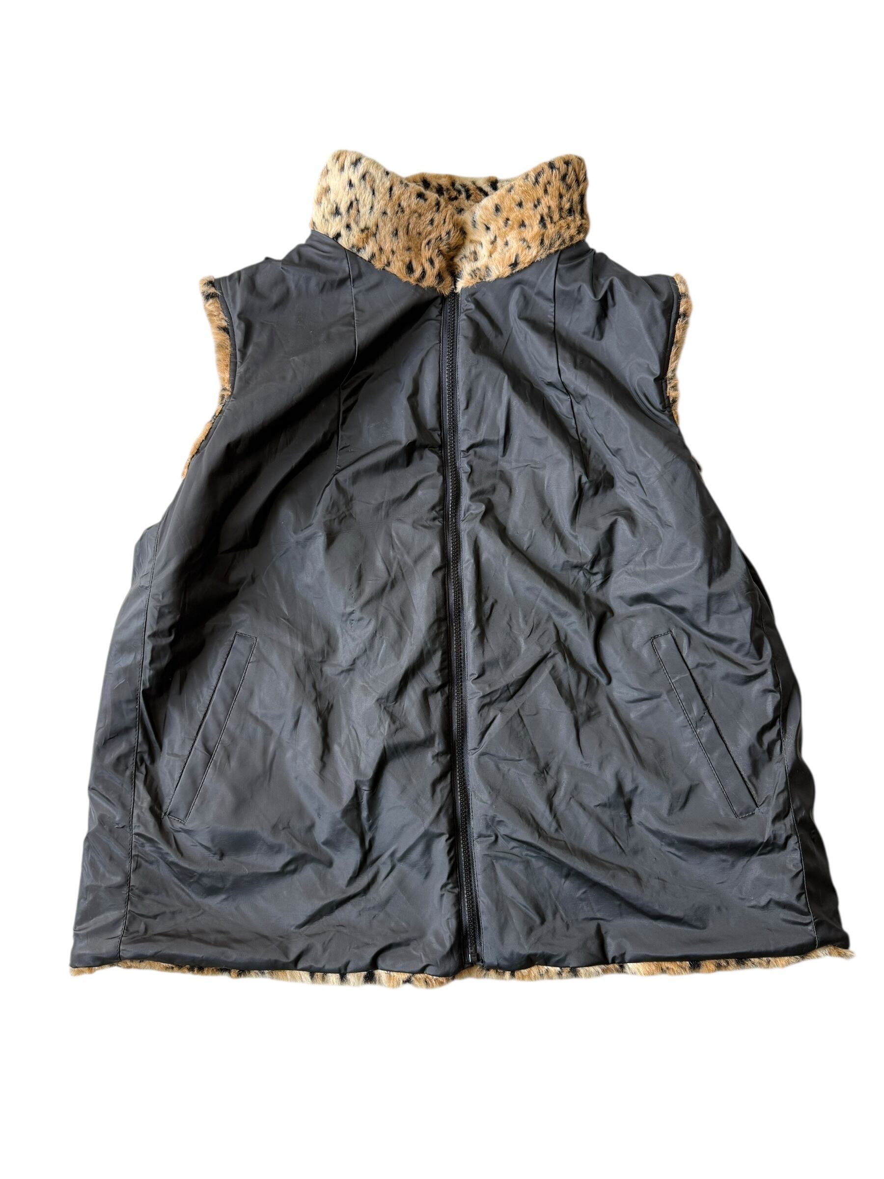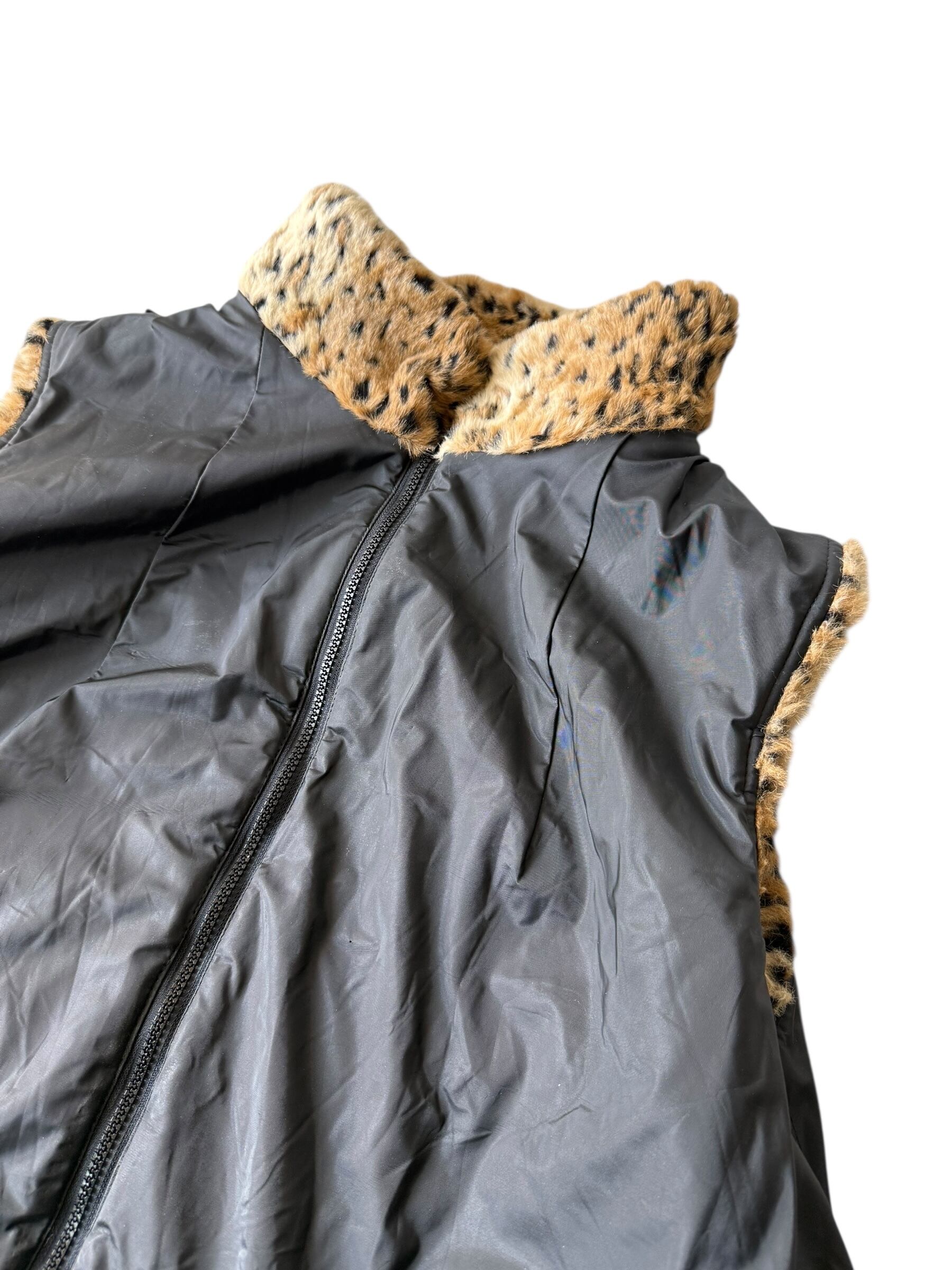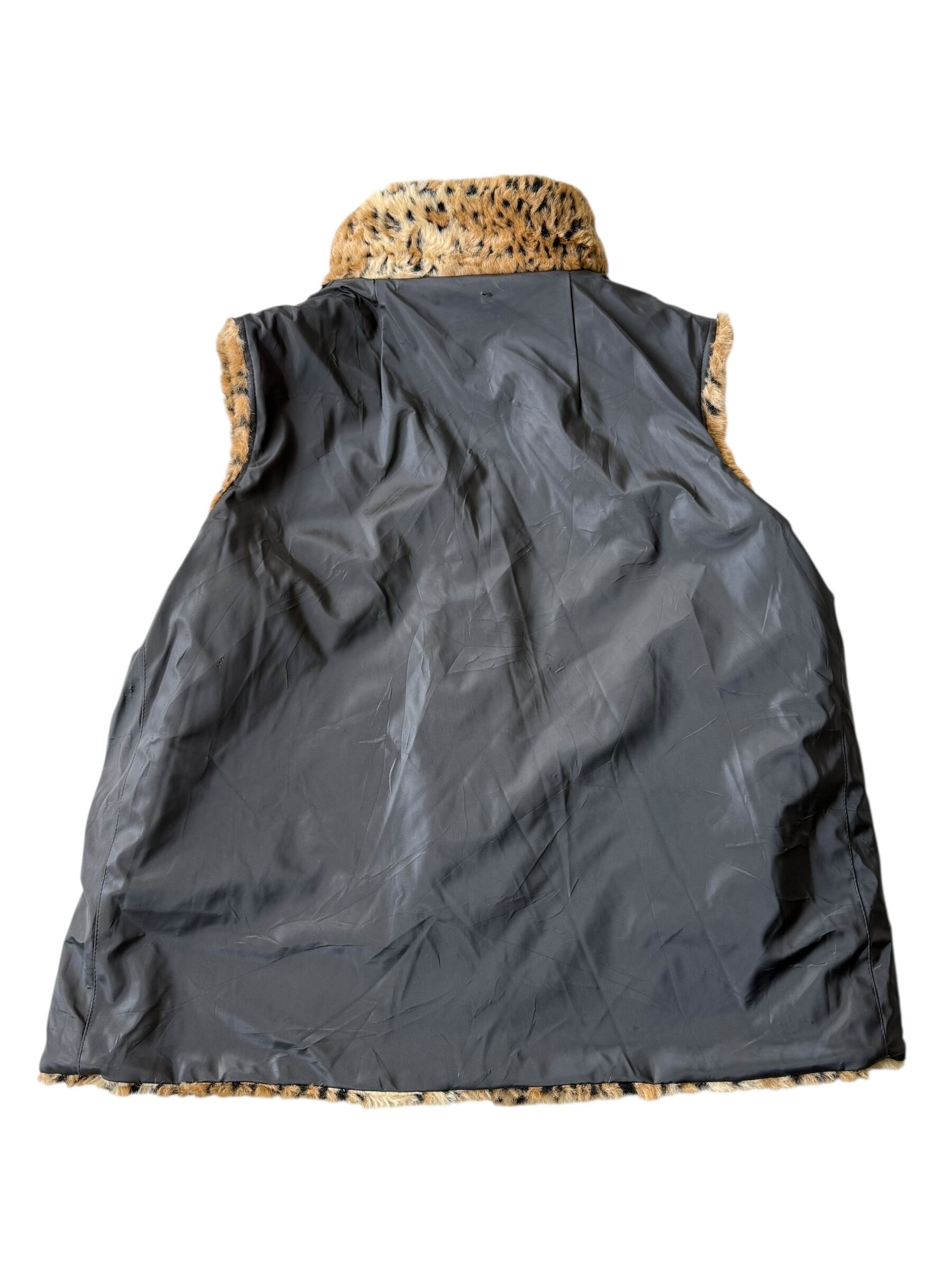 ファッション要素完璧なお洒落レオパードパターンが目を引くフェイクファーベスト‼️